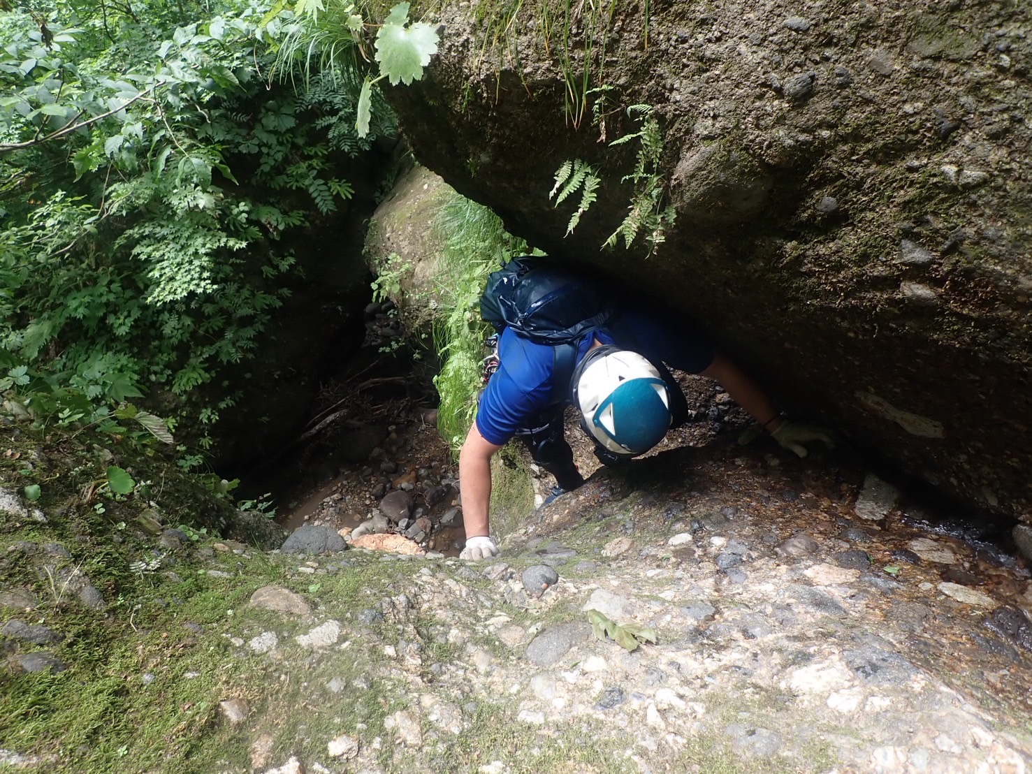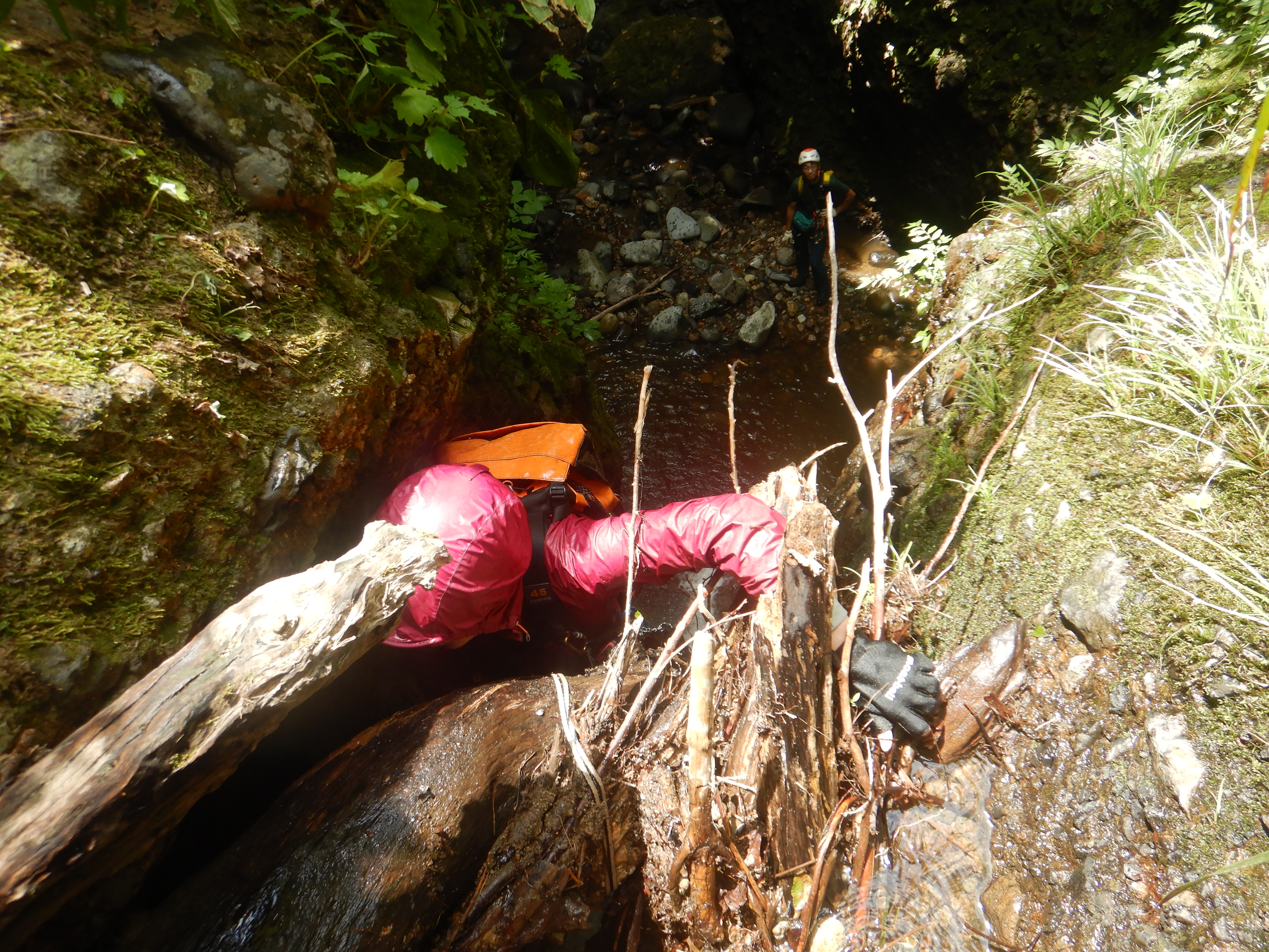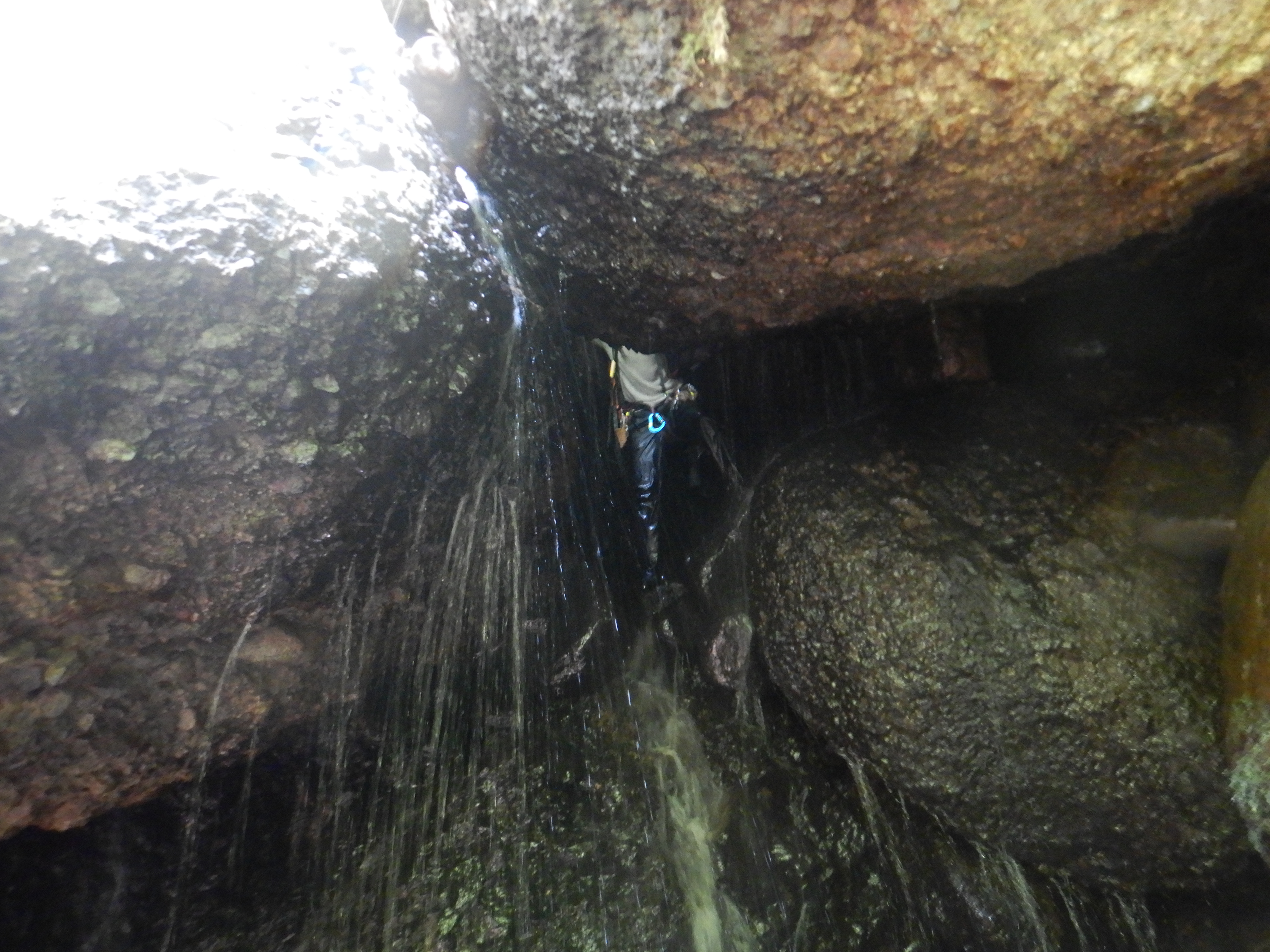窮屈な登りで穴から脱出。沢全体を通して穴潜り系の登りが多かった気がする。