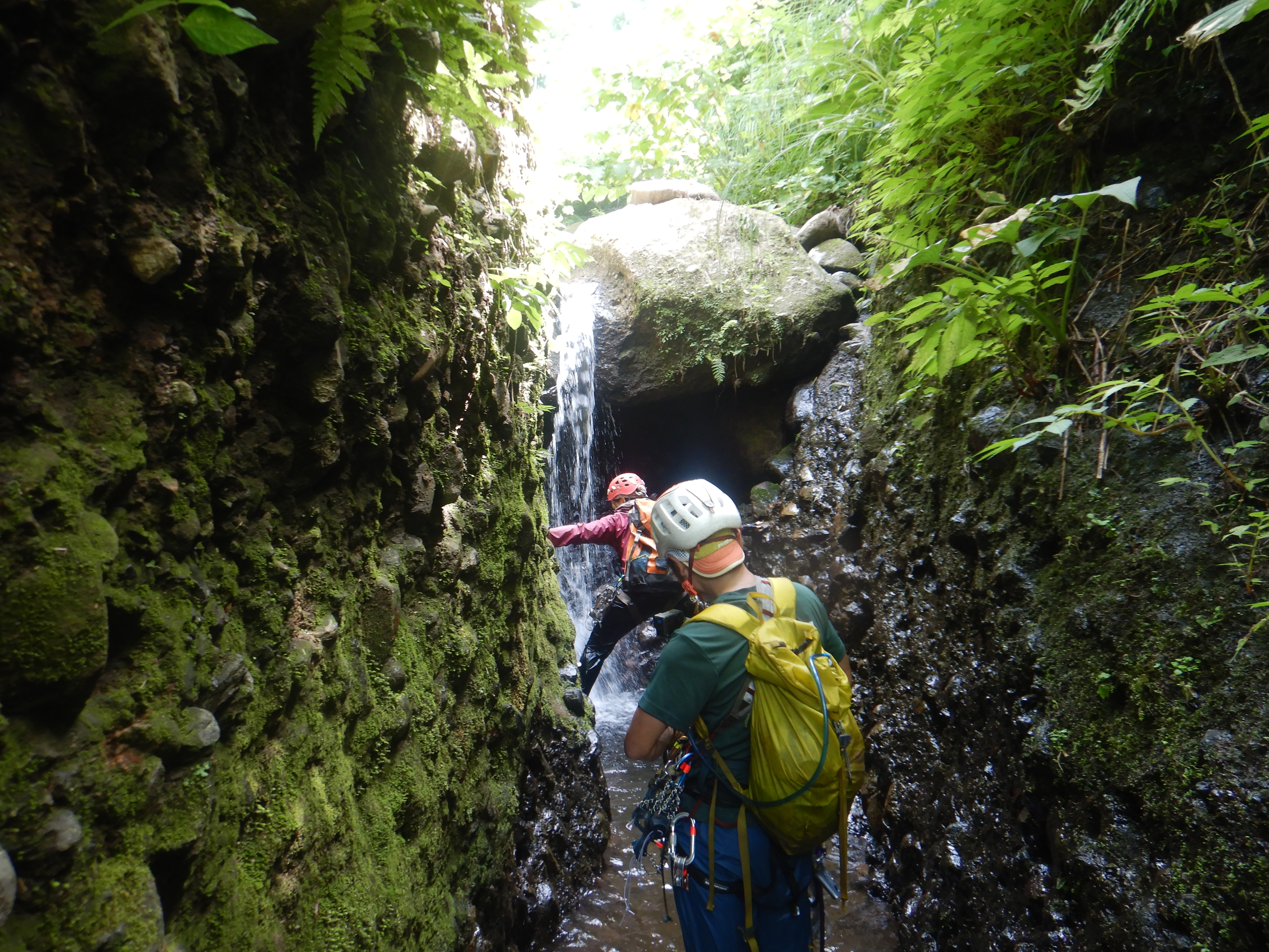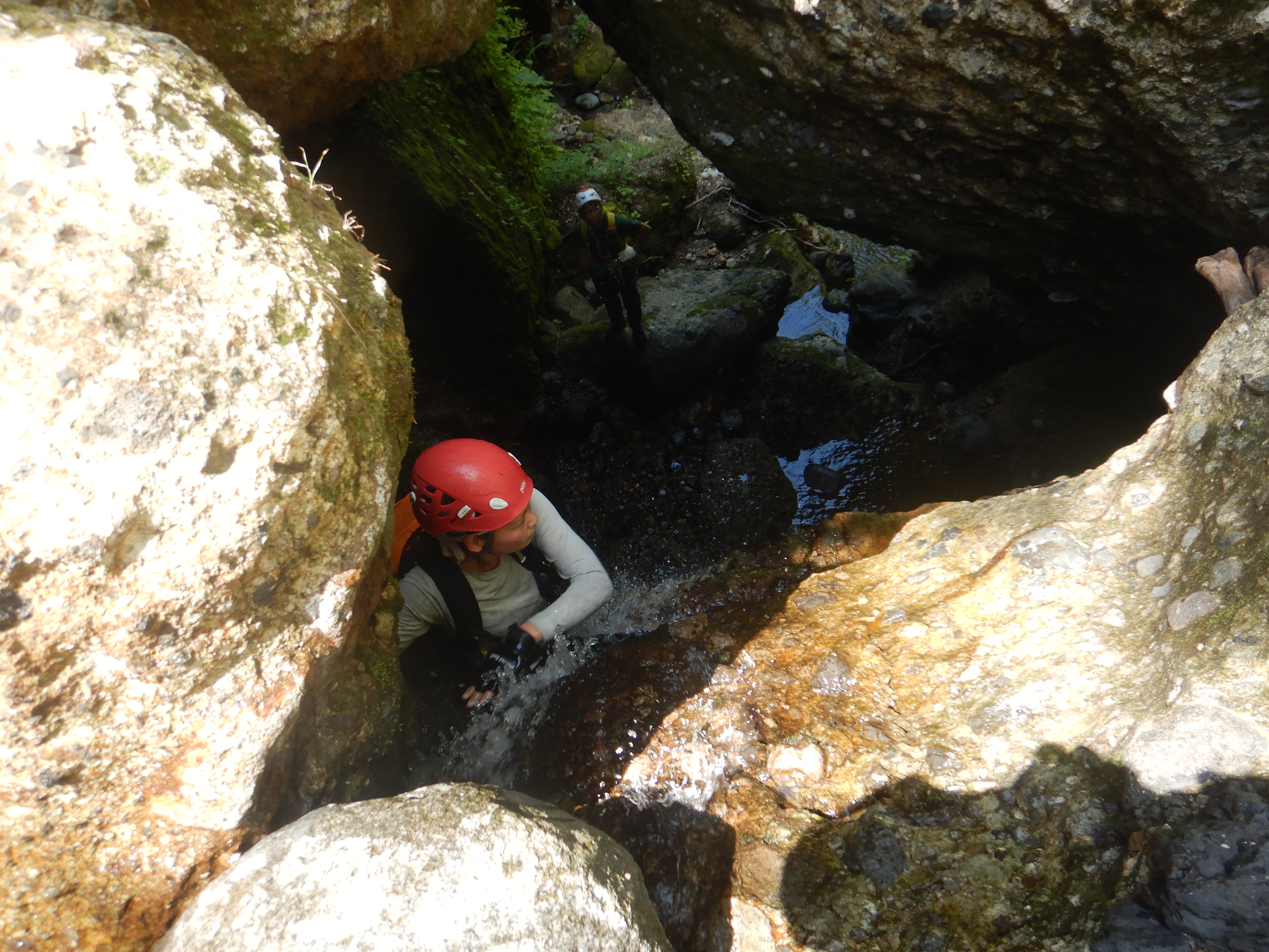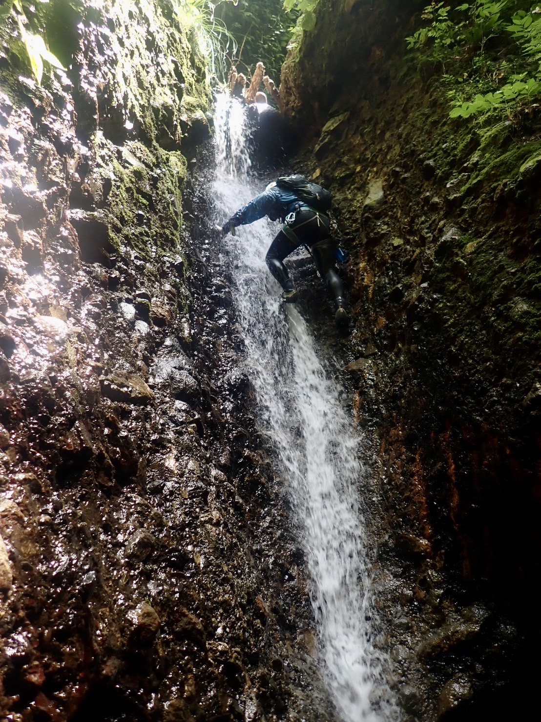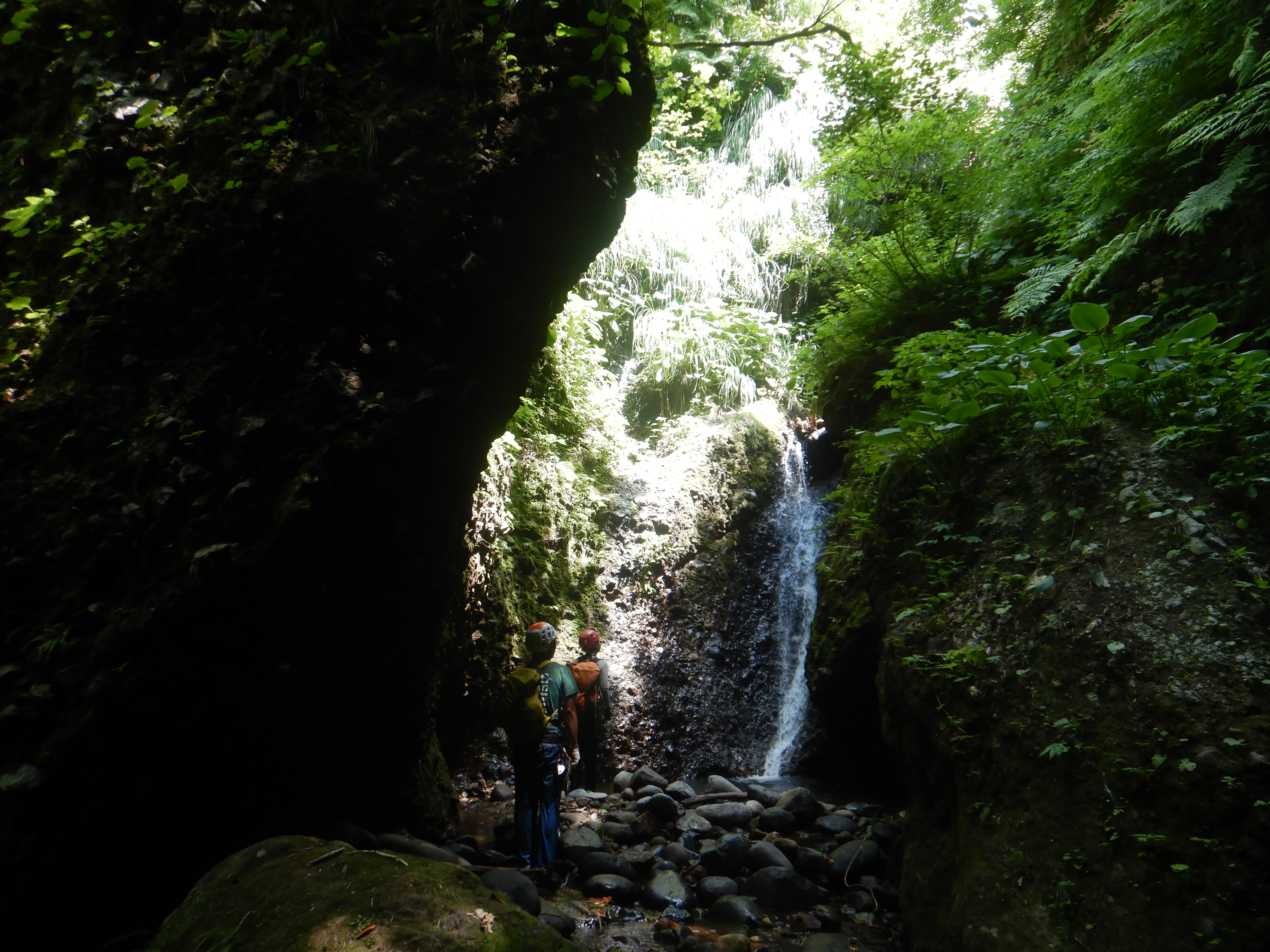 歪なゴルジュに穴潜り系の滝が続き、アドベンチャー要素満載。短いながらもかなり楽しい。朝活や雨の日にどうぞ。