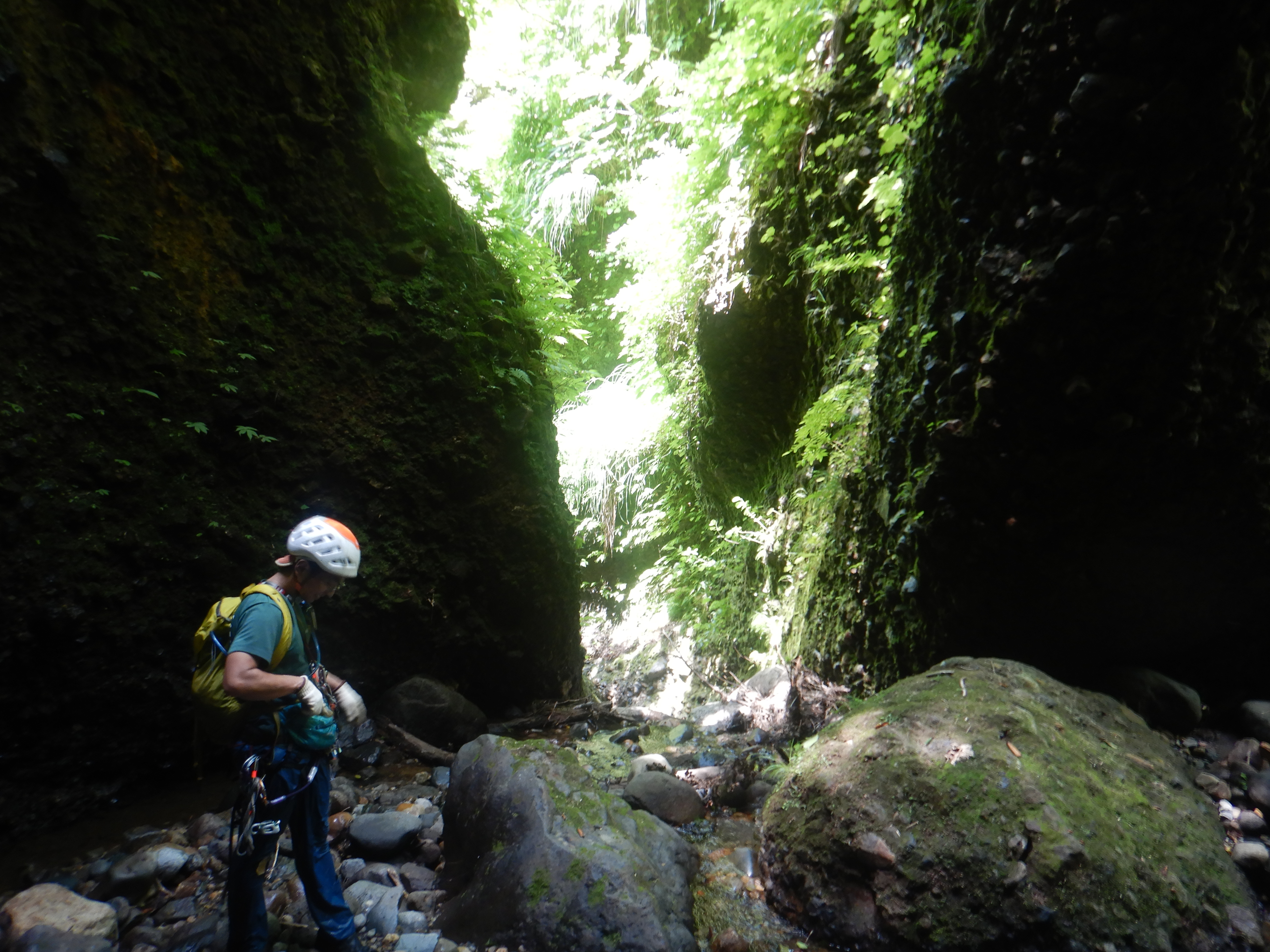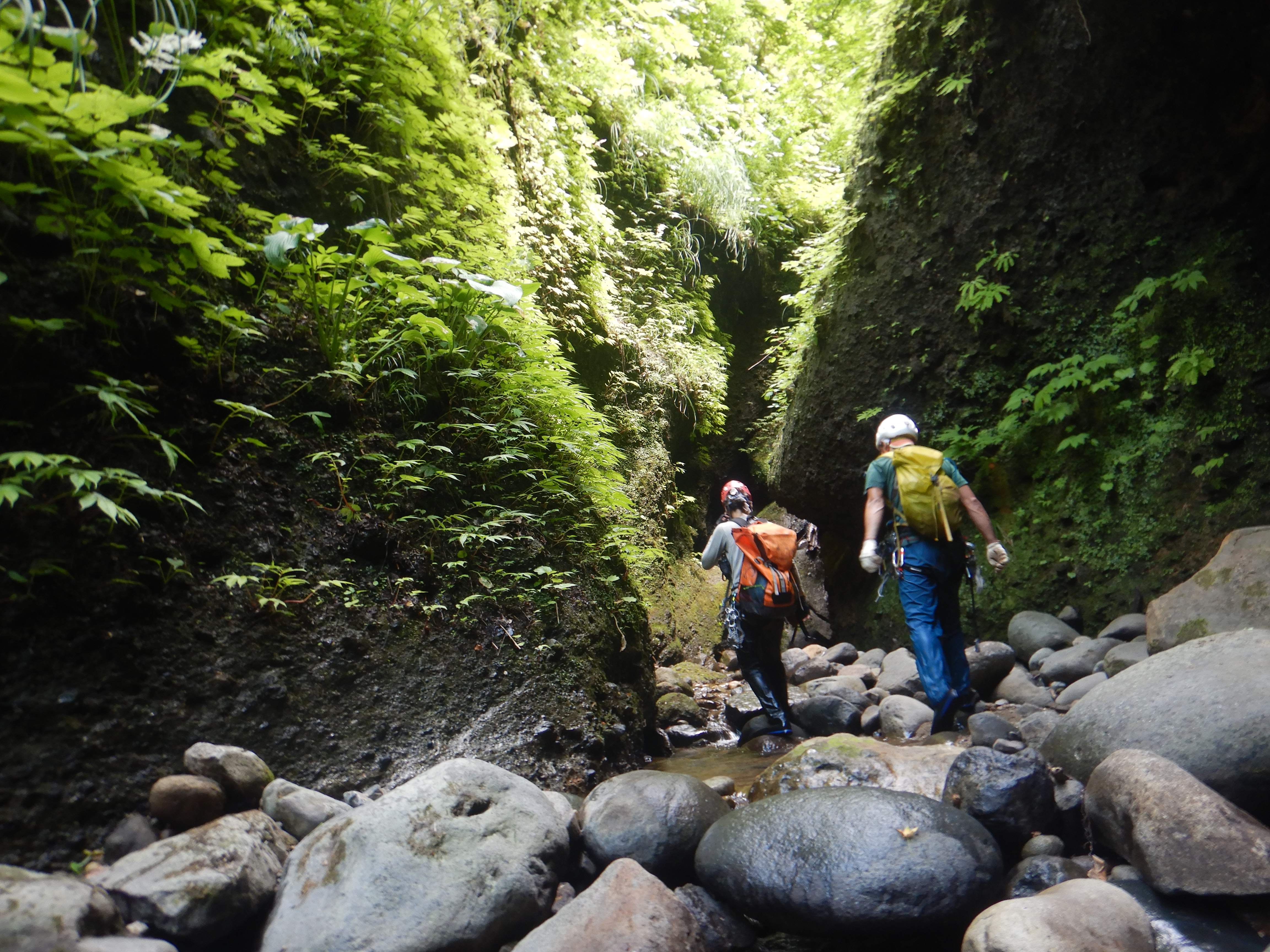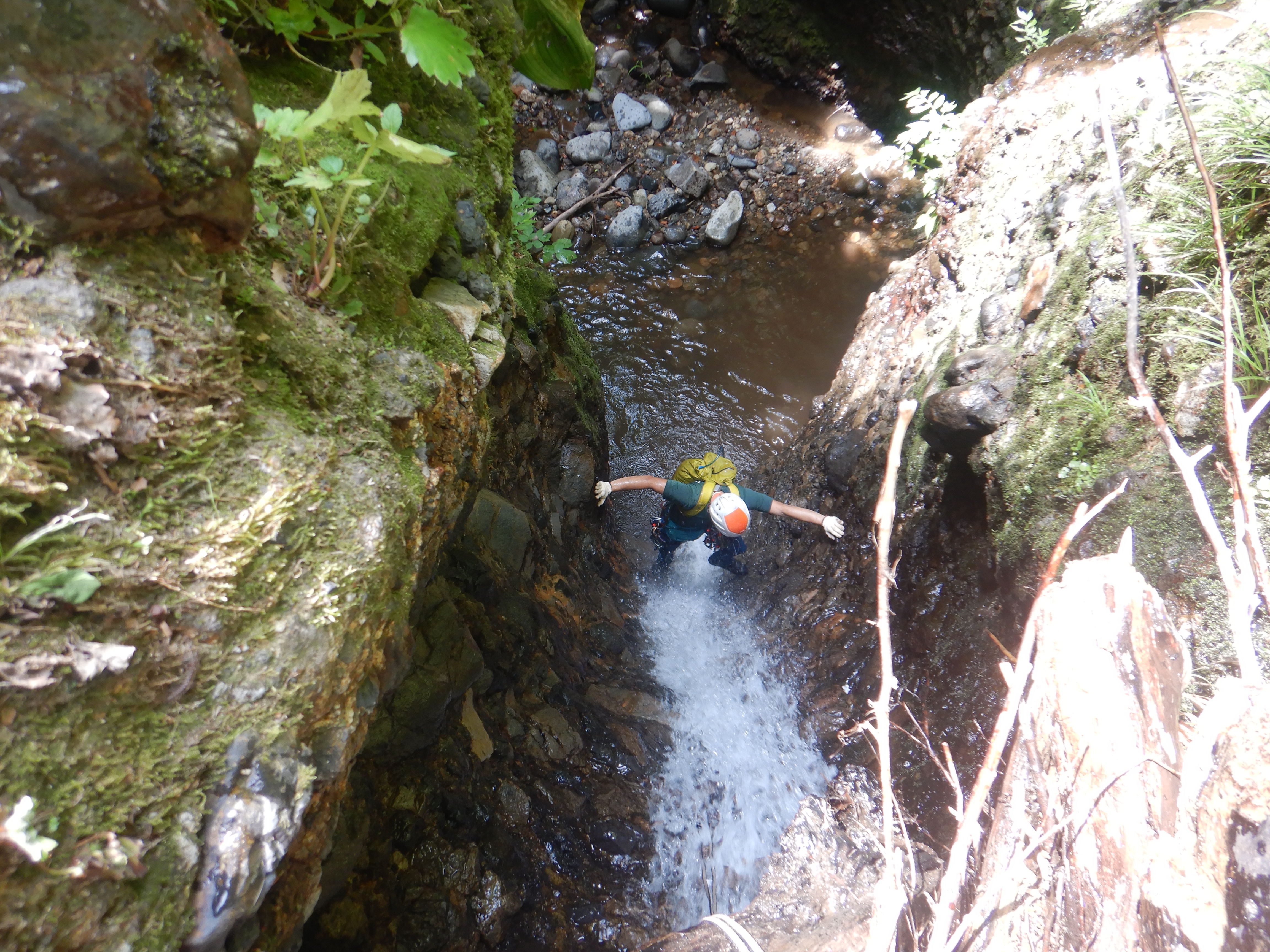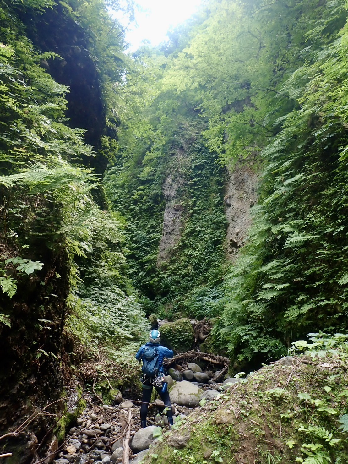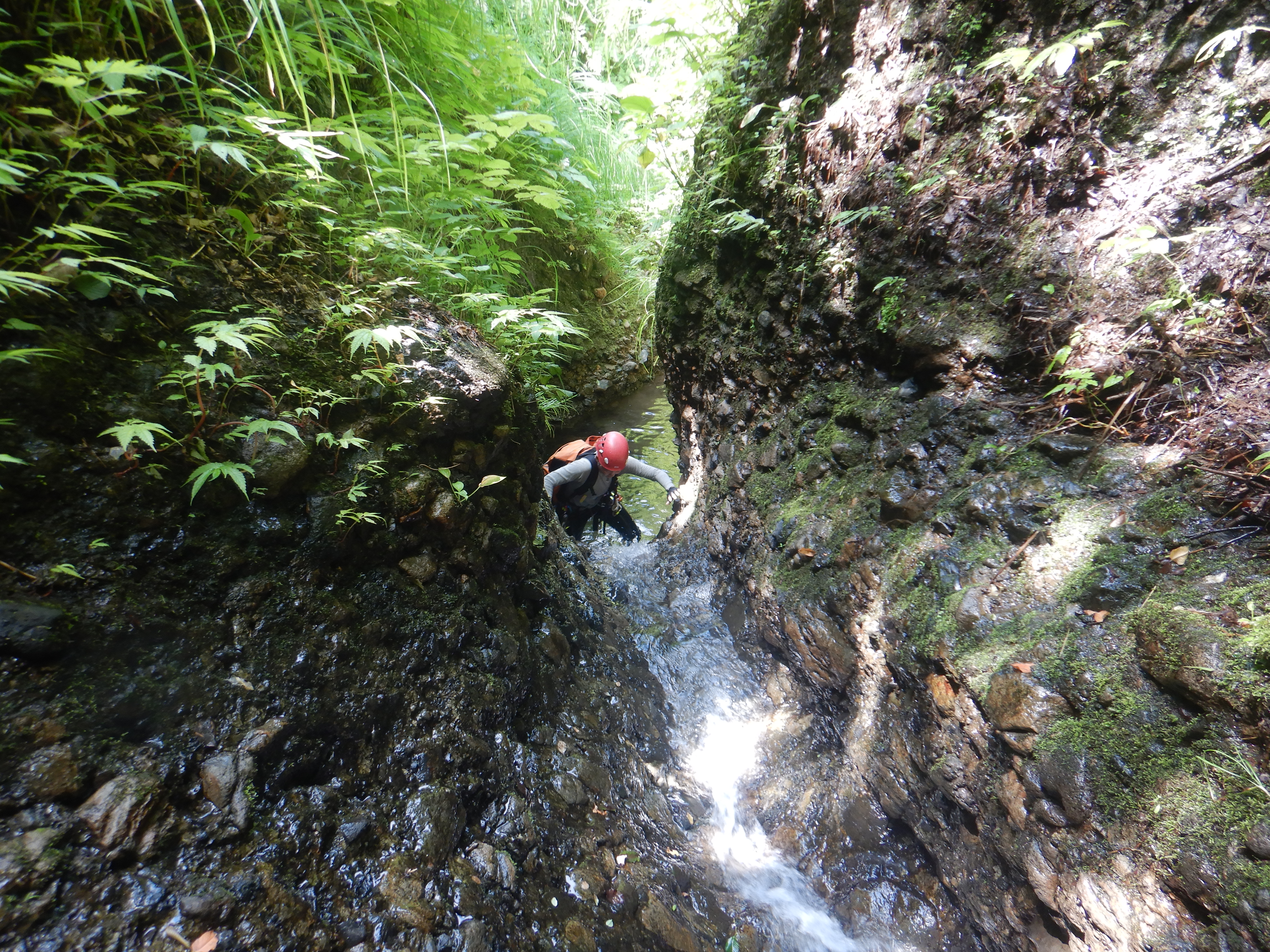 歪なゴルジュに穴潜り系の滝が続き、アドベンチャー要素満載。短いながらもかなり楽しい。朝活や雨の日にどうぞ。