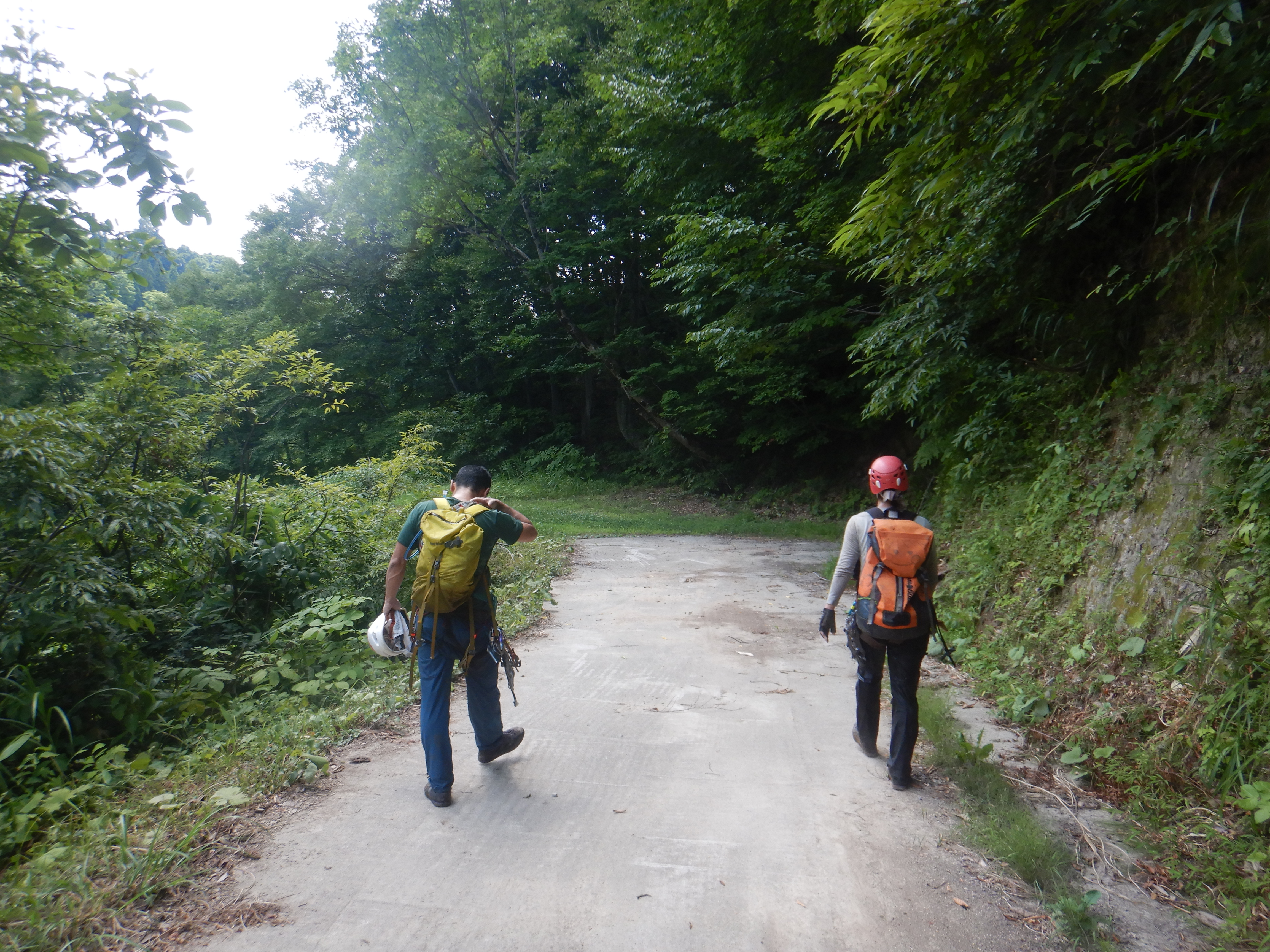 穴沢は観光地ではない清津峡トンネルの下を流れる沢だ。(紛らわしい)娘を保育園に預けてきた2人と合流して出発。