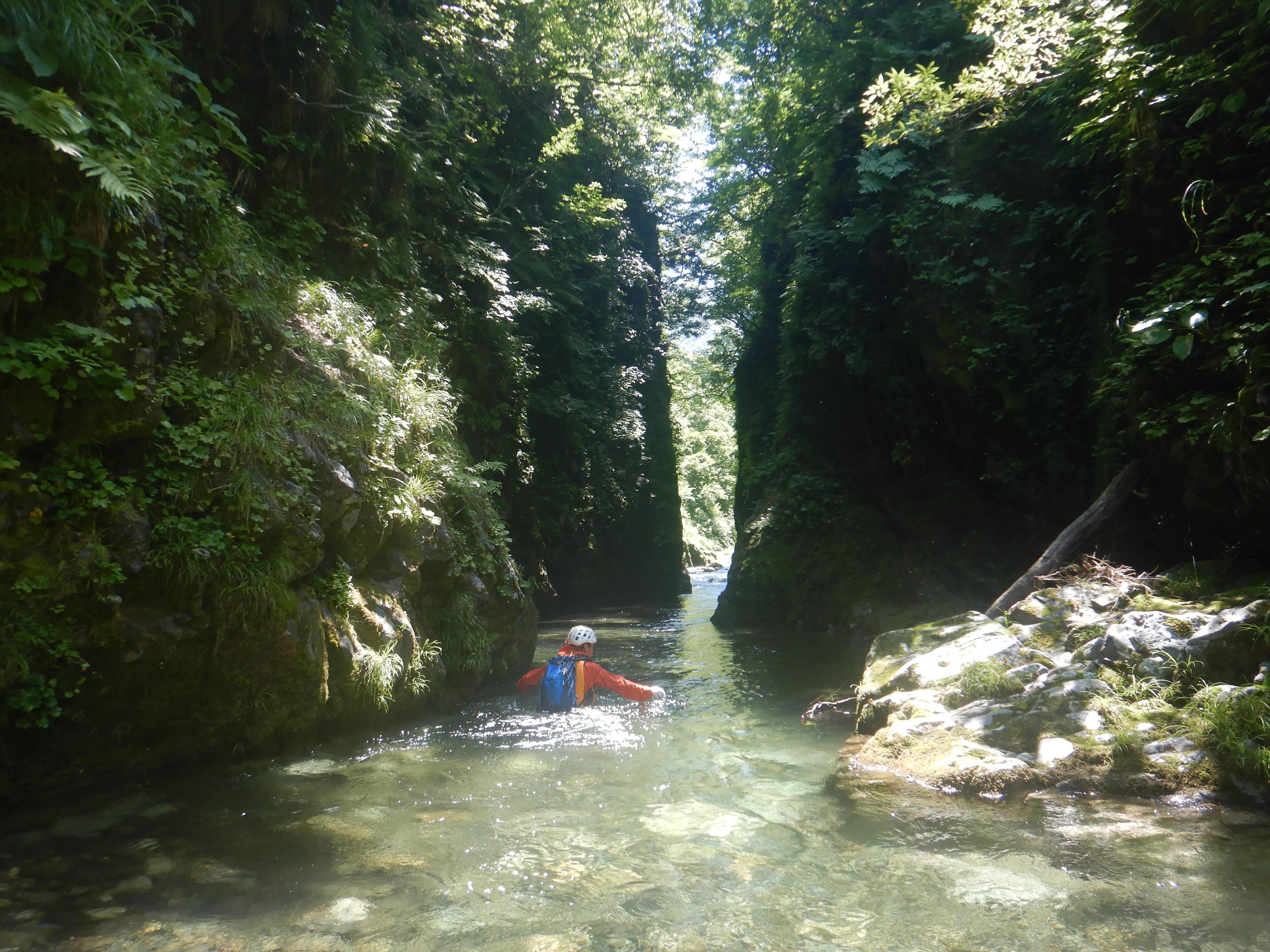 非常に短いゴルジュなのでアクティブレスト、朝活、〆の1本に最適。ゴルジュ突破の練習や泳ぎ・渡渉の練習にも使えるかも。