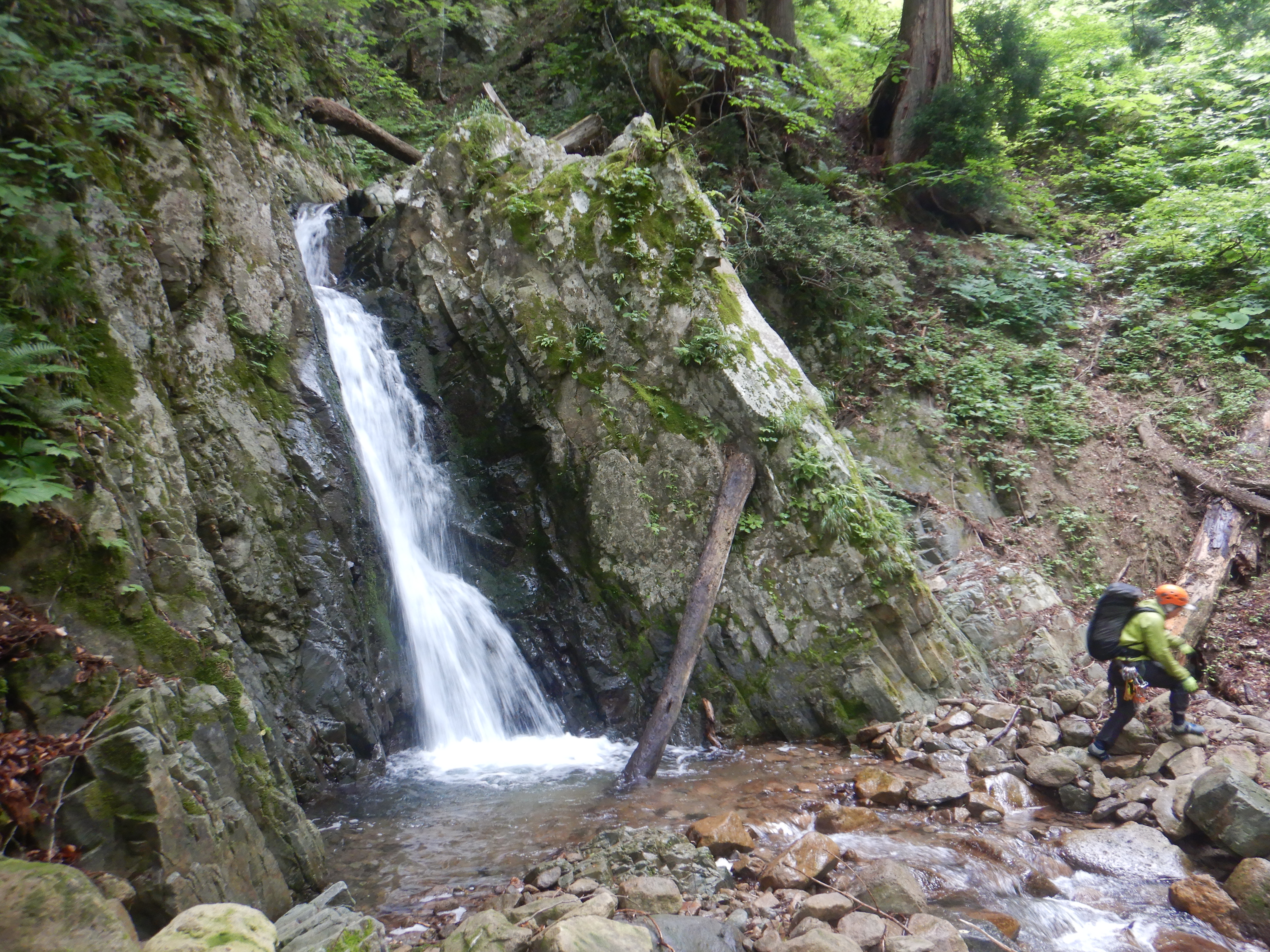 登山道を歩いていると万滝沢方面は晴れている。急にやる気になって支流を下降して行く。