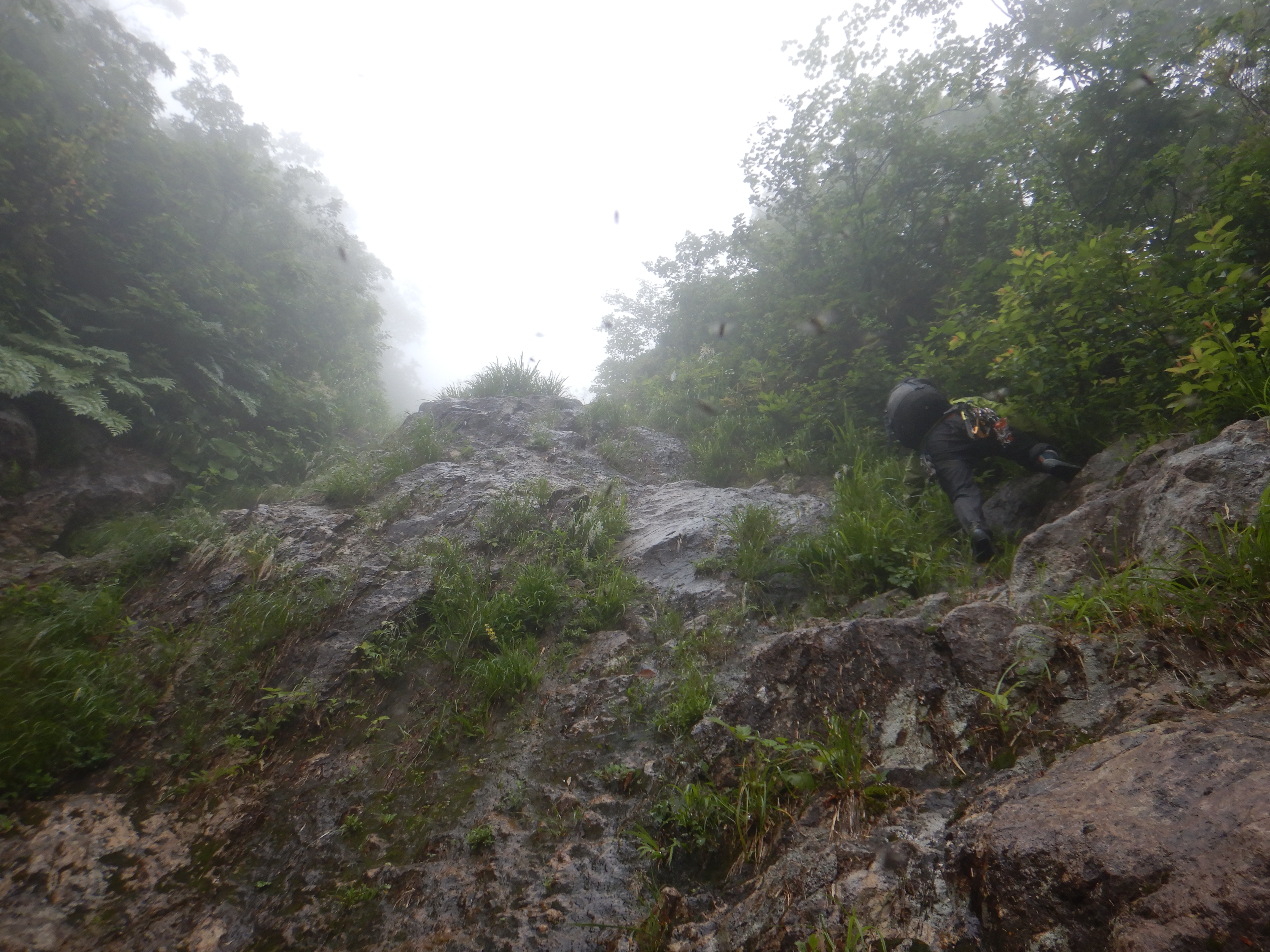 5m滝は右から取り付いたが、岩がポロポロ剥がれる…。