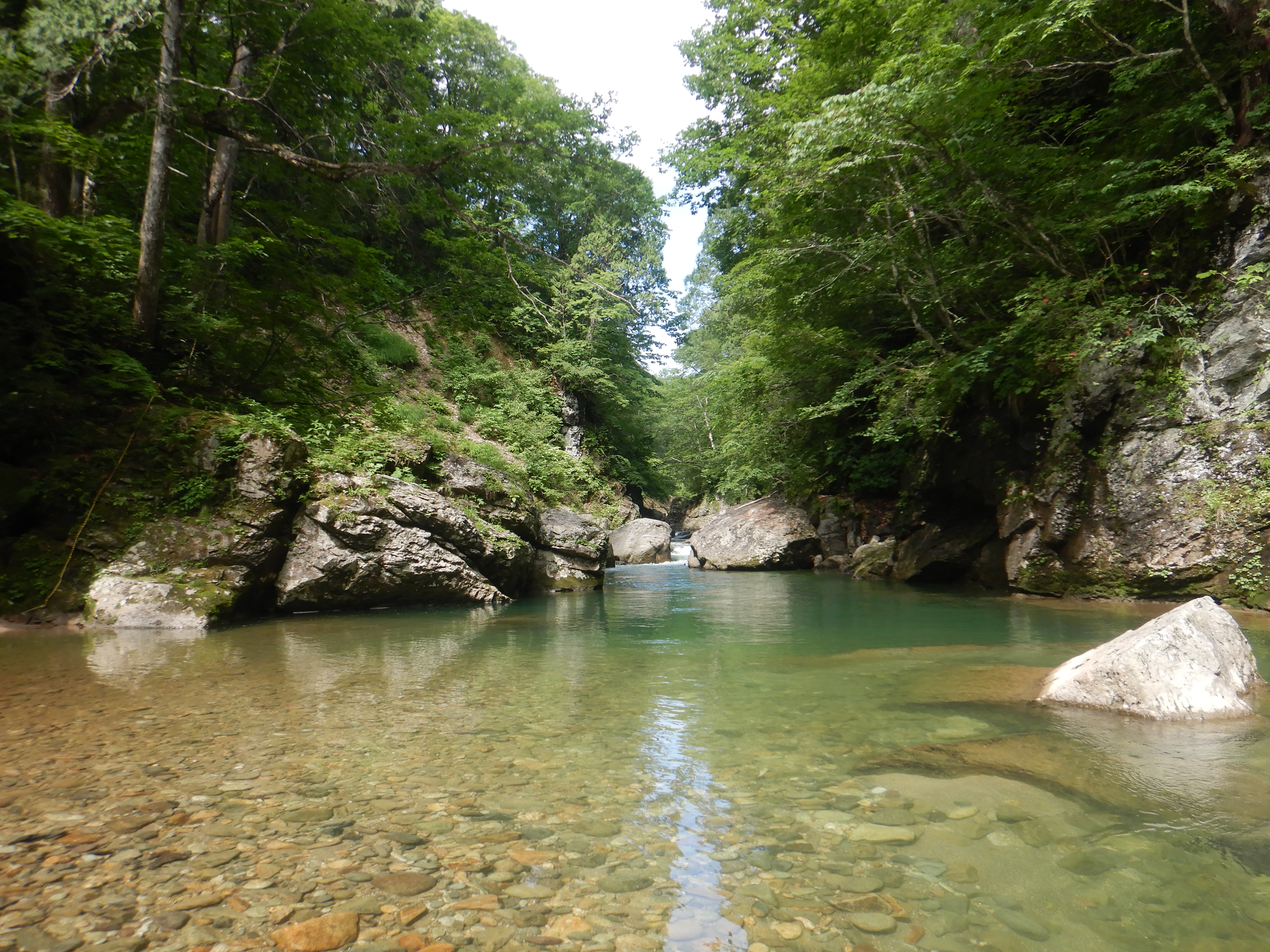 多くの沢ヤが訪れる渓谷だけあって、渓相は非常に素晴らしい。沢幅いっぱいに広がるナメと清流は今後も多くの沢ヤに感動を与え続けてくれるだろう。沢旅系の代表格で特に難所は無い。万人におすすめ出来る。