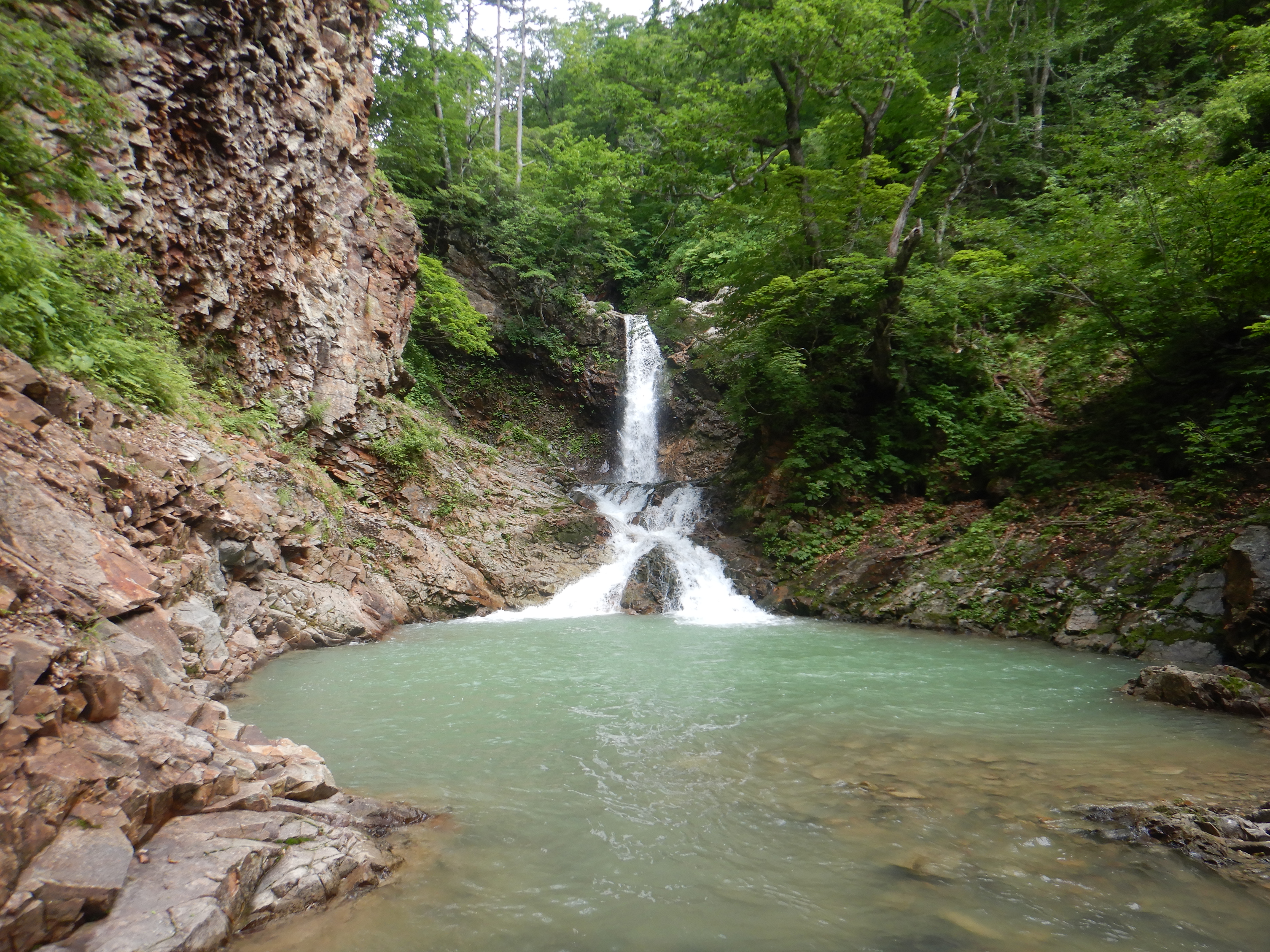 葛根田大滝に到着。ここも水の色がケミカルに変色。右から容易に巻く。