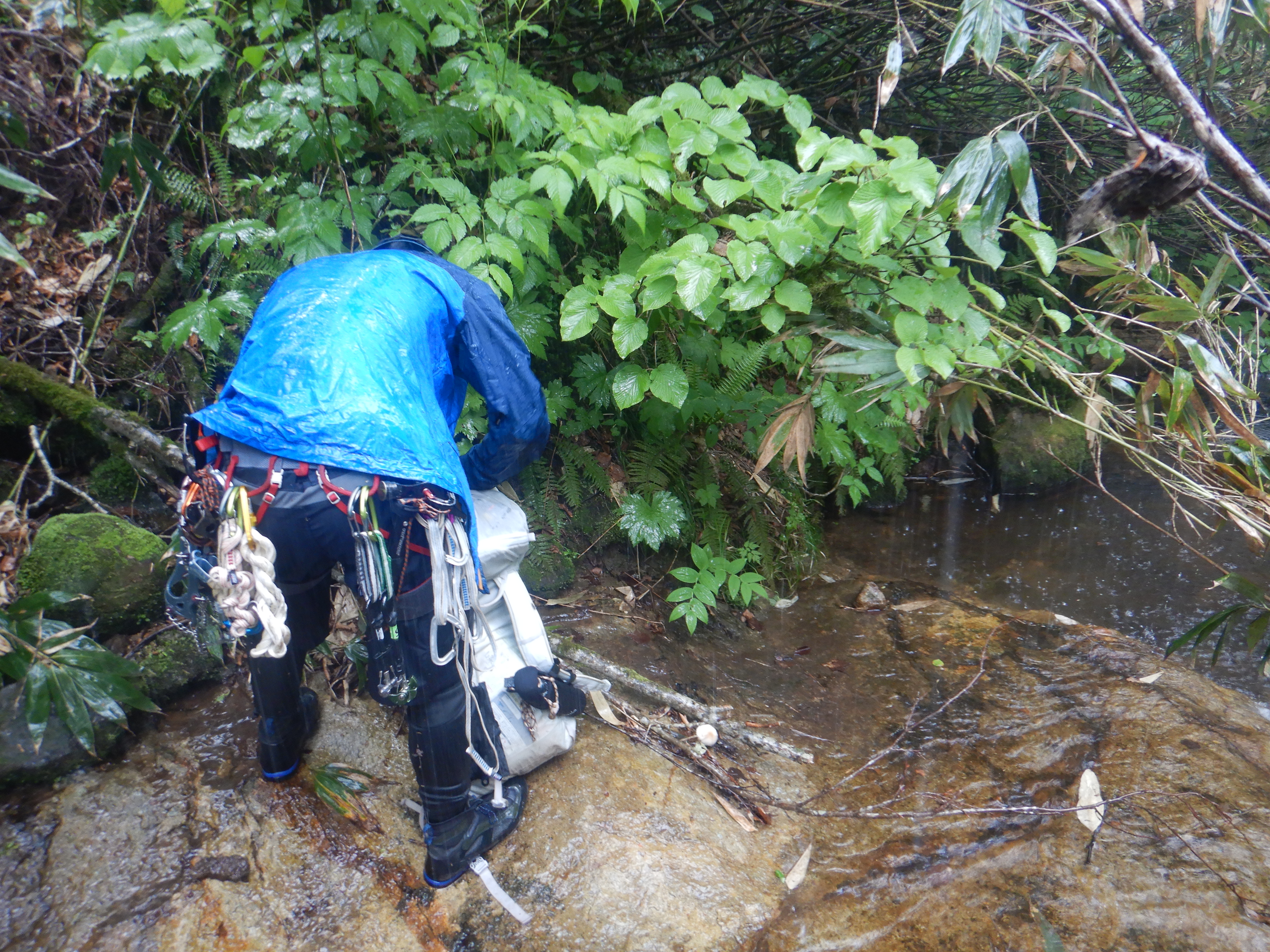 登山道へ抜けた後は反対側の関東沢へ降りて行くが、ここでバケツをひっくり返したような豪雨に襲われる。
