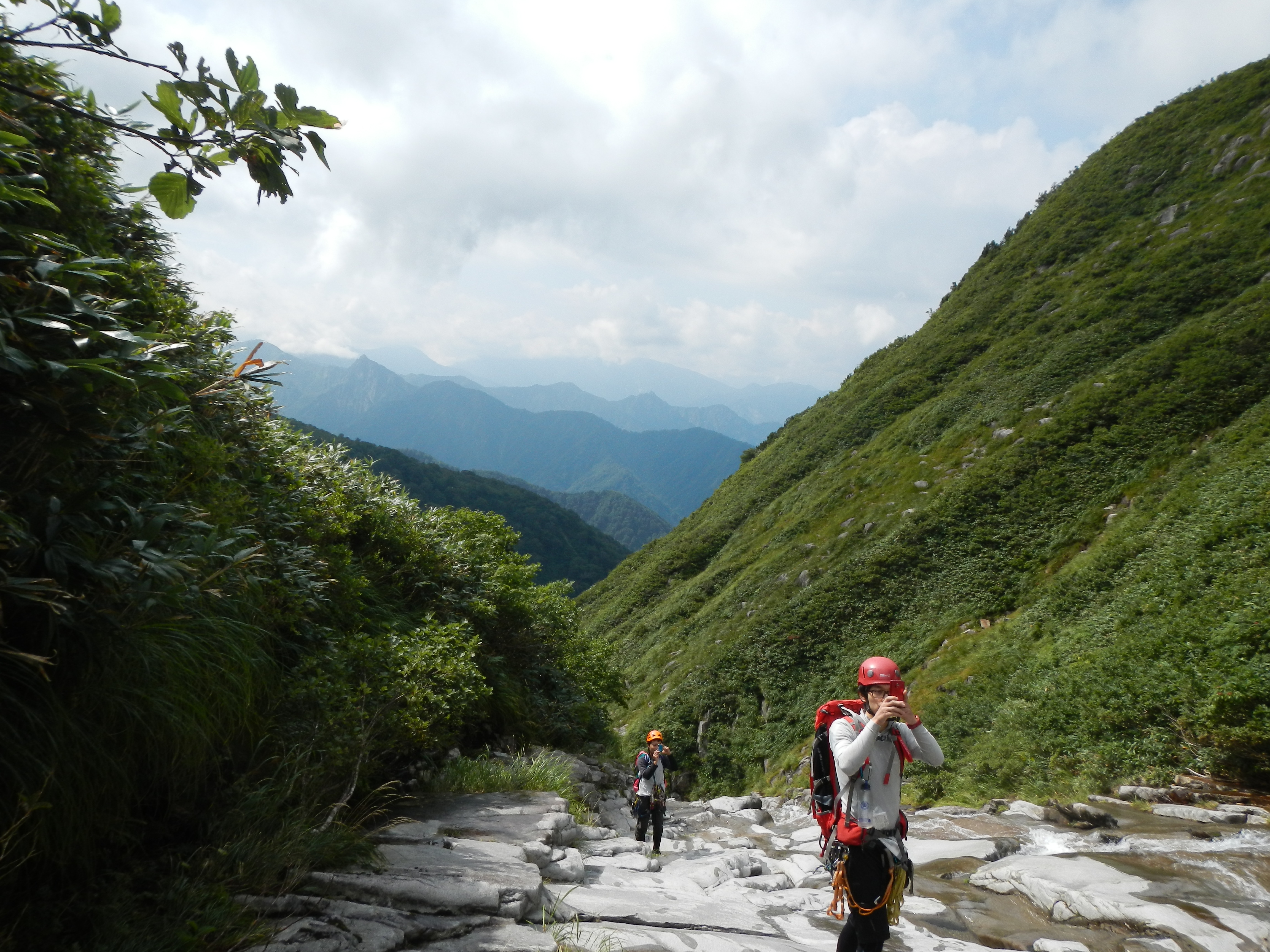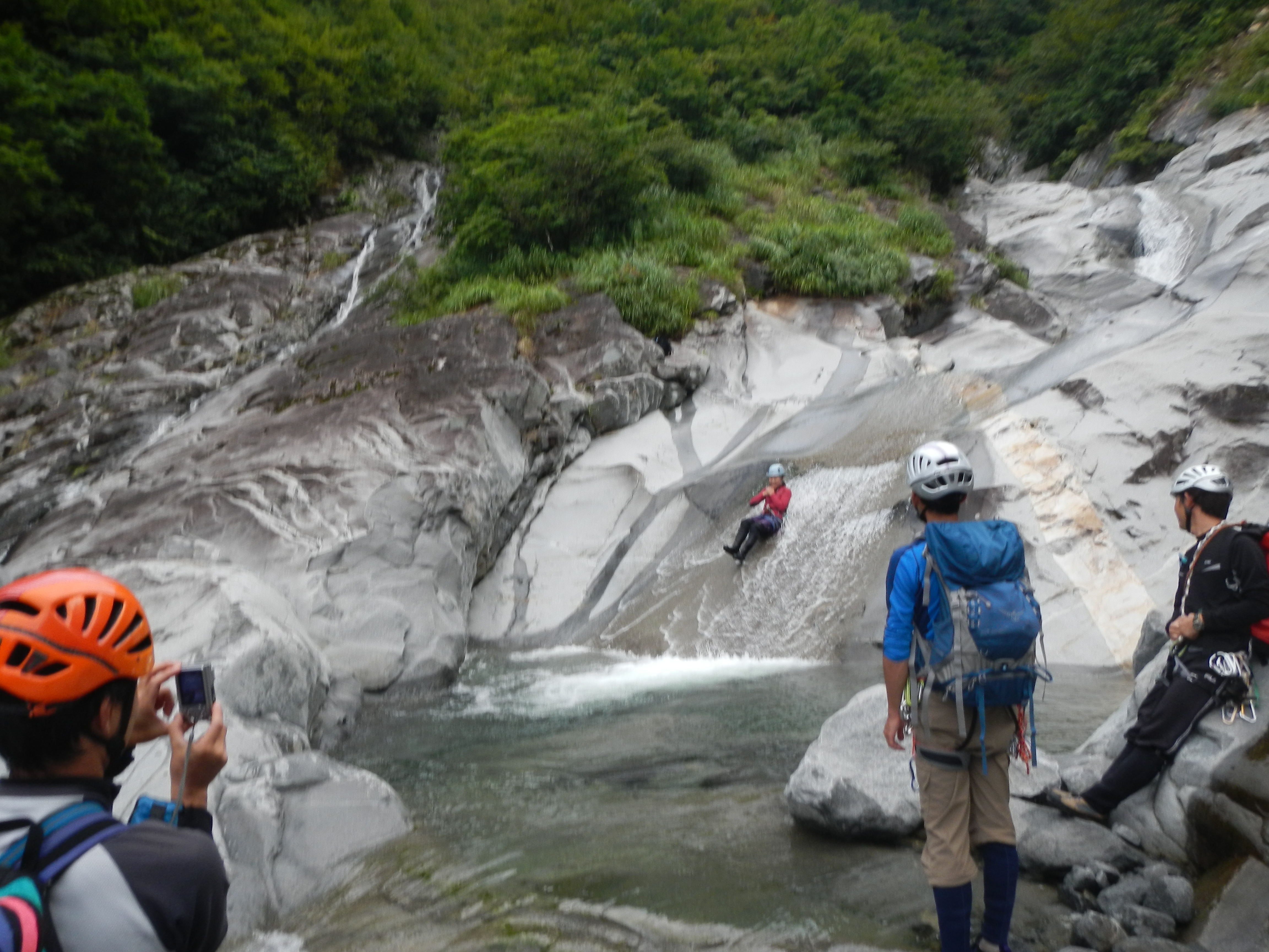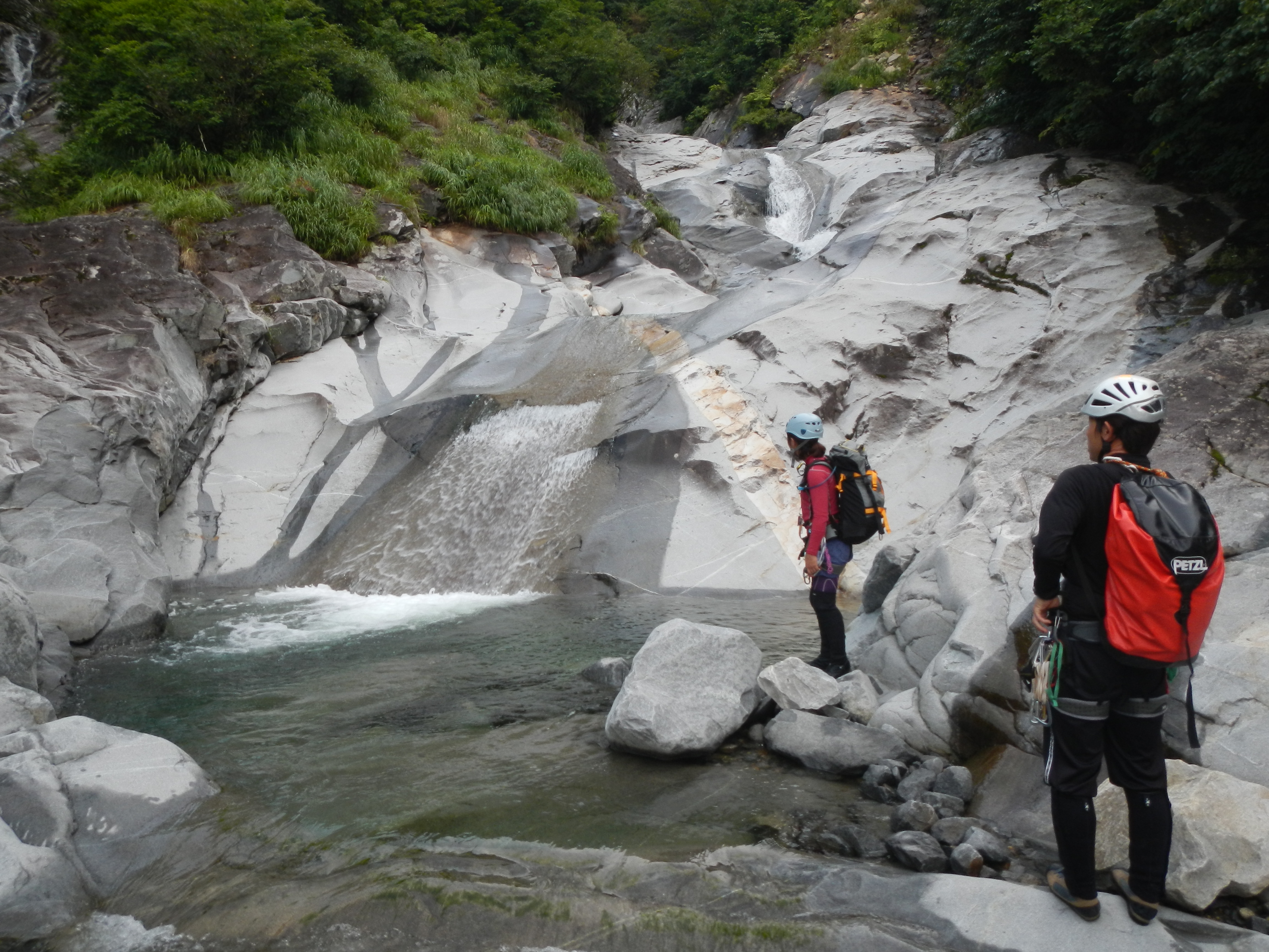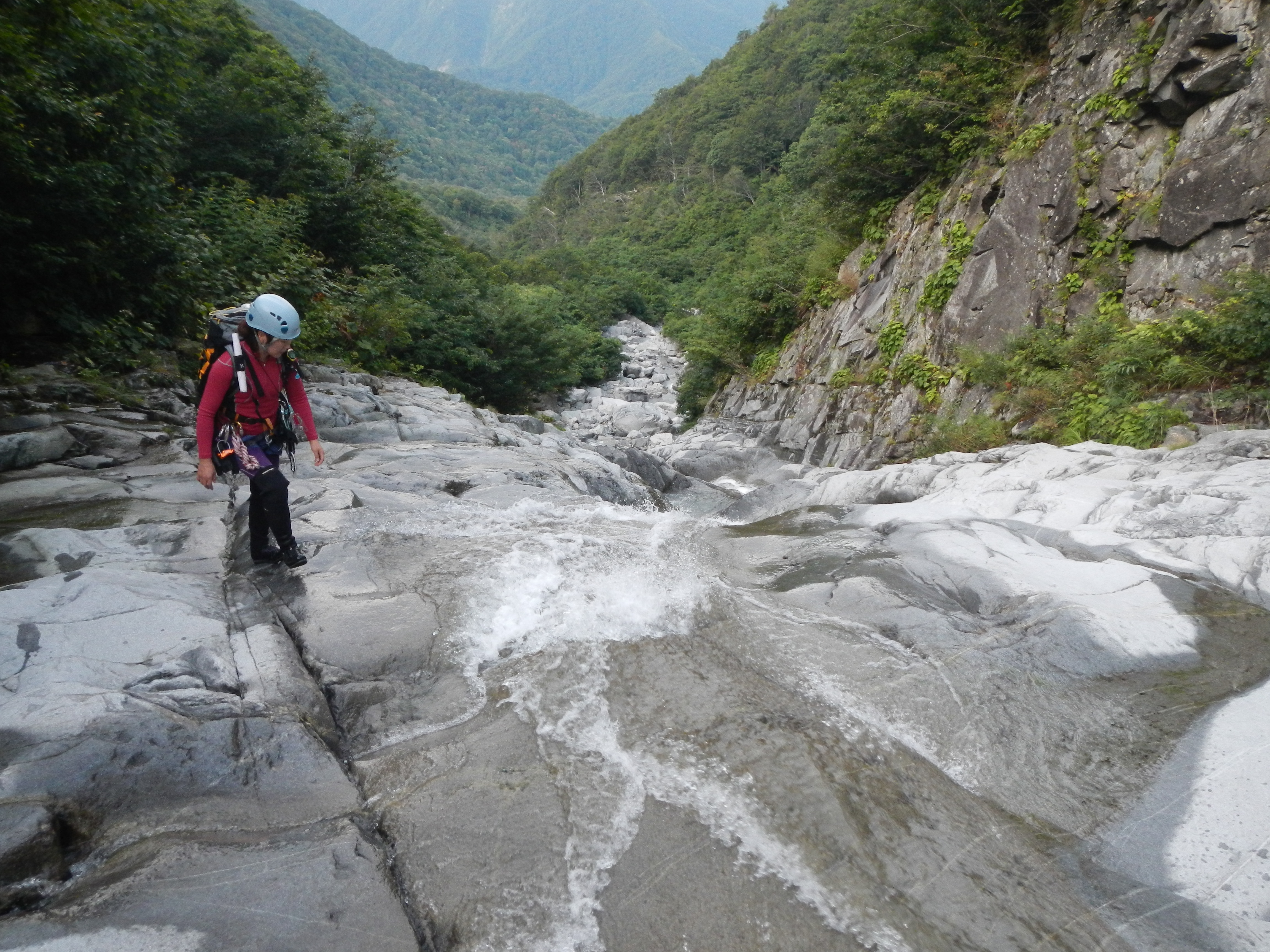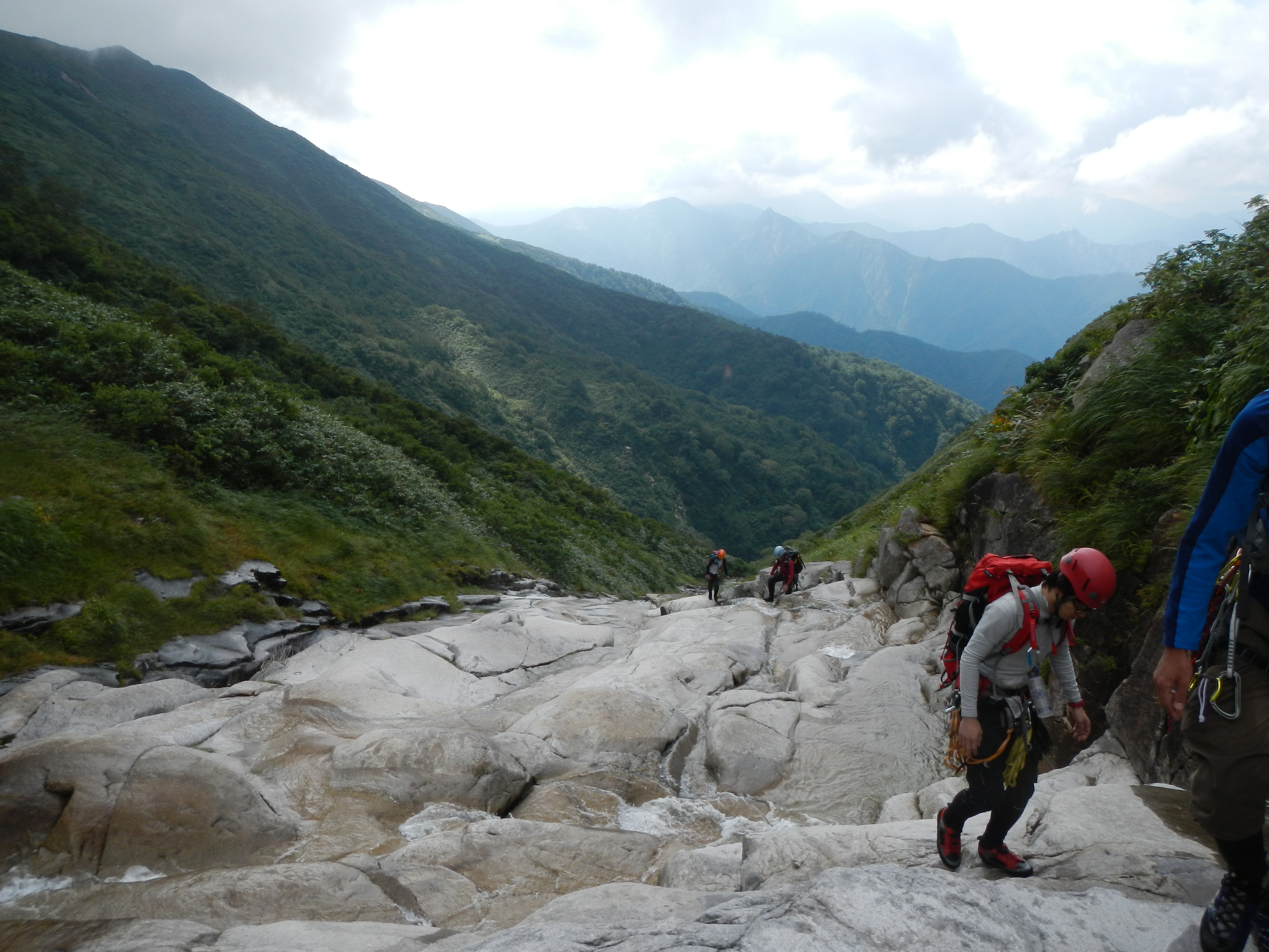越後を象徴する開けた渓相と上部の源頭まで続くナメは圧巻。越後の沢デビューはここで決まり!文句無しの素晴らしい沢。