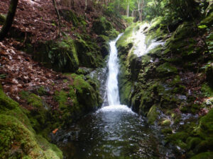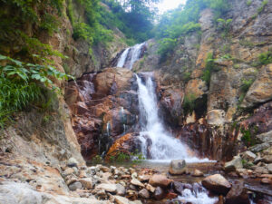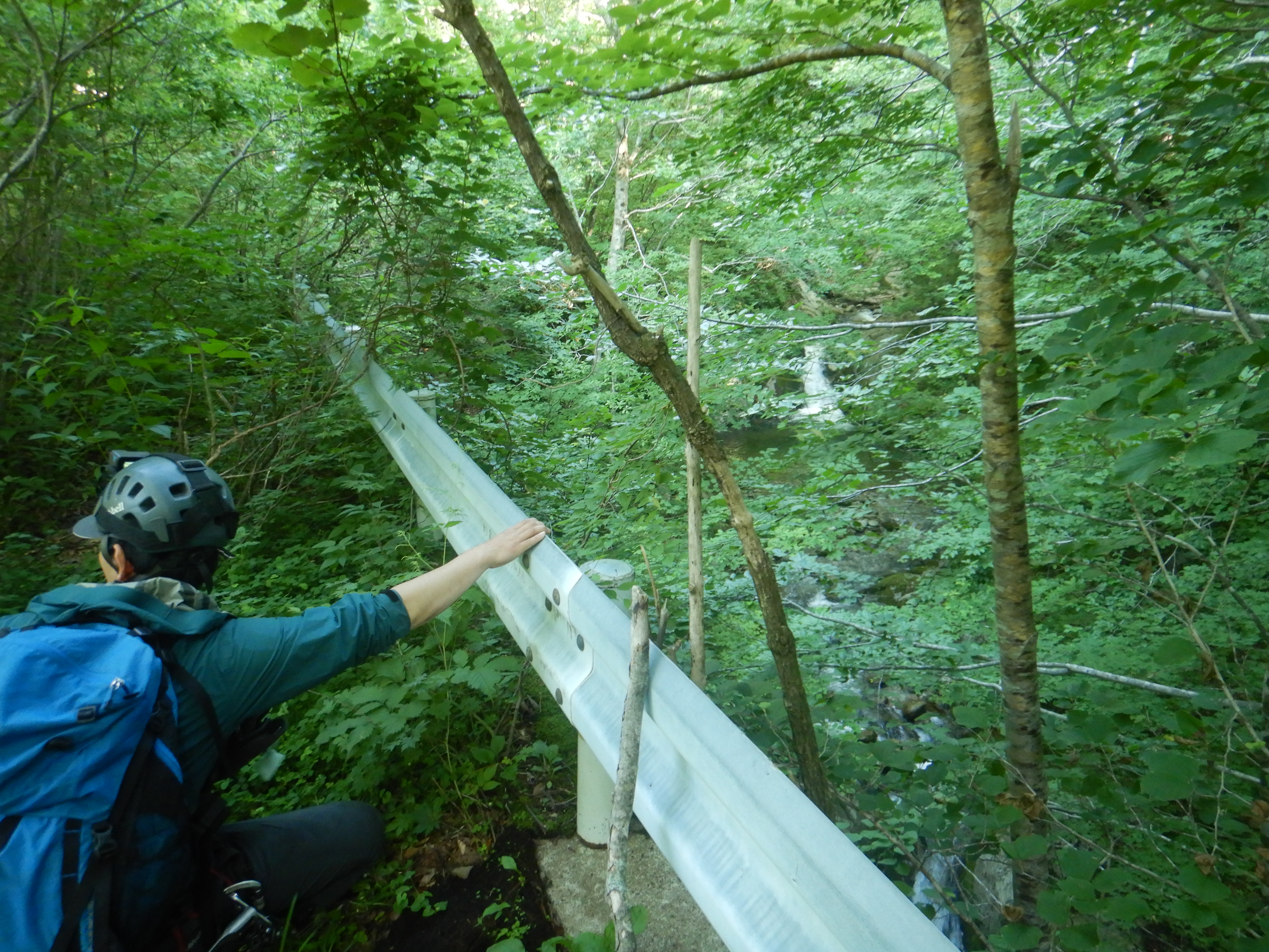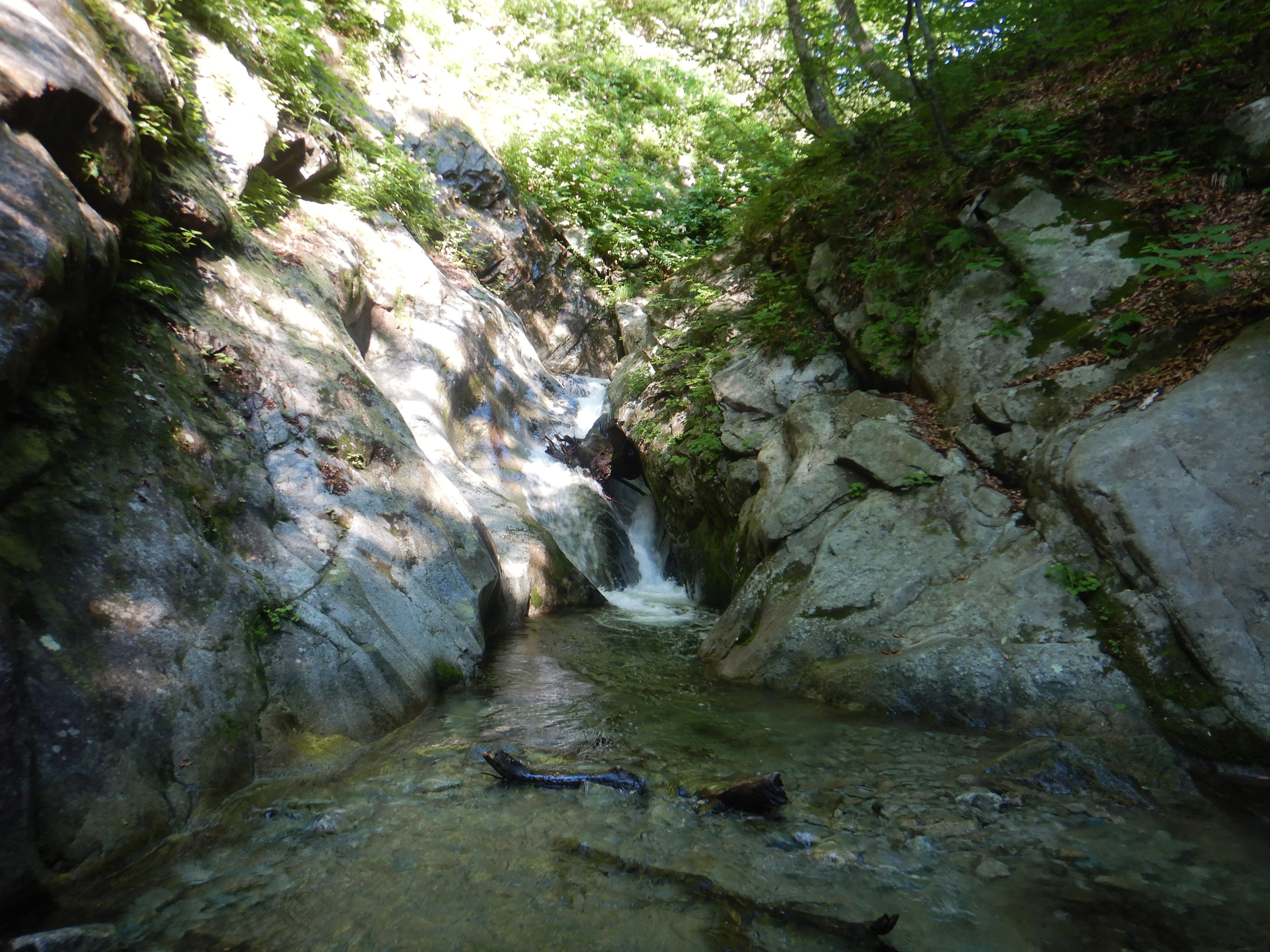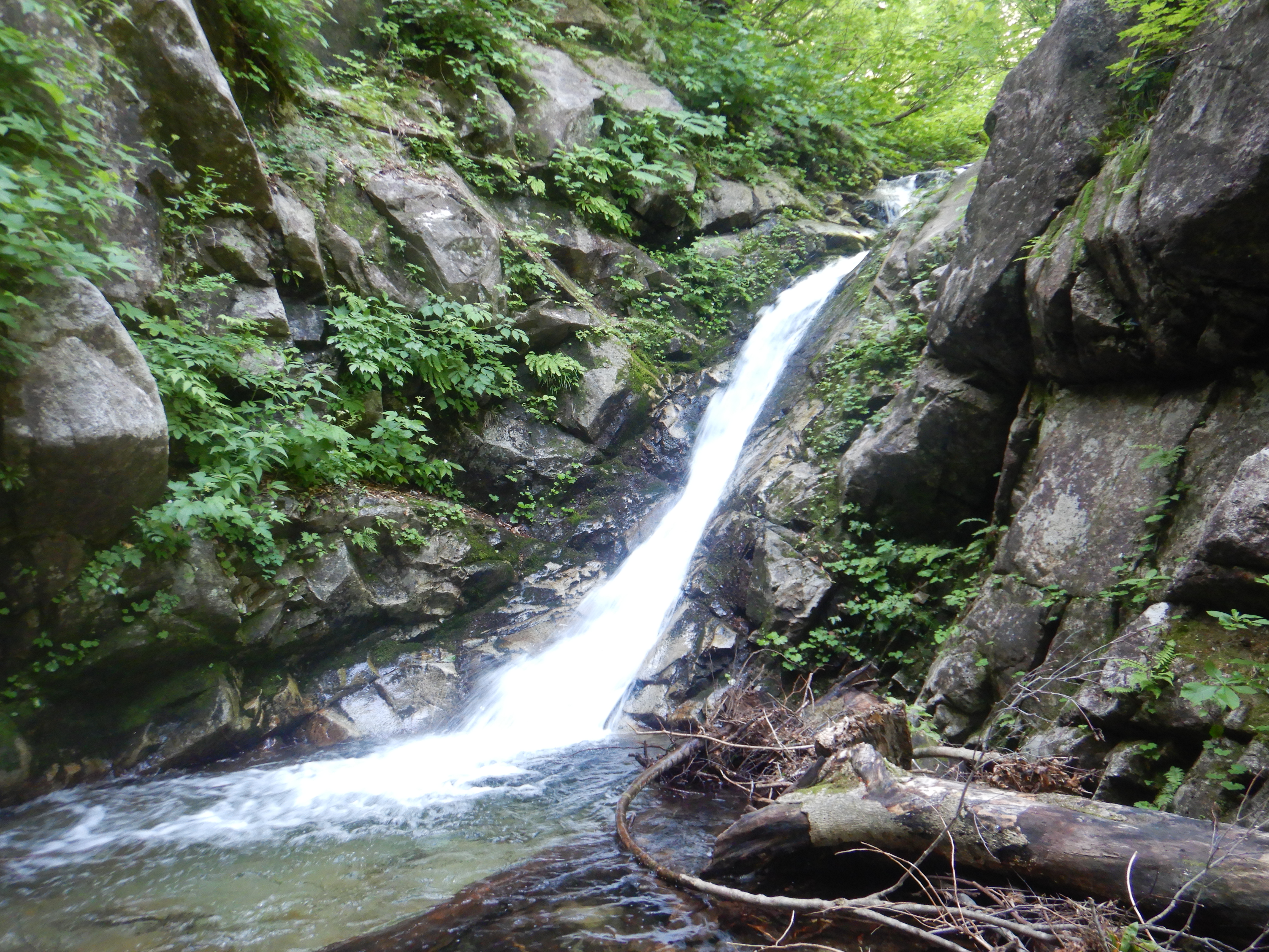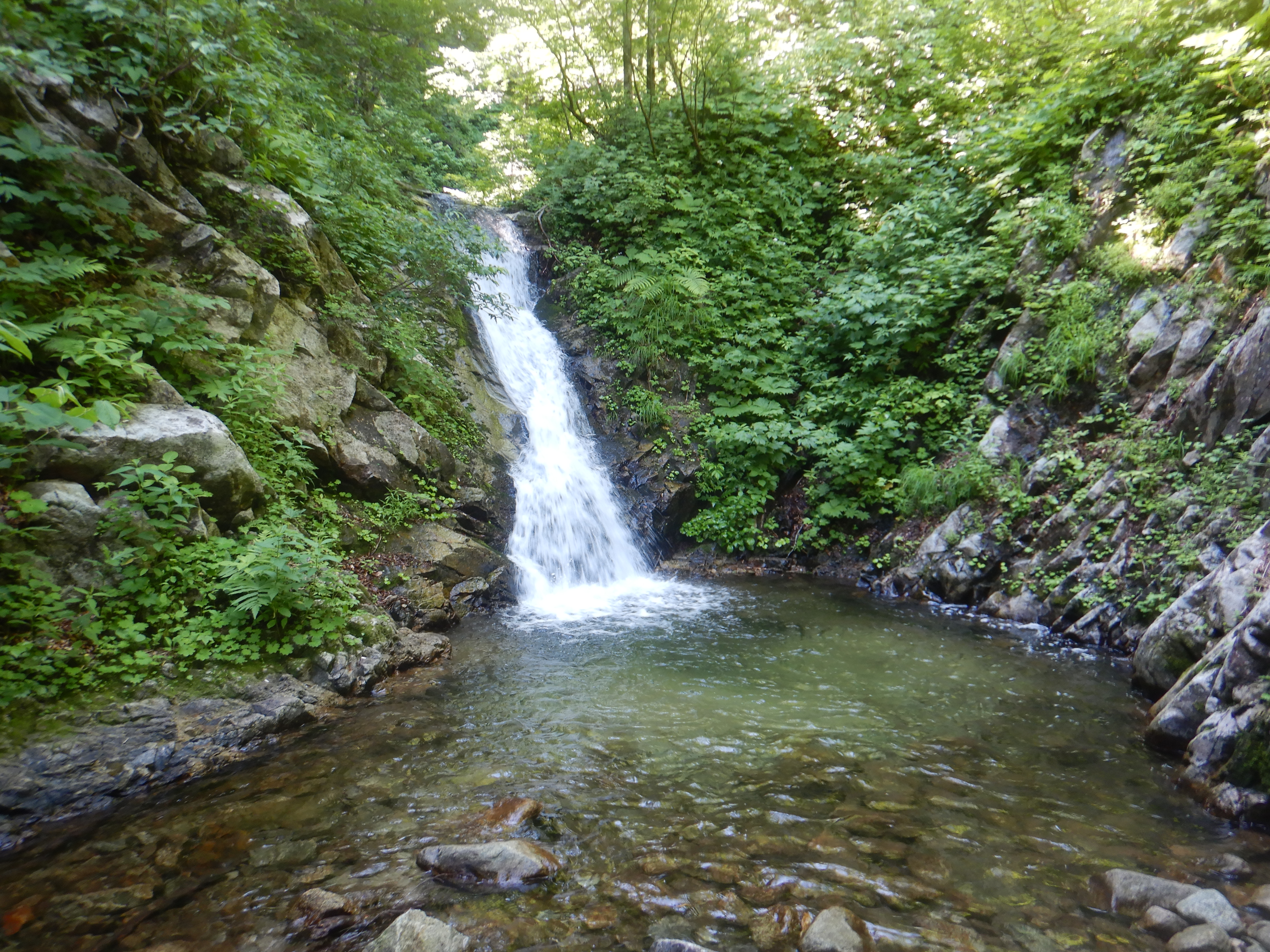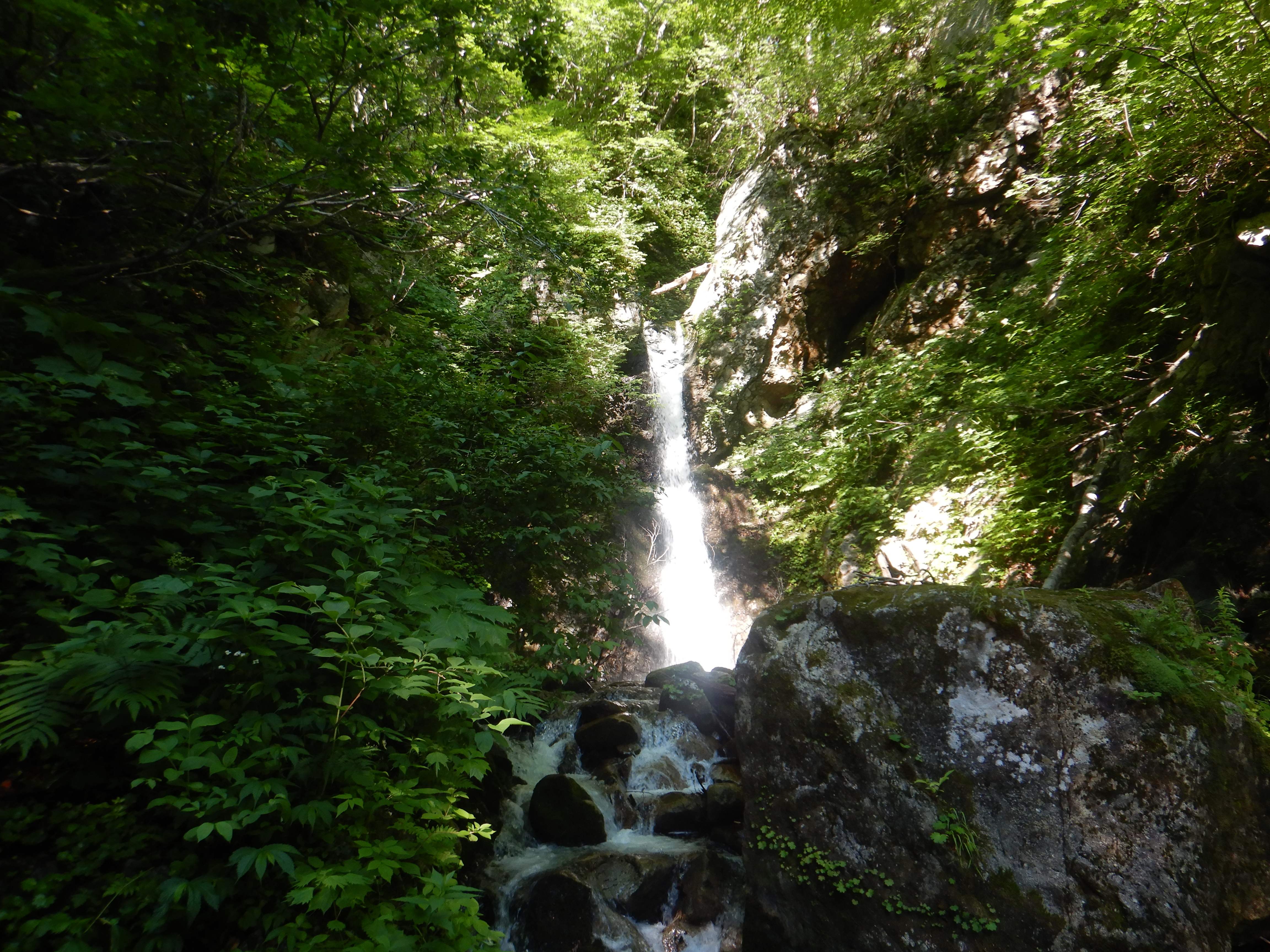 その後も小滝が続いて夢中で登っていると登山道に抜けた。クマに遭遇しつつ、人がいない登山道を歩いて峩々温泉へと下山。