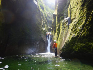 ここから後半の核心部。最初の8m滝はどちらからでも巻ける。