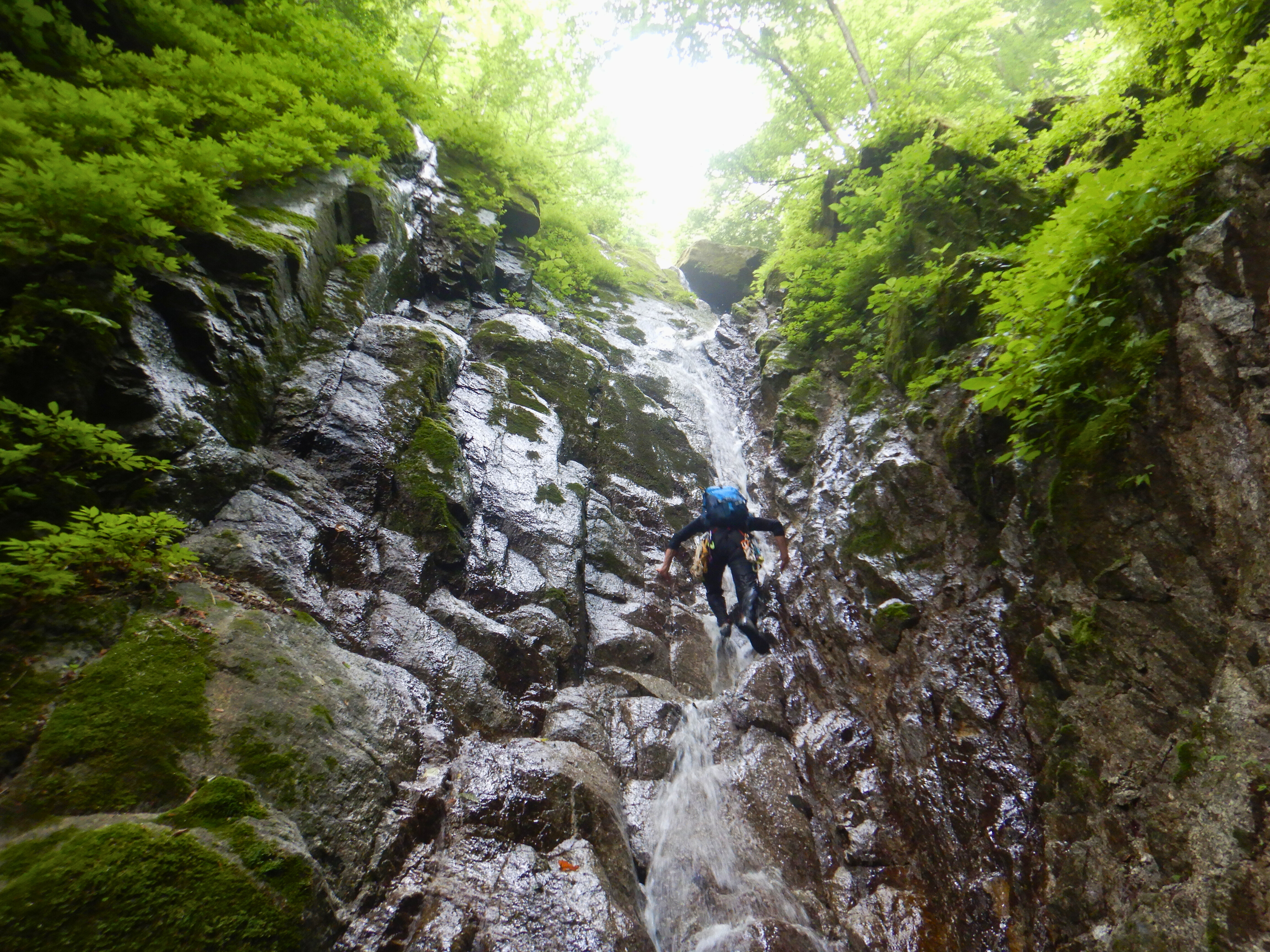 出てくる滝はほとんど水線を登れる。快適で楽しい系かと思いきや結構岩が脆く、ヒヤヒヤする場面も。かなり短いので朝活向き。雰囲気は悪くなく、無難に楽しめる沢。