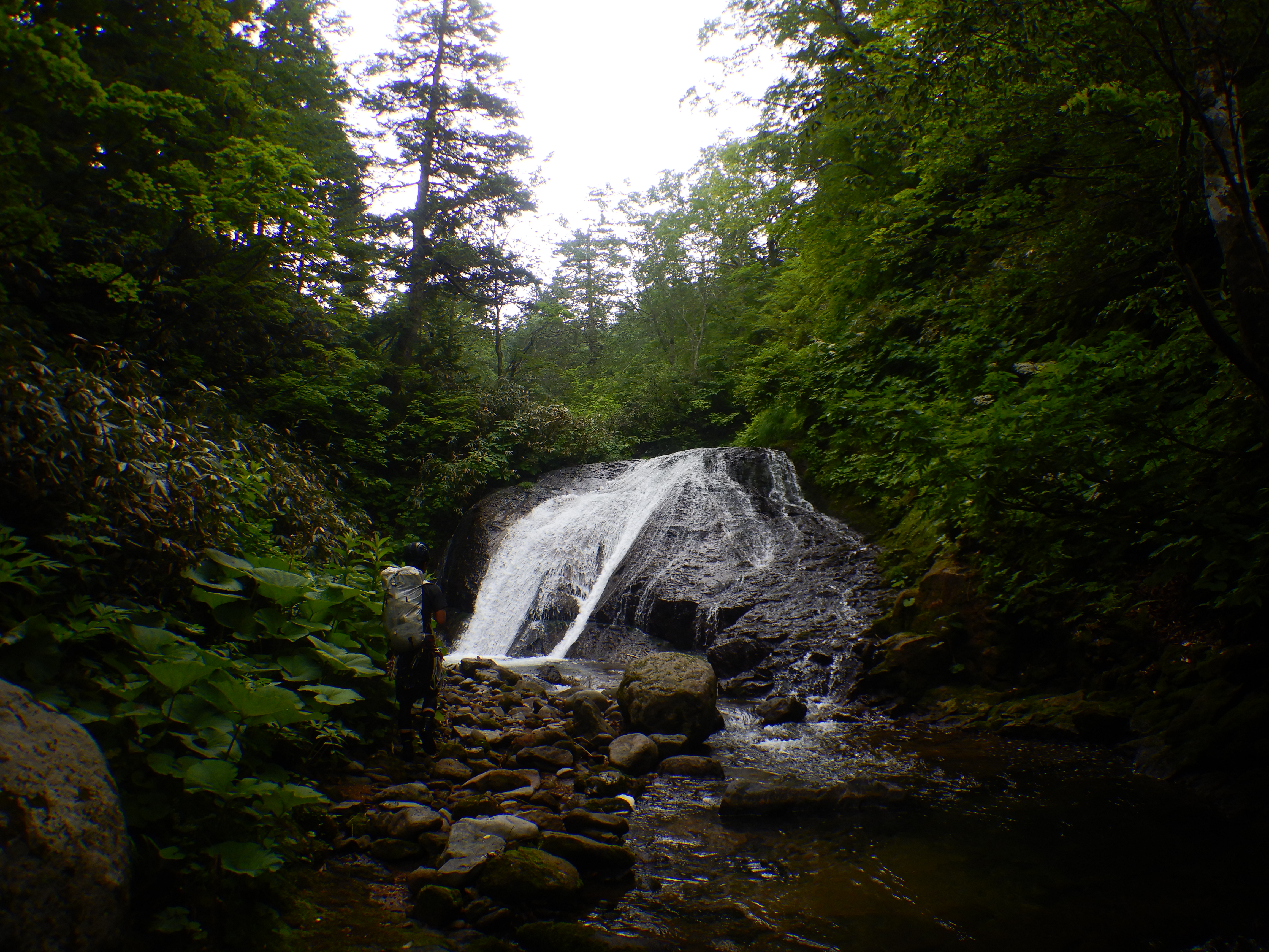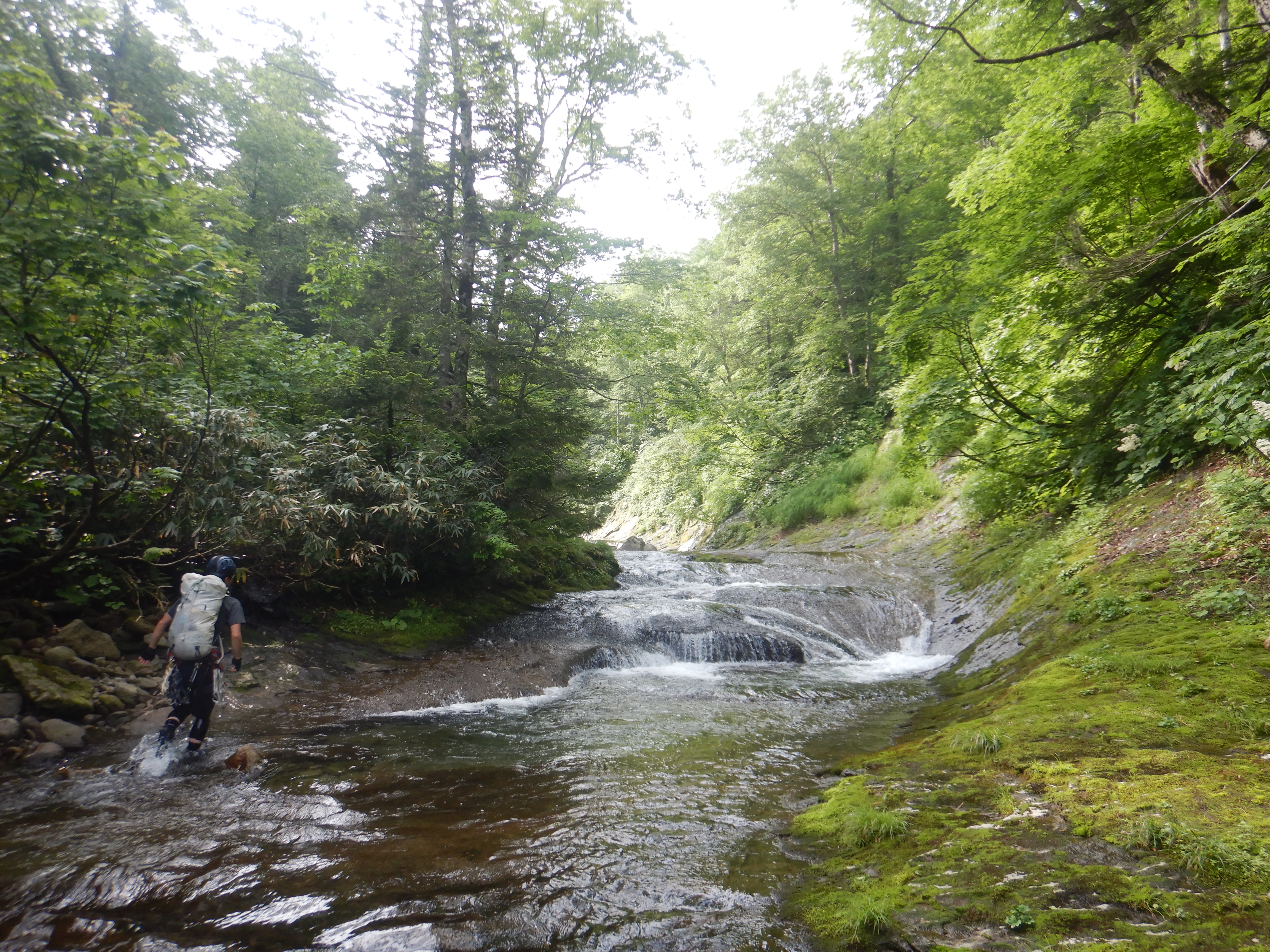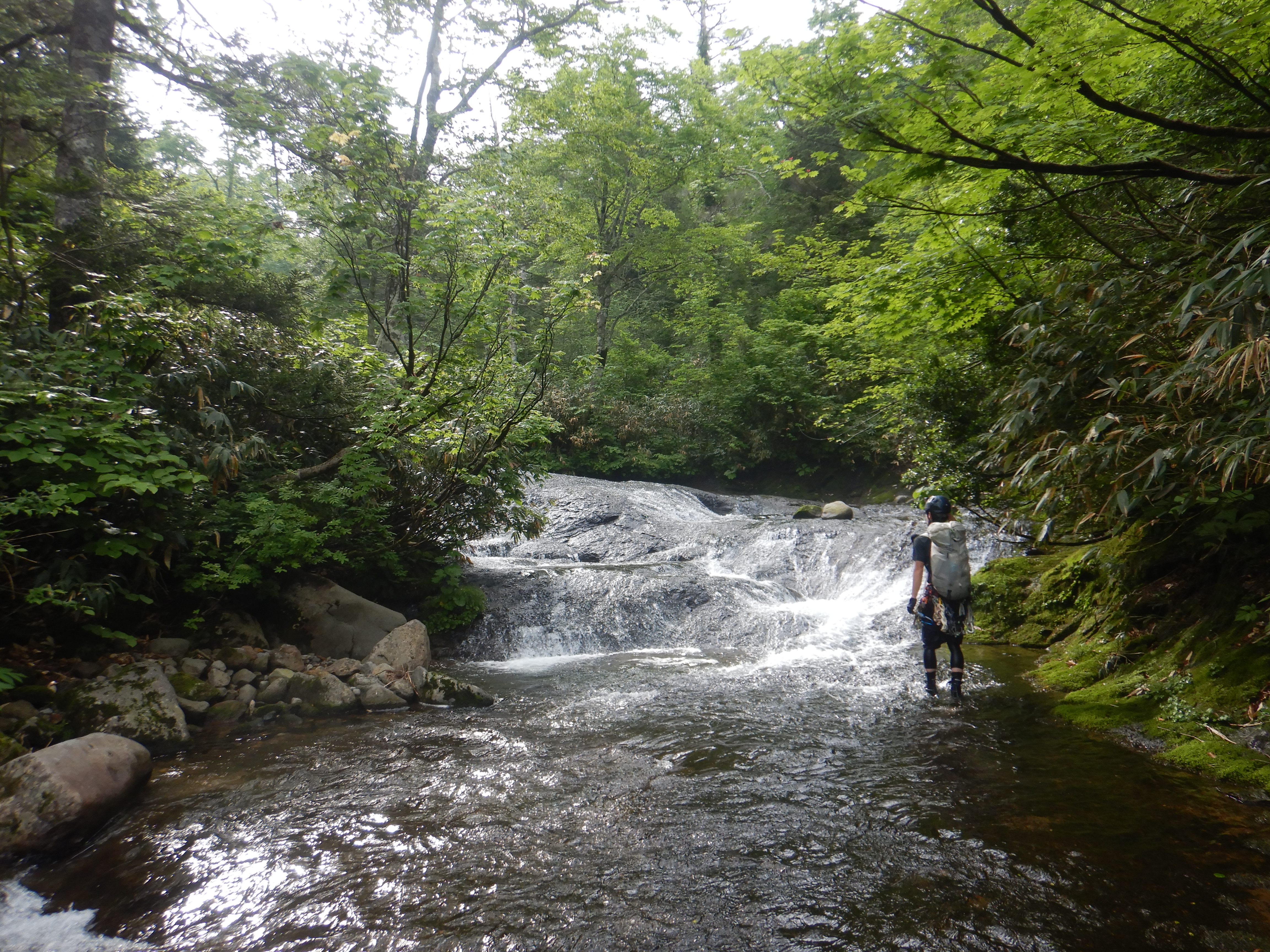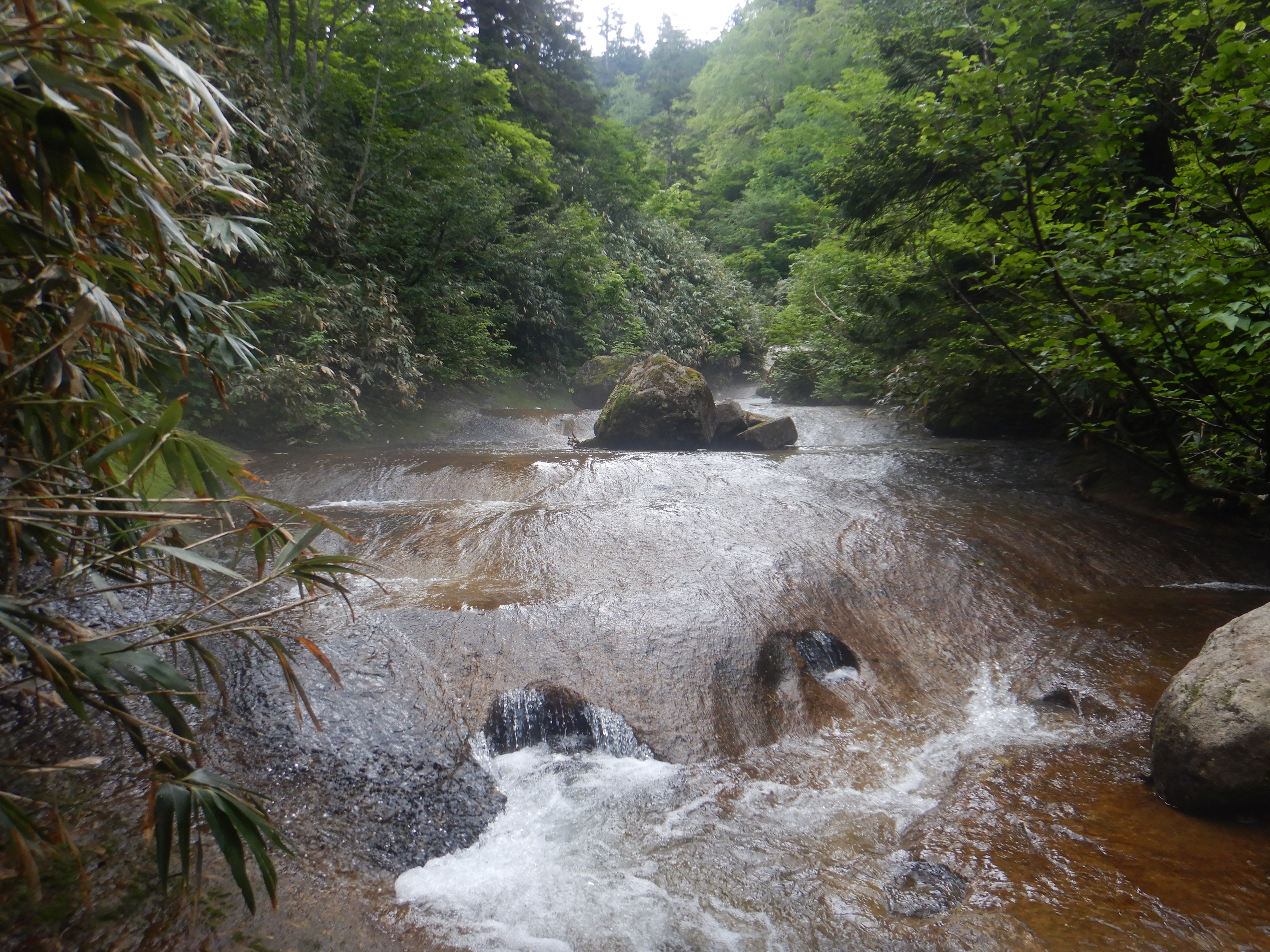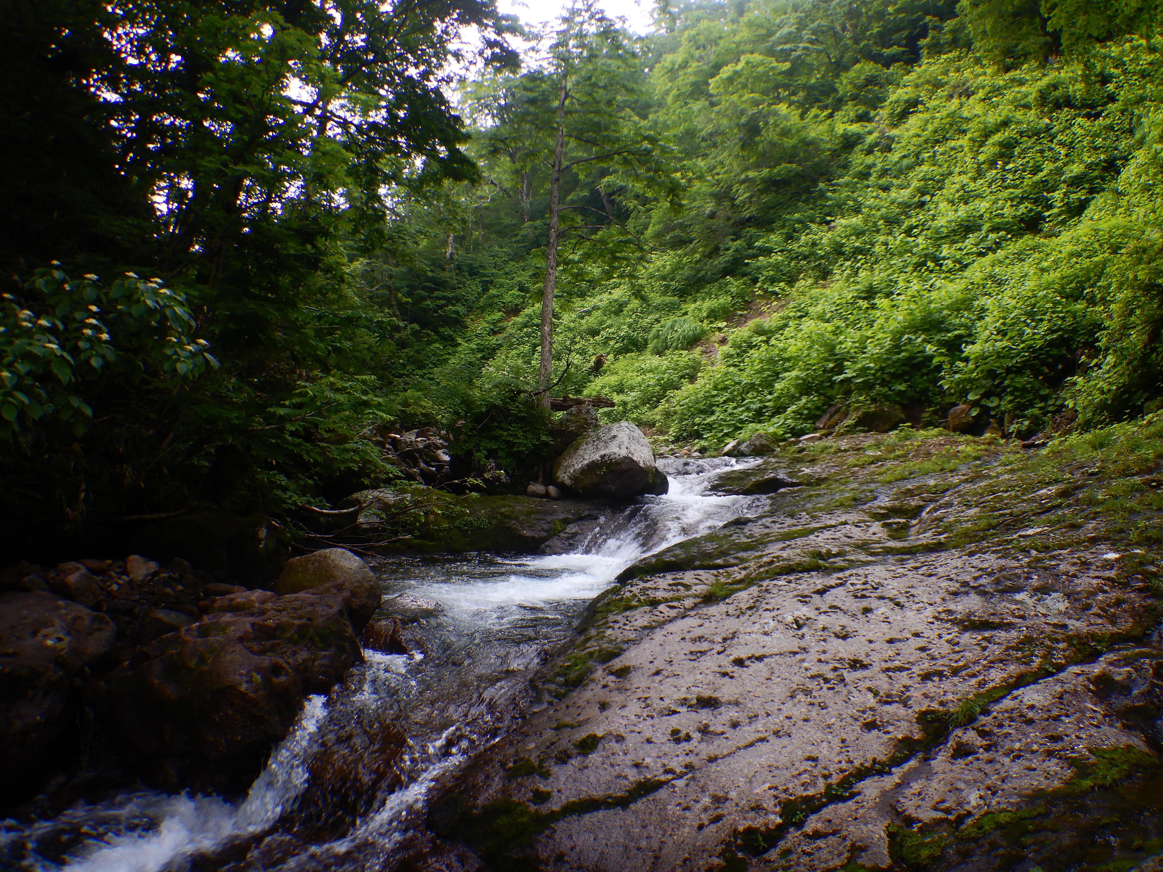三つのナメで合わさる三俣。中央の北ノ又沢へ。