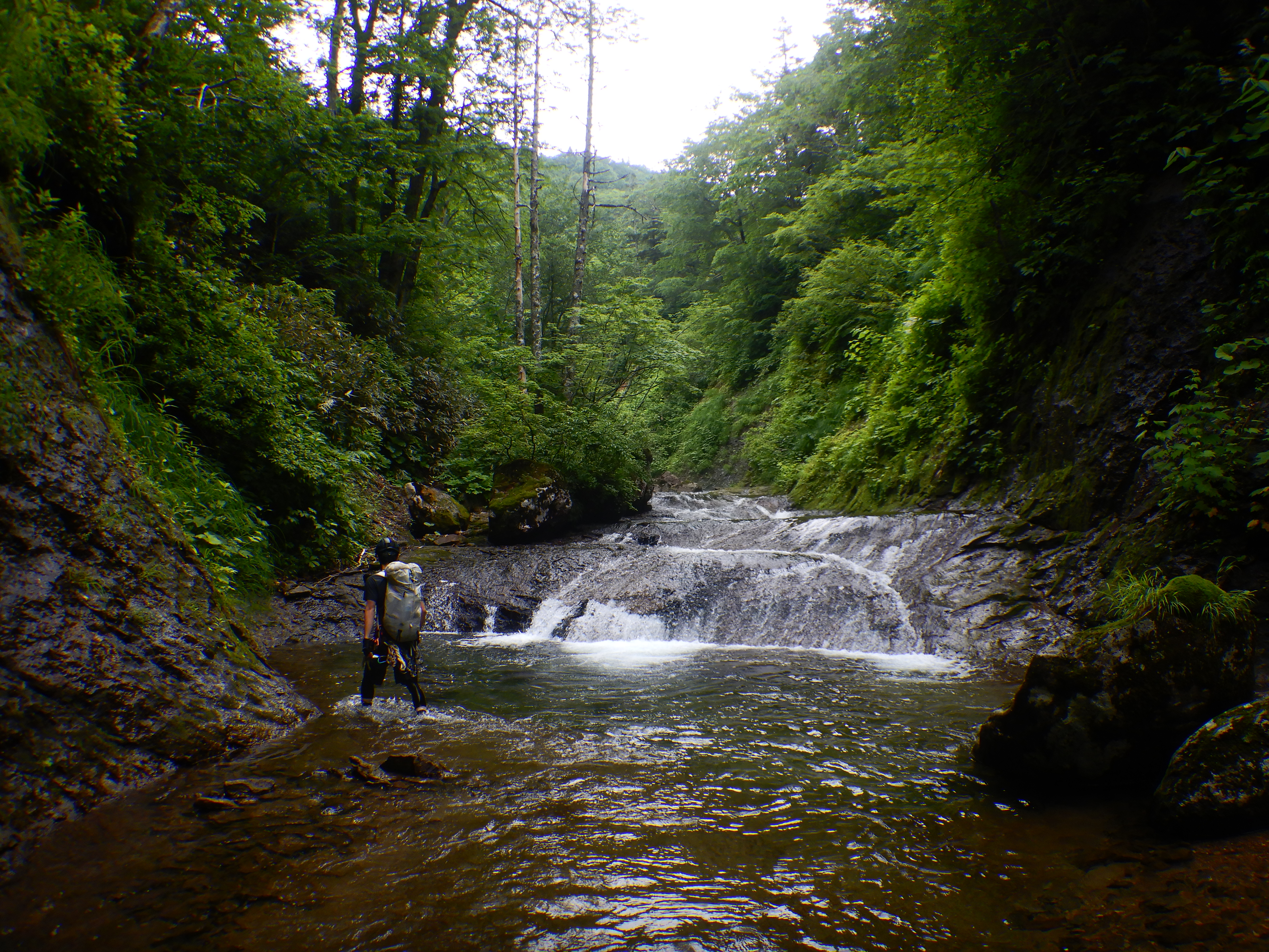 葛根田周遊2日目。今日は関東沢を降りて大深沢を遡行する。昨日ぐっすり寝て睡眠負債を解消したので体が軽い。