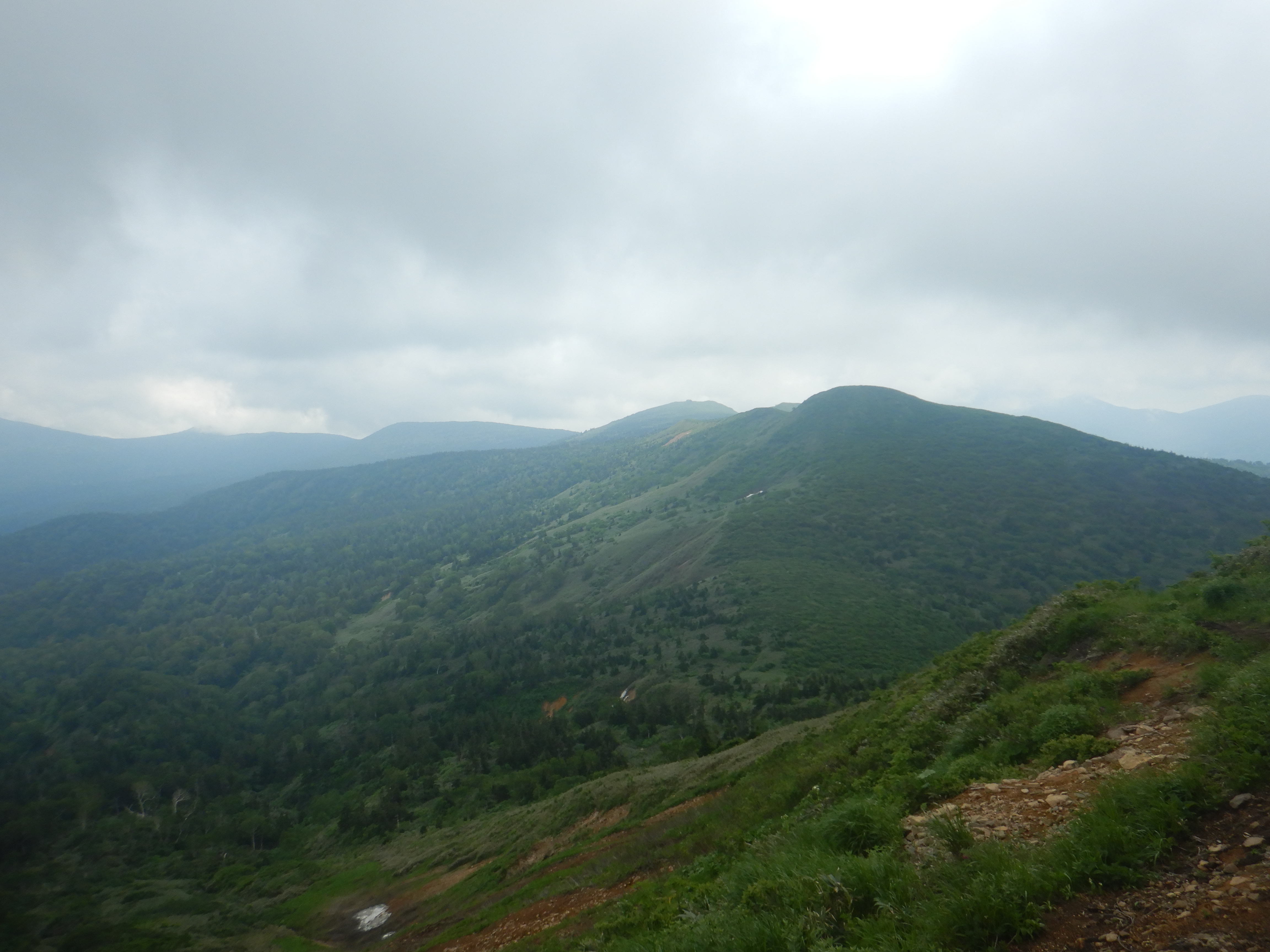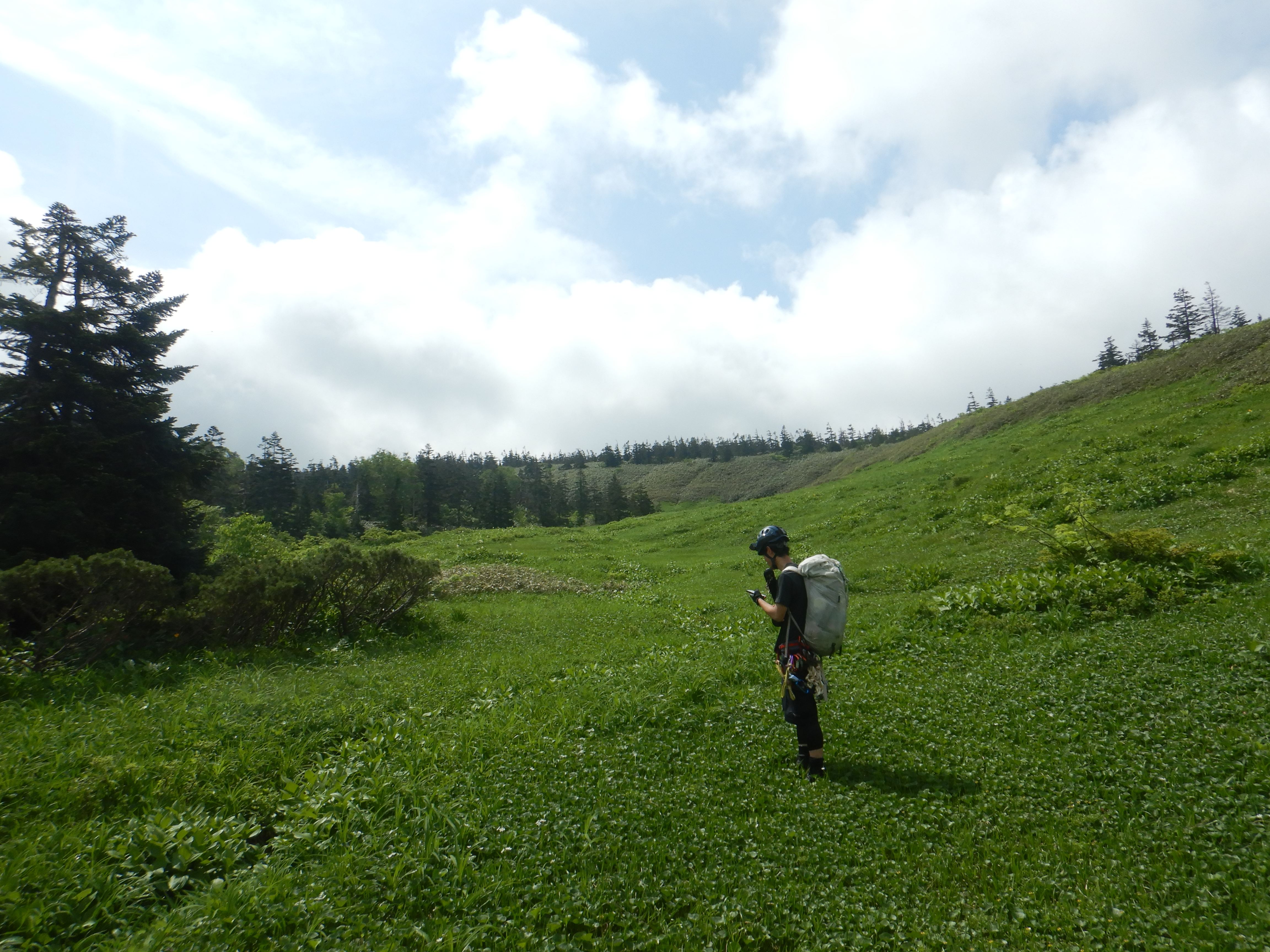 草原でまったり。ここから超高密度の藪を漕いで登山道に出た。