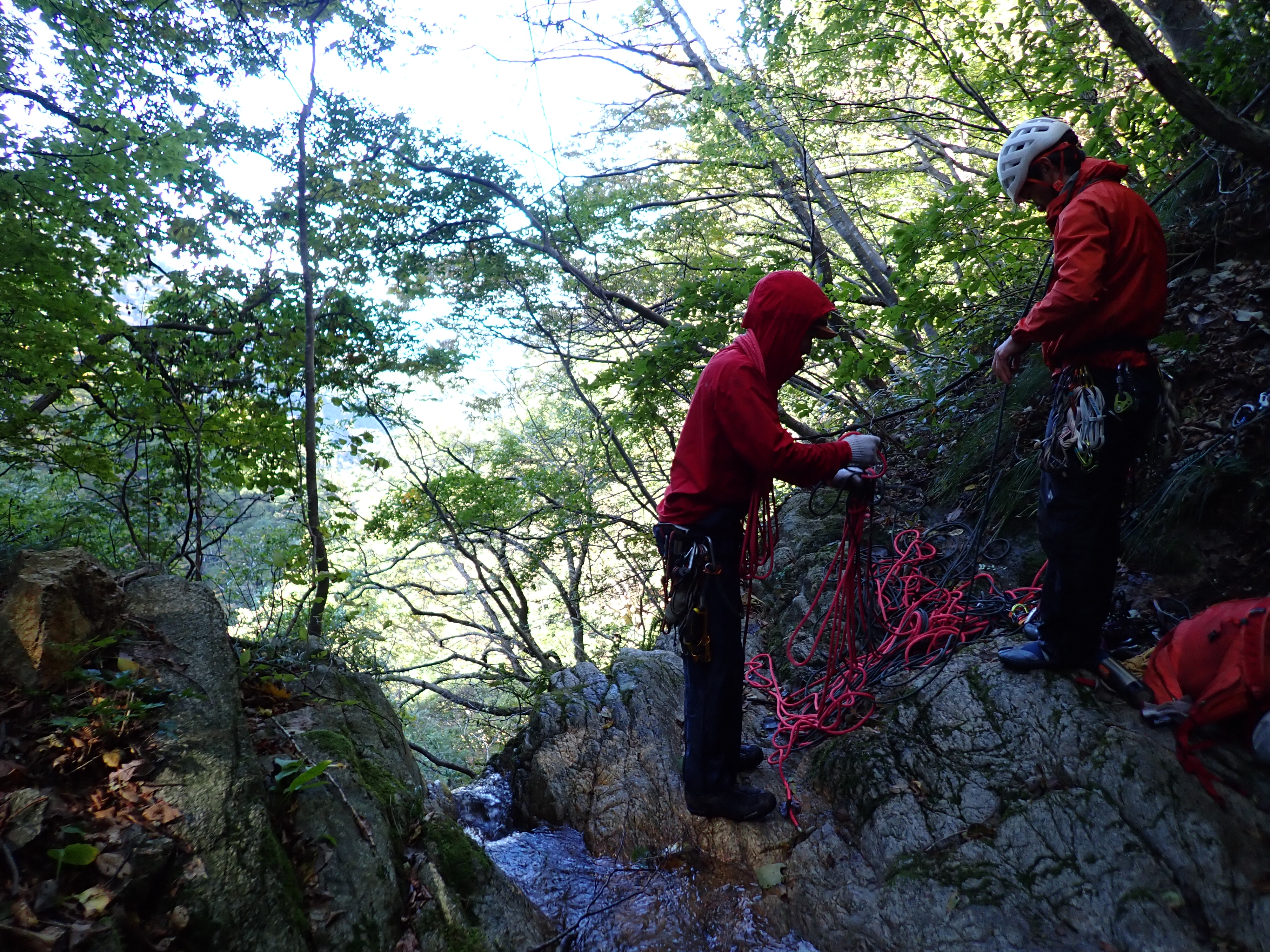 軽快にロープを伸ばして落ち口へ。これで本当に大滝終了。