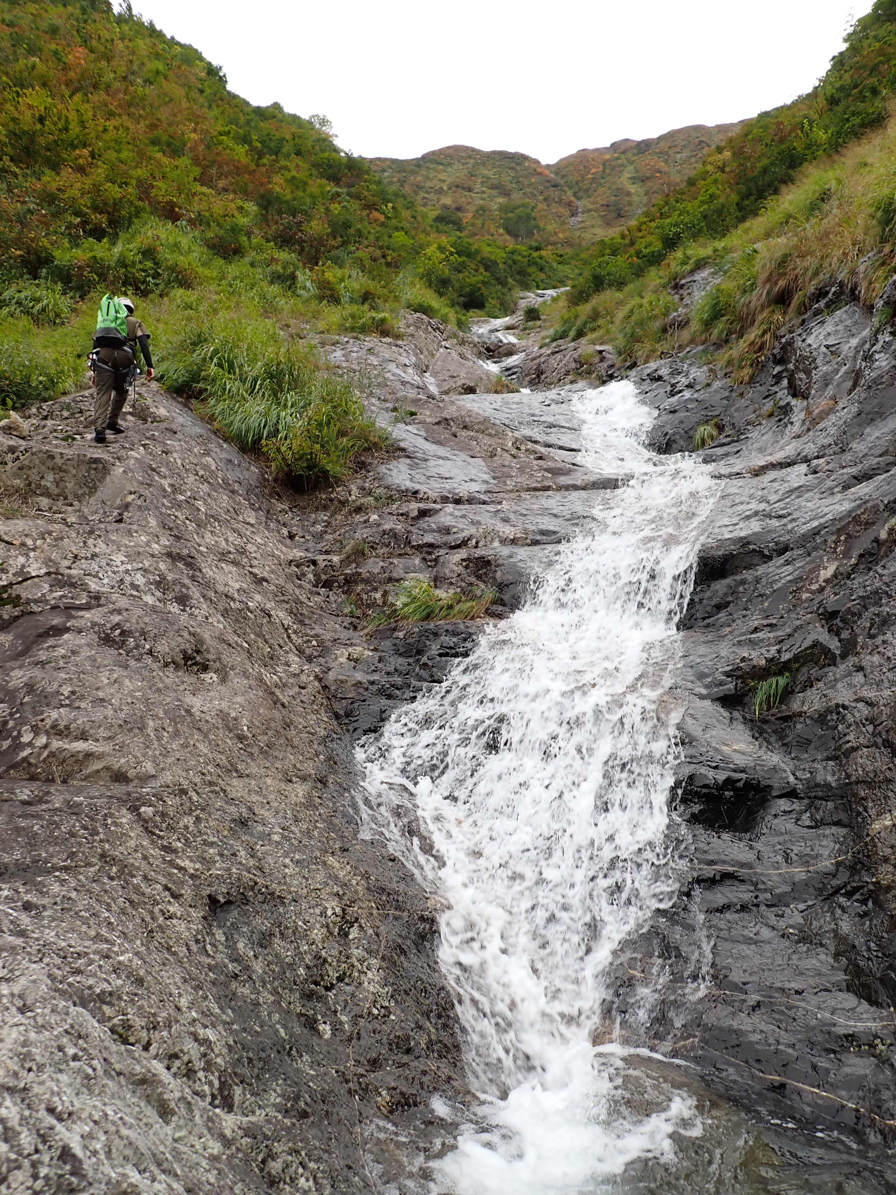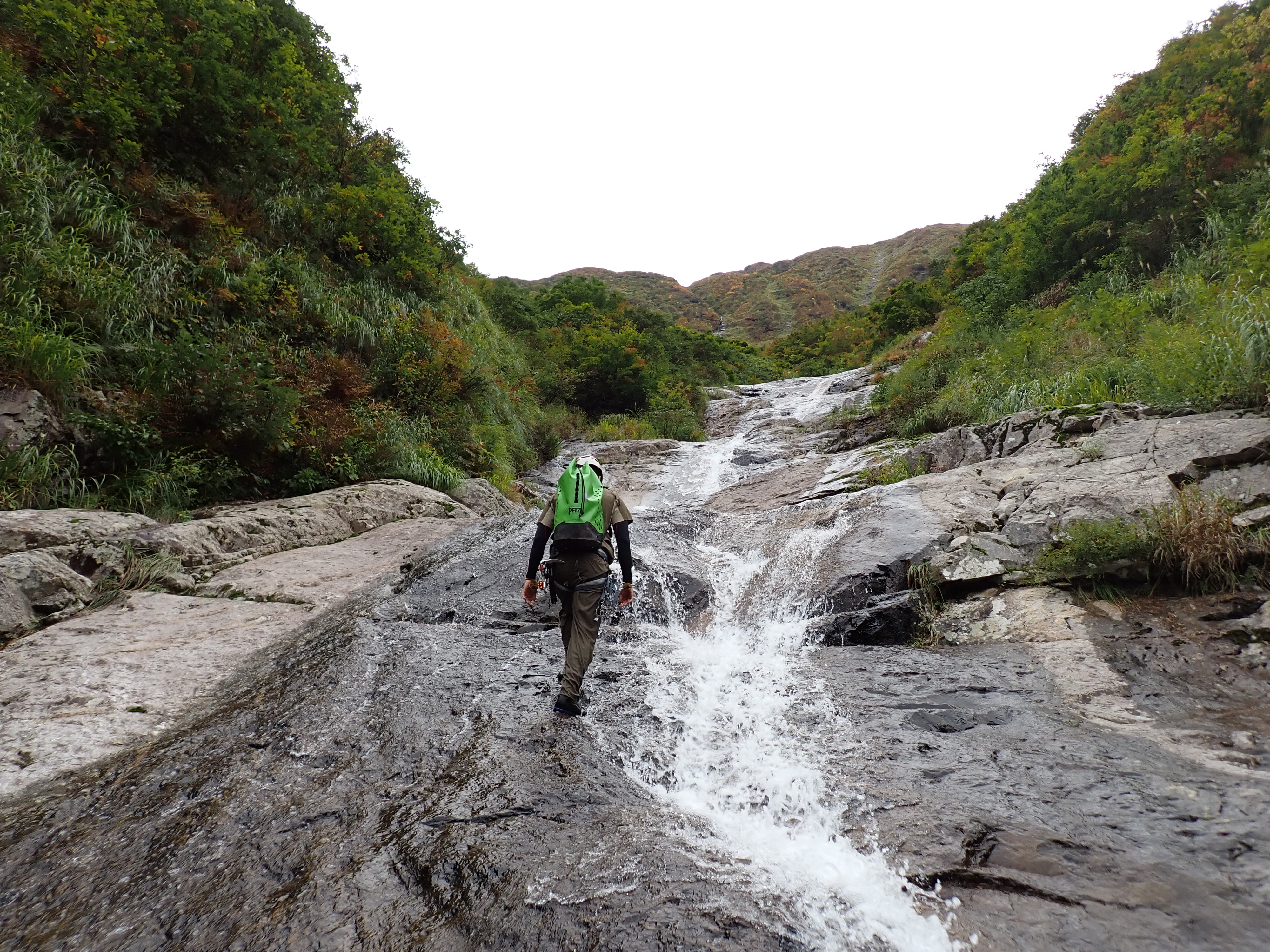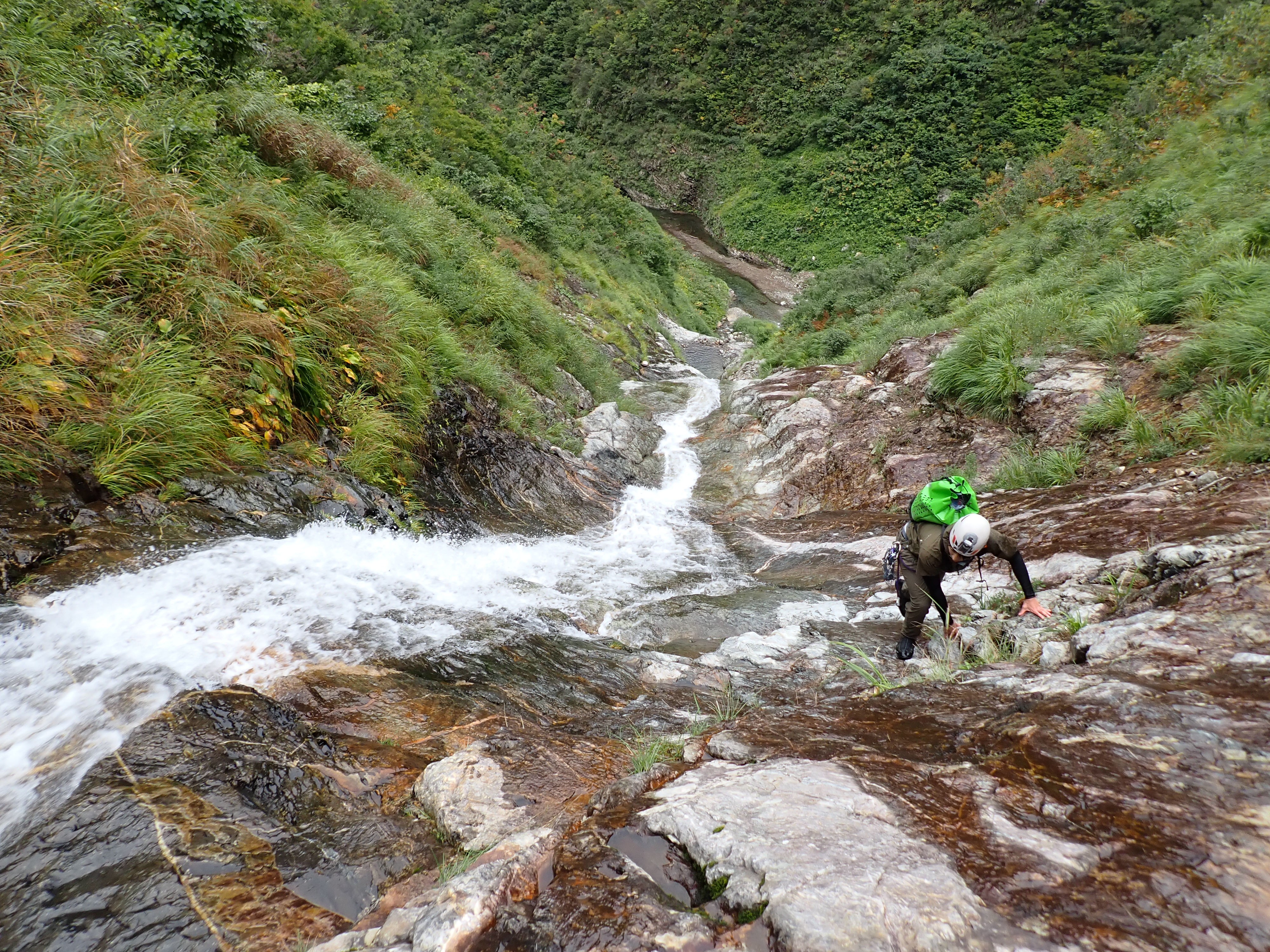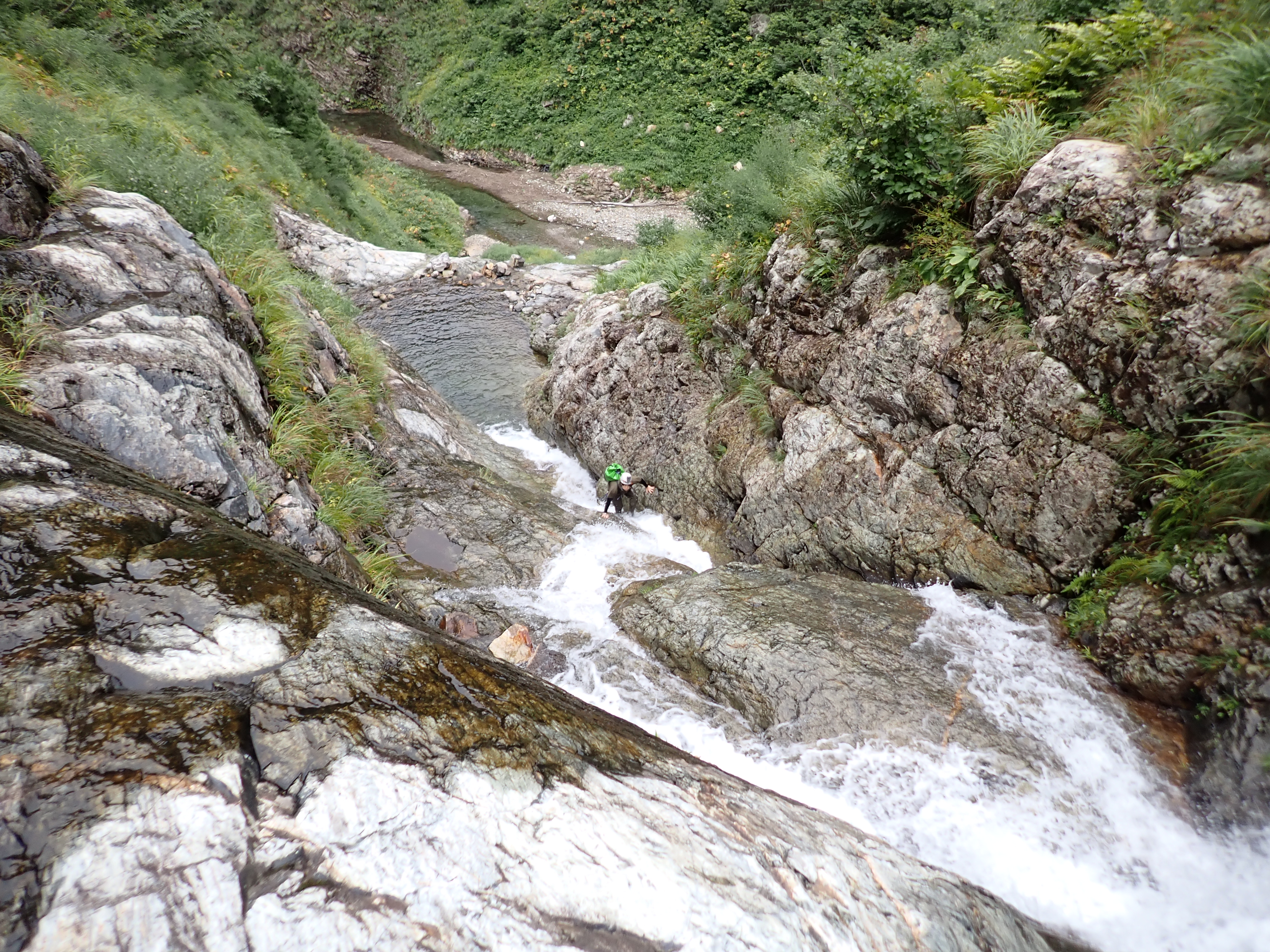 越後を象徴するスラブ滝がこれでもかと言うほど続く爽快な沢。中弛みが無くコンパクトにまとまっていて、終始楽しい遡行が出来る。沢下降が苦手な人は今回のルートを辿ると、それほど苦労せず下山できる。春や秋、大雨の後におすすめ。
