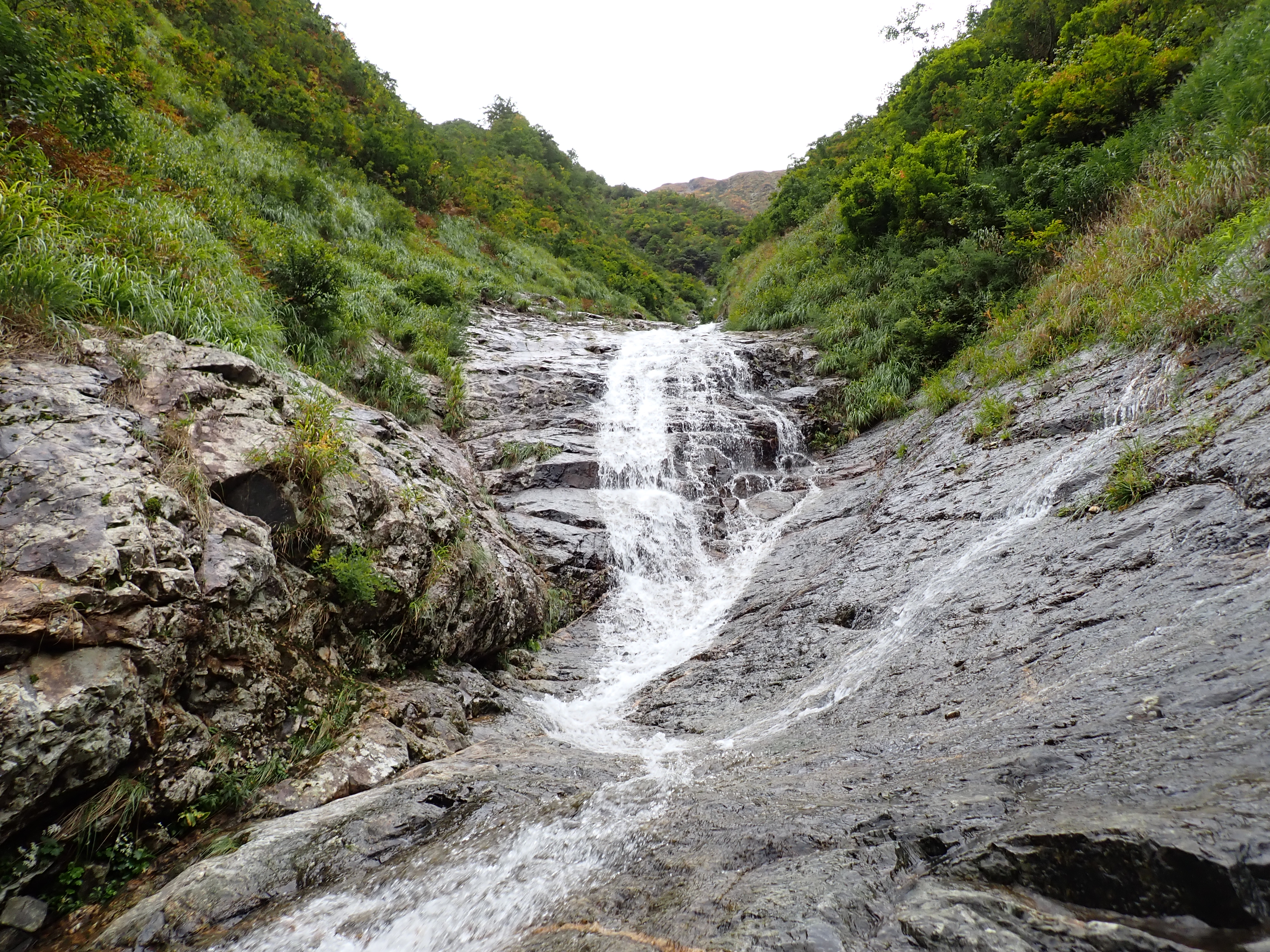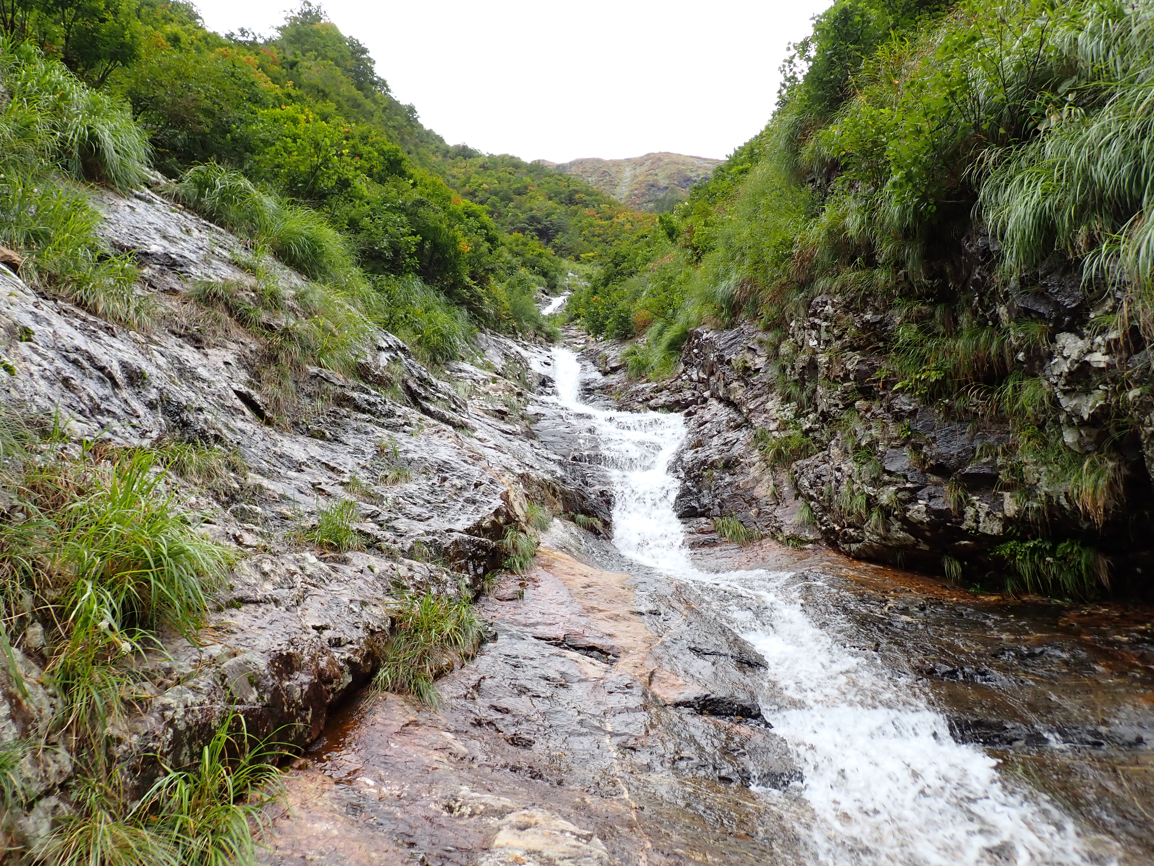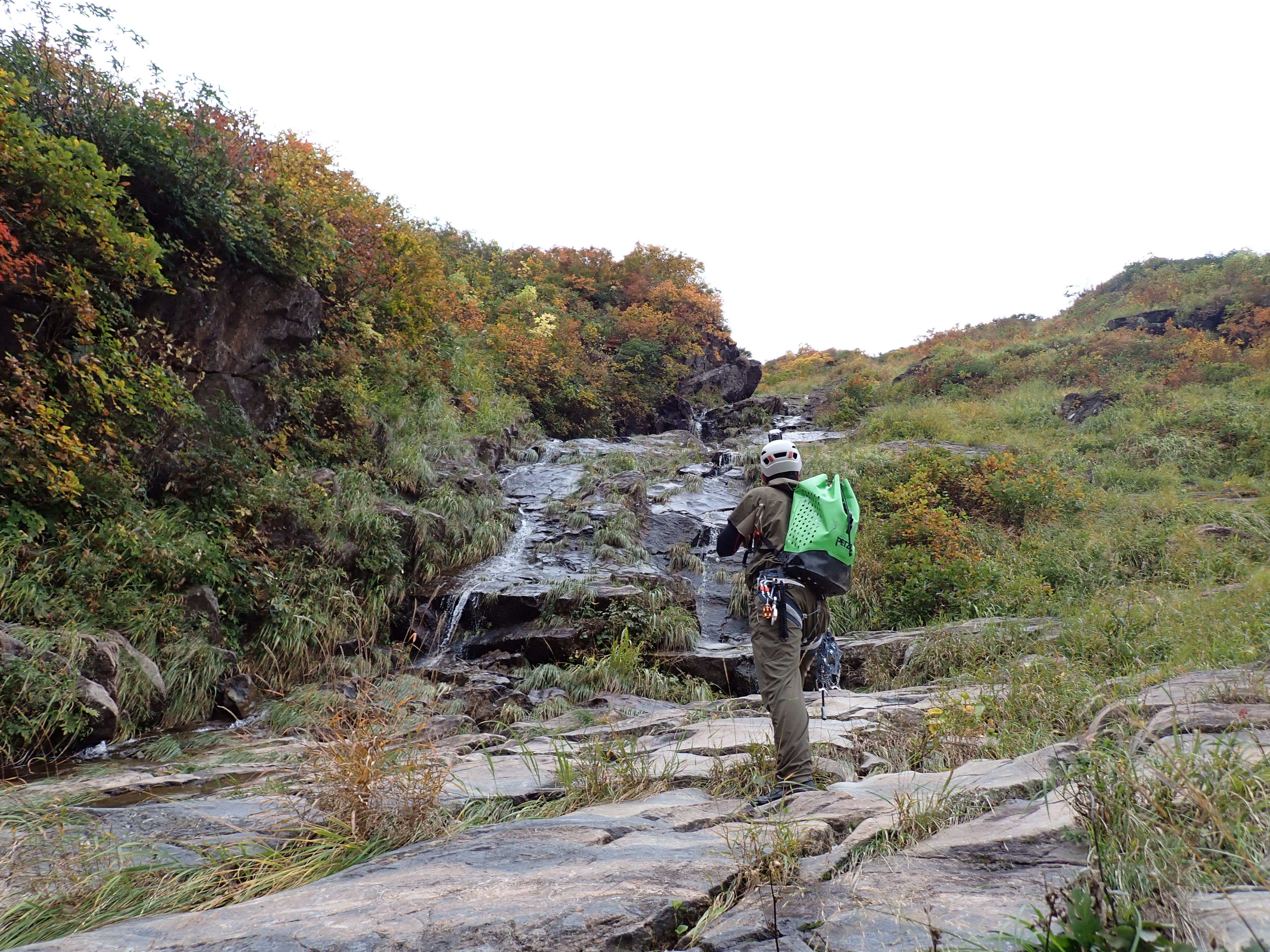 ゴーロを登って行くと遥か先に傾斜の強い連瀑が見える。あれ登るの!?って感じだったが、近づいてみると何とかなりそう。