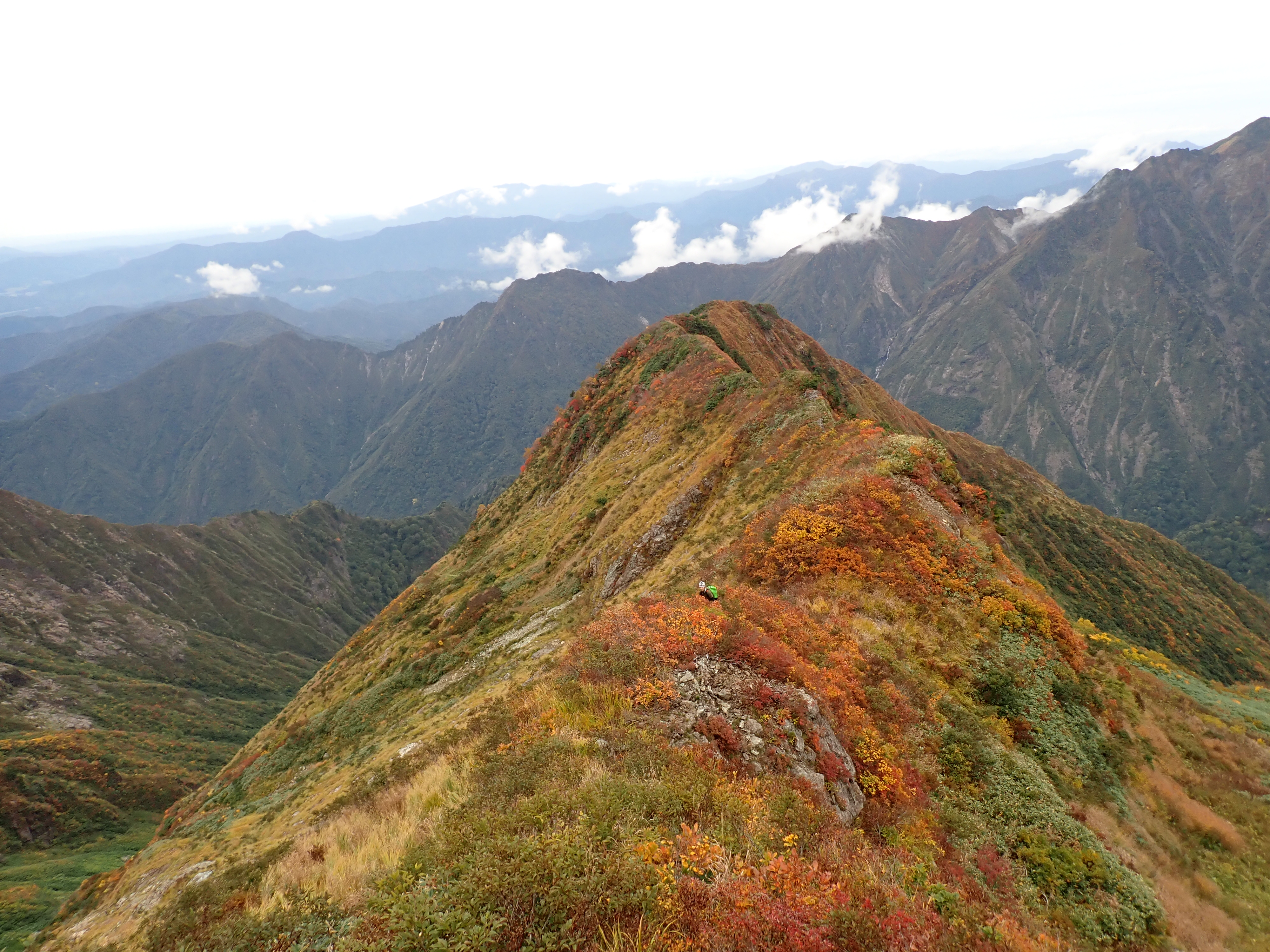 紅葉最盛期の八海山を眺めながら優雅な尾根歩き。