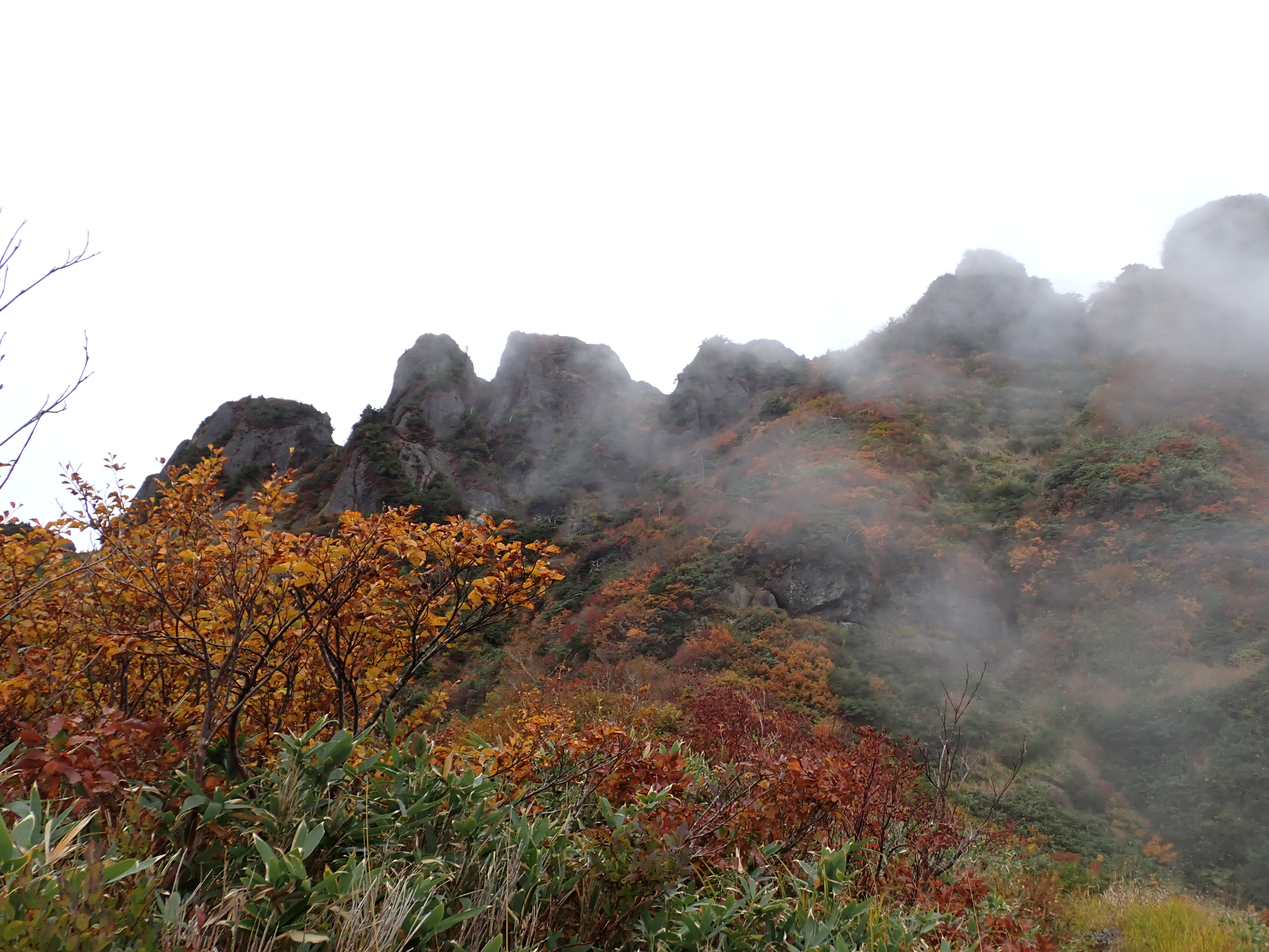 ガスがかかる幻想的な八ツ峰を望む。下山は新開道を利用。最初はヤバイ鎖とハシゴにドン引きするが、そこさえ越えてしまえば快適そのもの。爆速で下りて中澤ハウスのヤギに挨拶して帰還。
