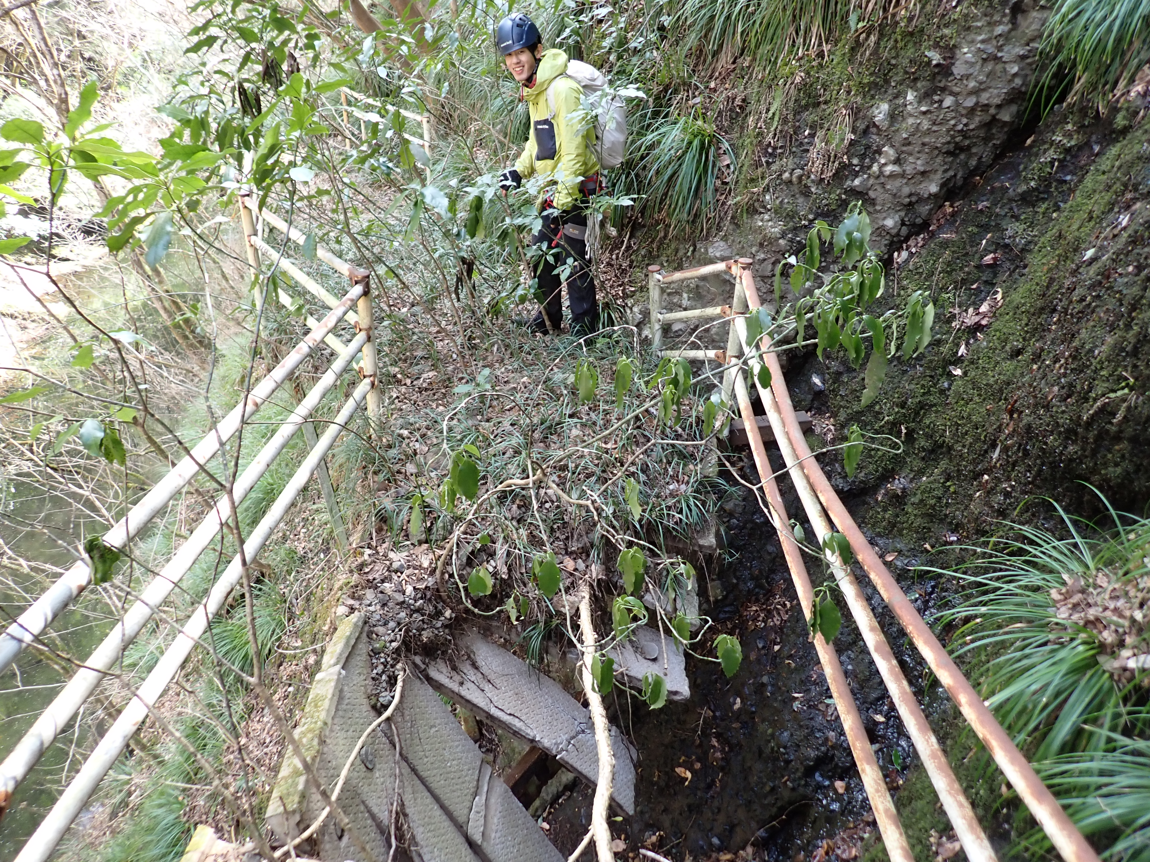 仕方なく危険な右岸歩道へと上陸。いきなりこの崩壊っぷり。