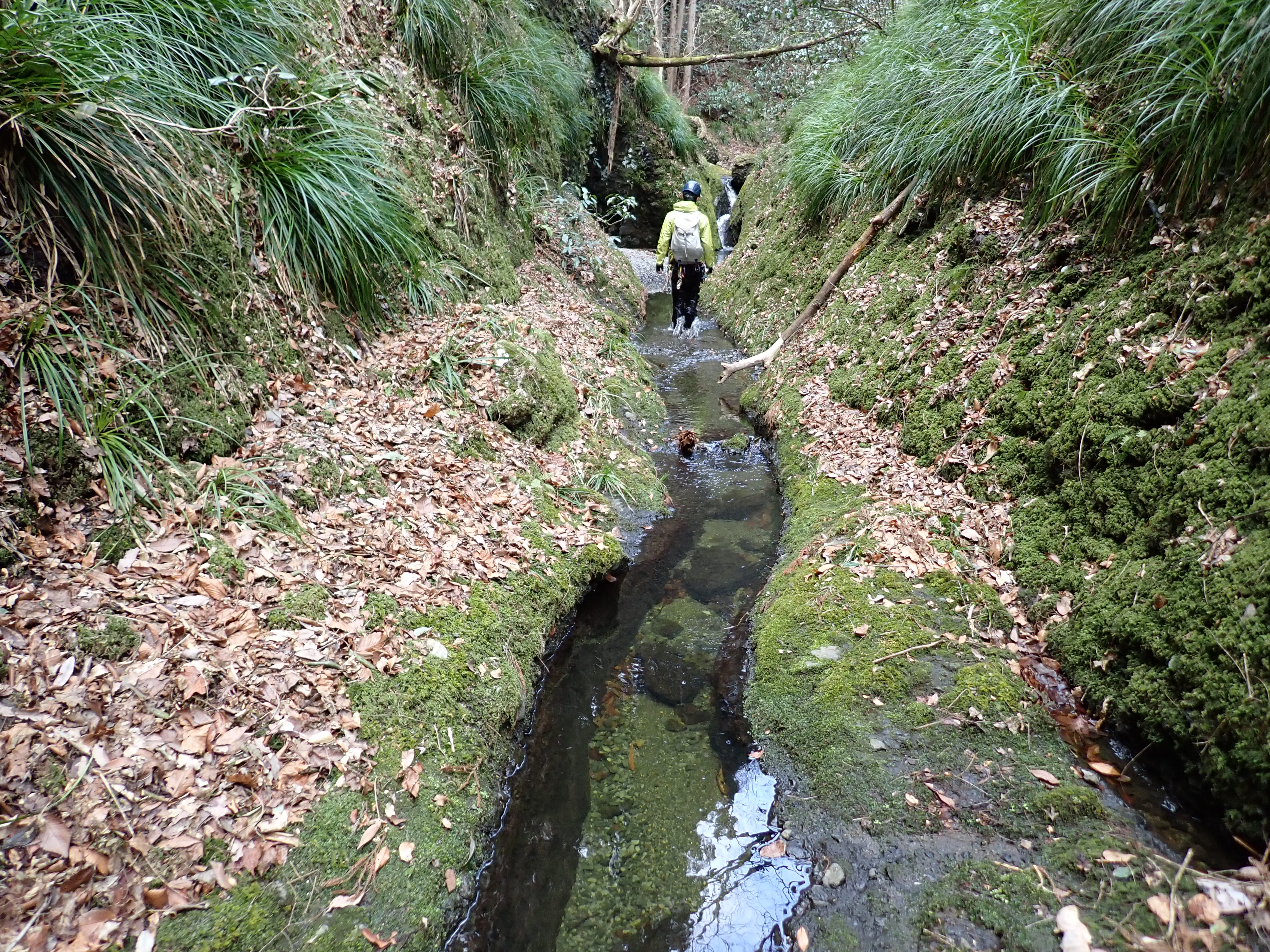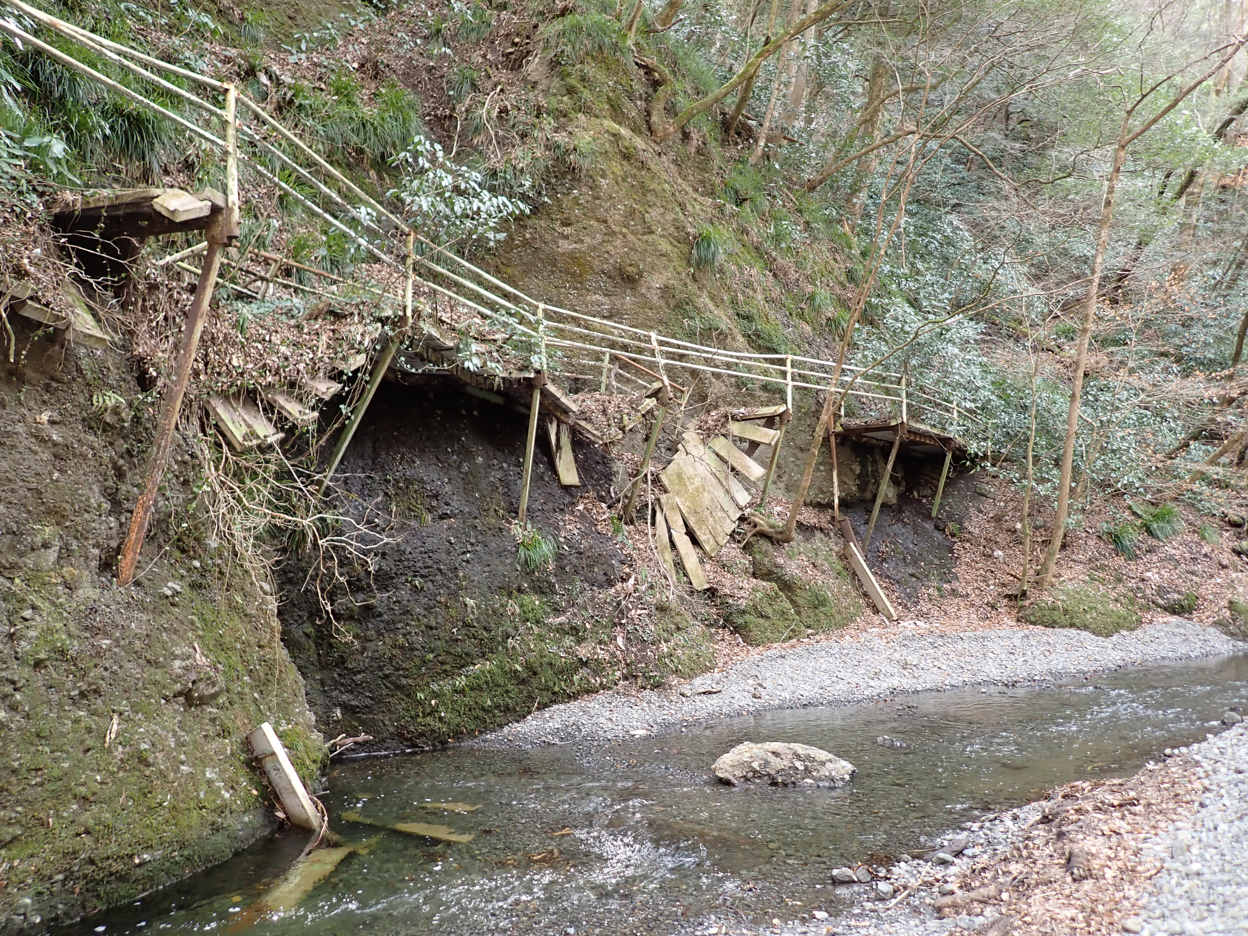 歩道は自然へと還りつつある。根本から歩道が崩れそうで怖い。この先、出合まであと50mくらいの所で完全に歩道が無くなっていて猿渡ヶ沢は諦める事に。