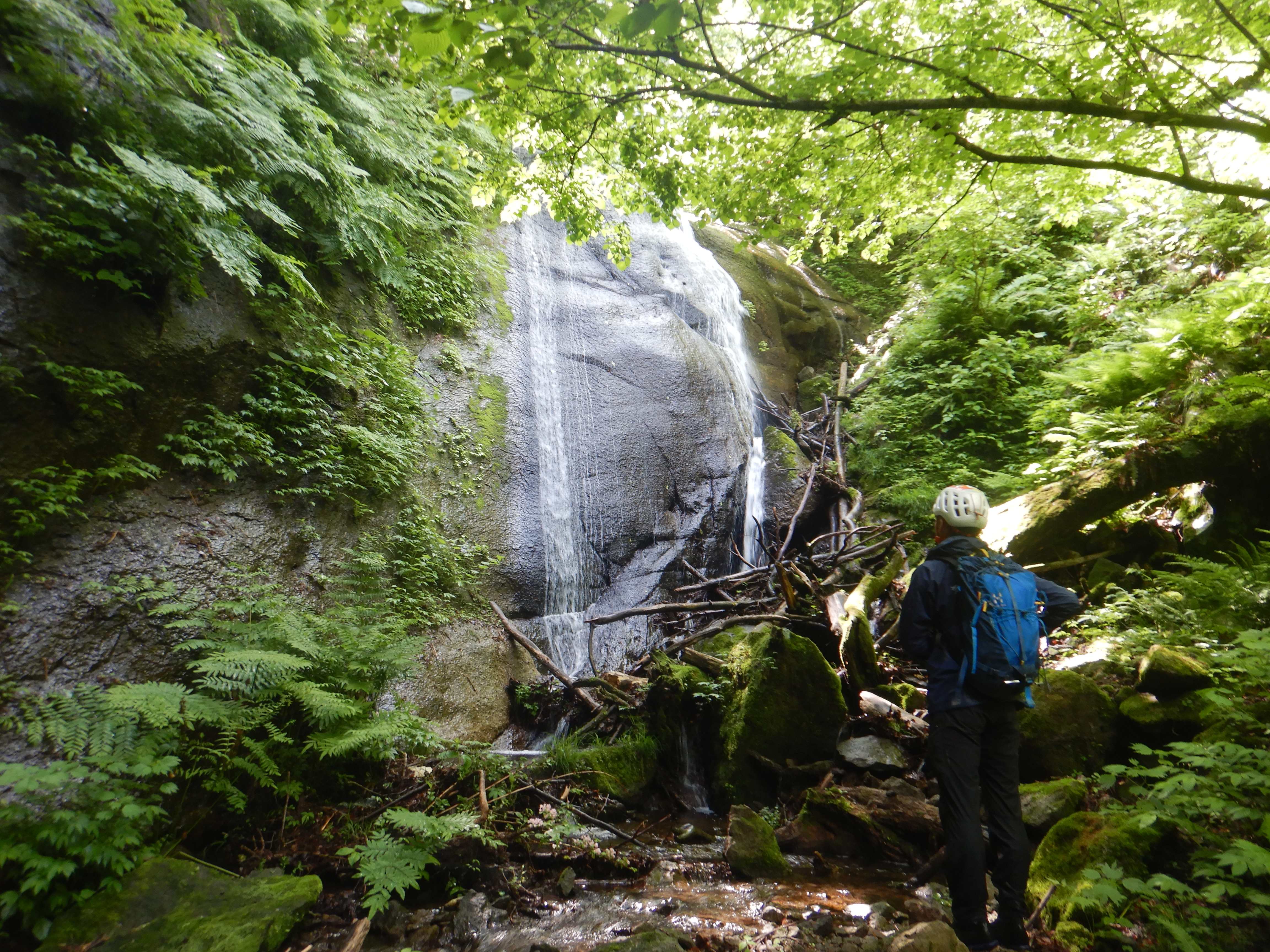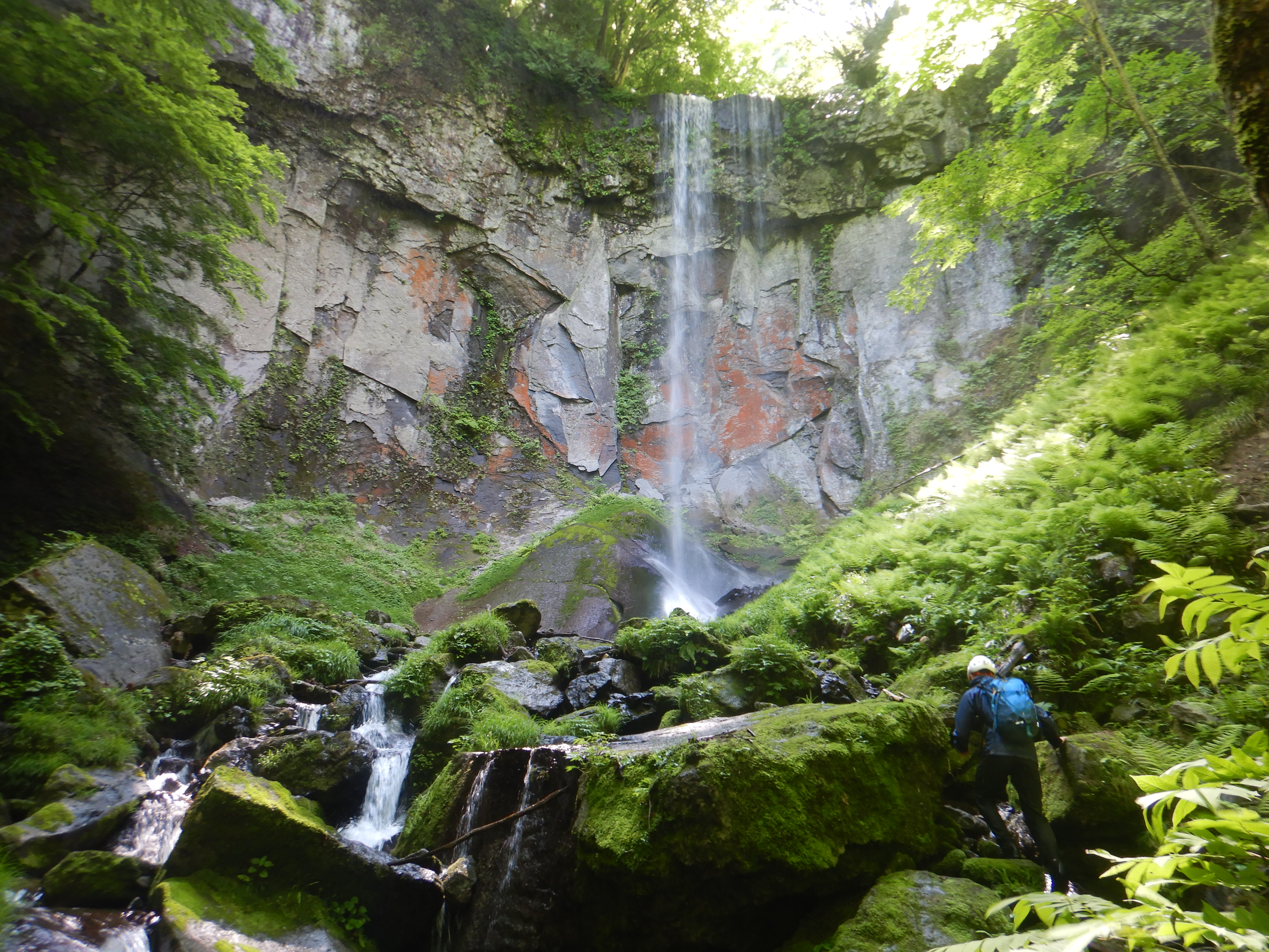 沢上谷の楽しみ方で定番とされているのは支流の滝巡り。我々もそれに倣うことにする。まずは五郎七郎滝を目指す。