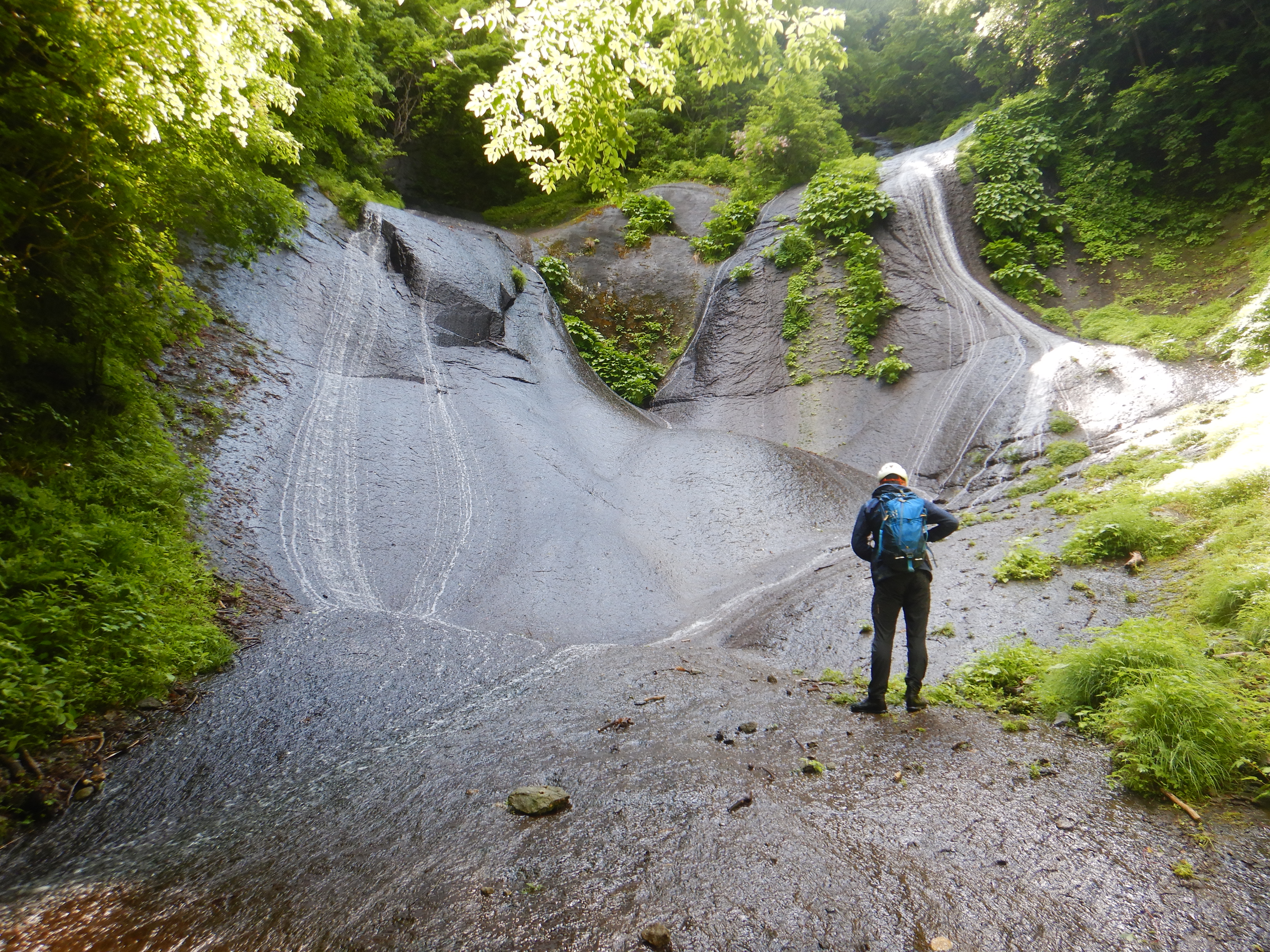 絵画から切り取ったような美しいスラブ滝が現れる。これはすごい。しばし休憩して本流に戻る。