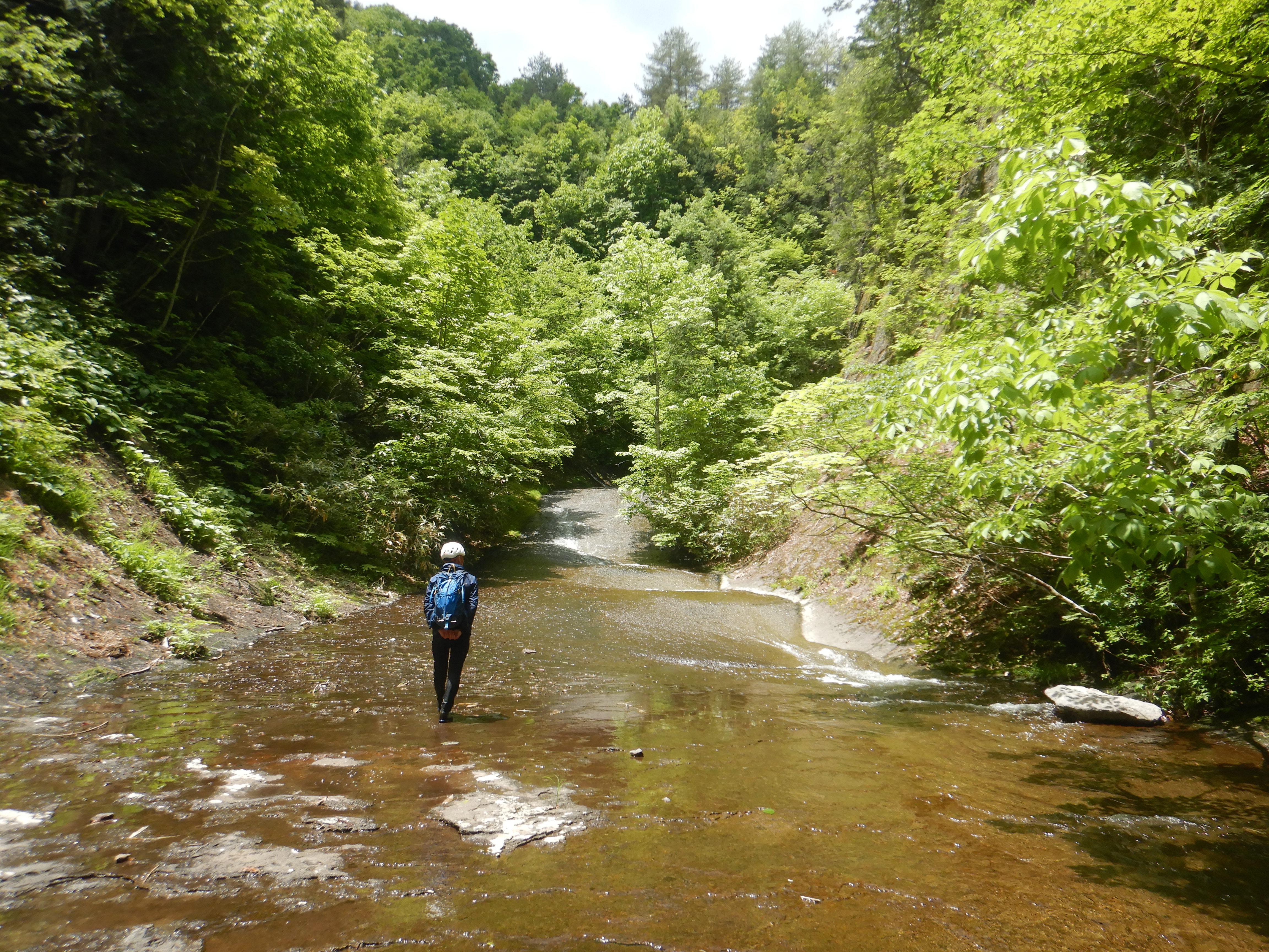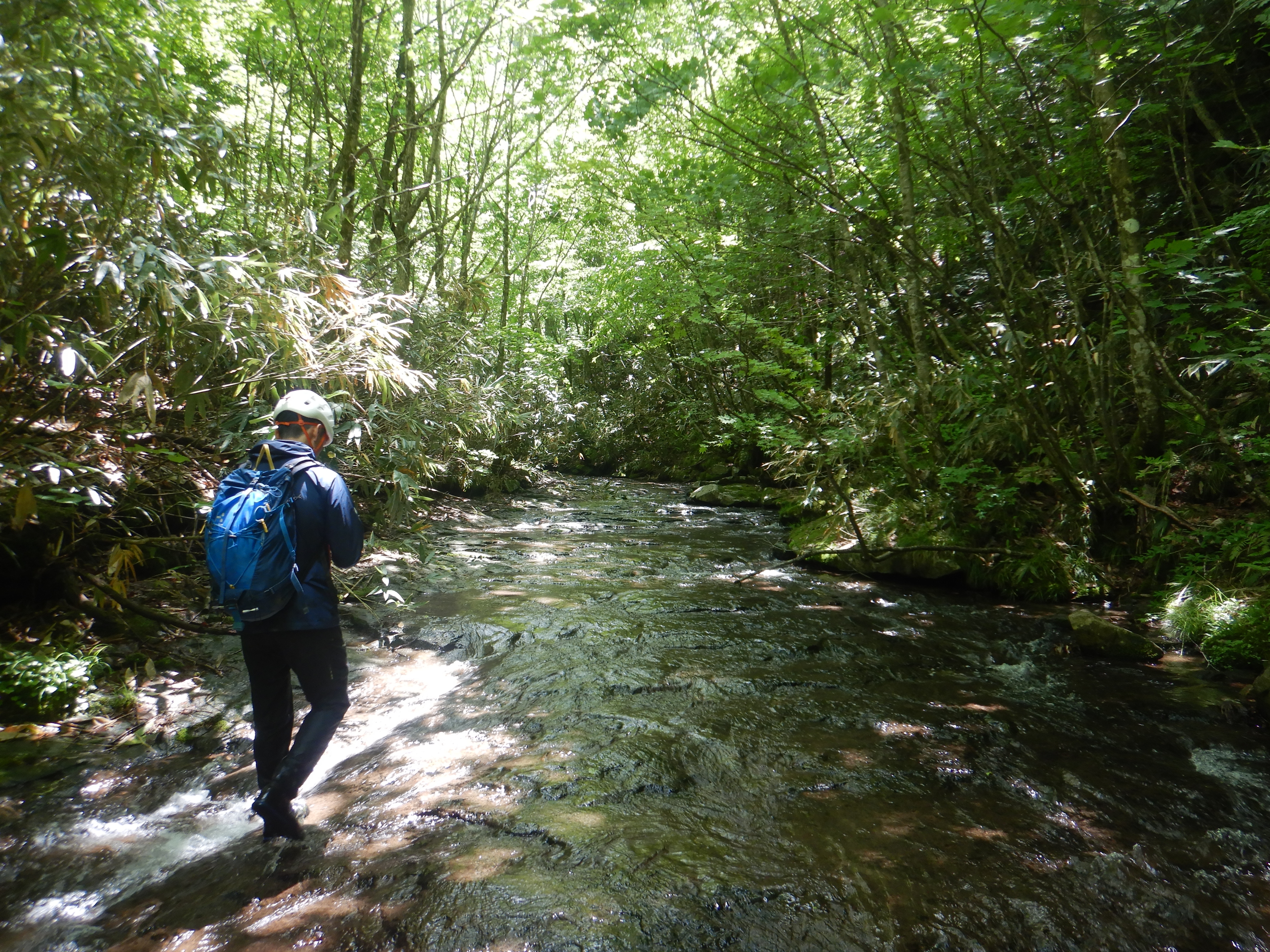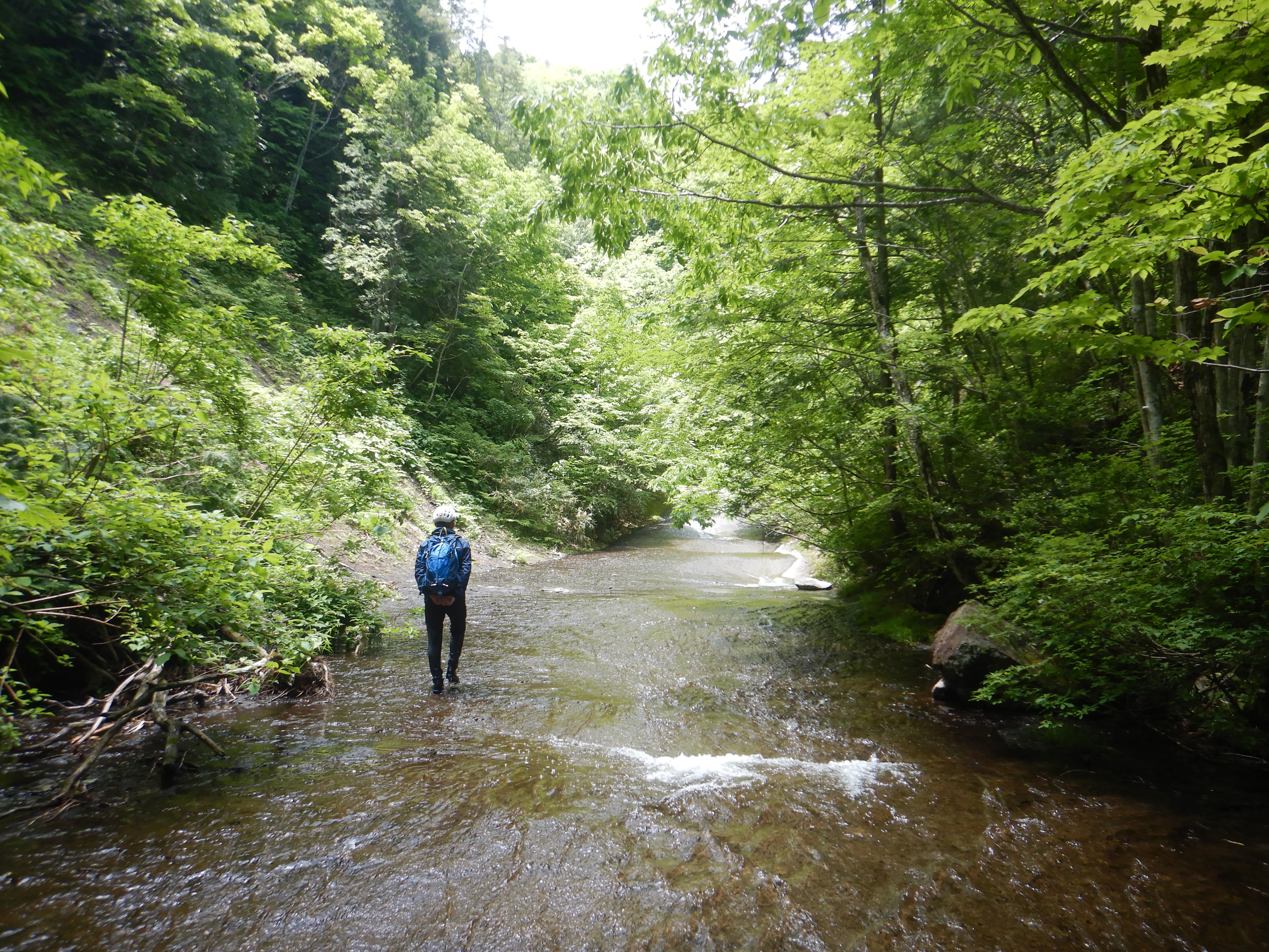 沢上谷の遡行を再開。前日の雨でやや濁り気味?