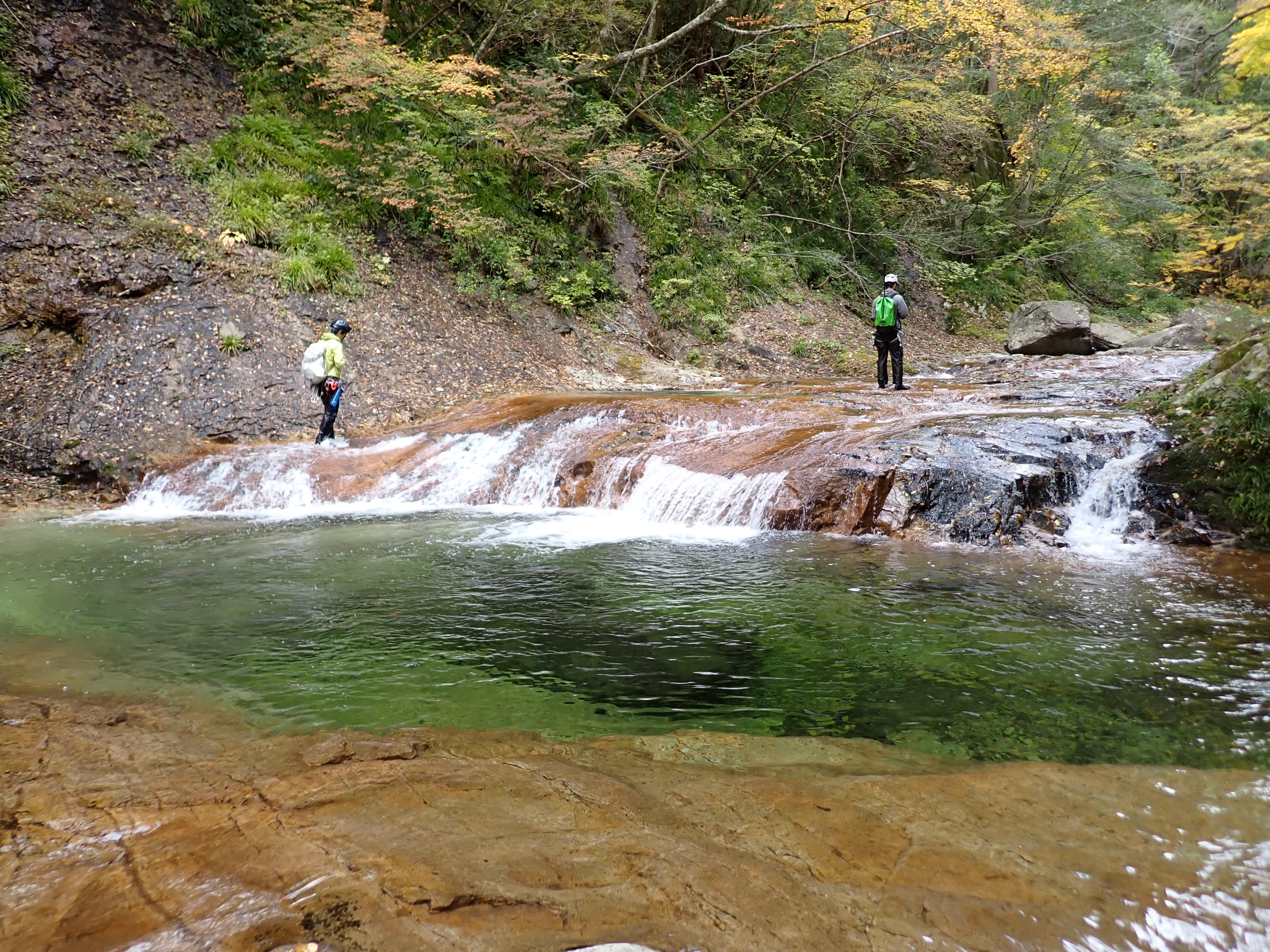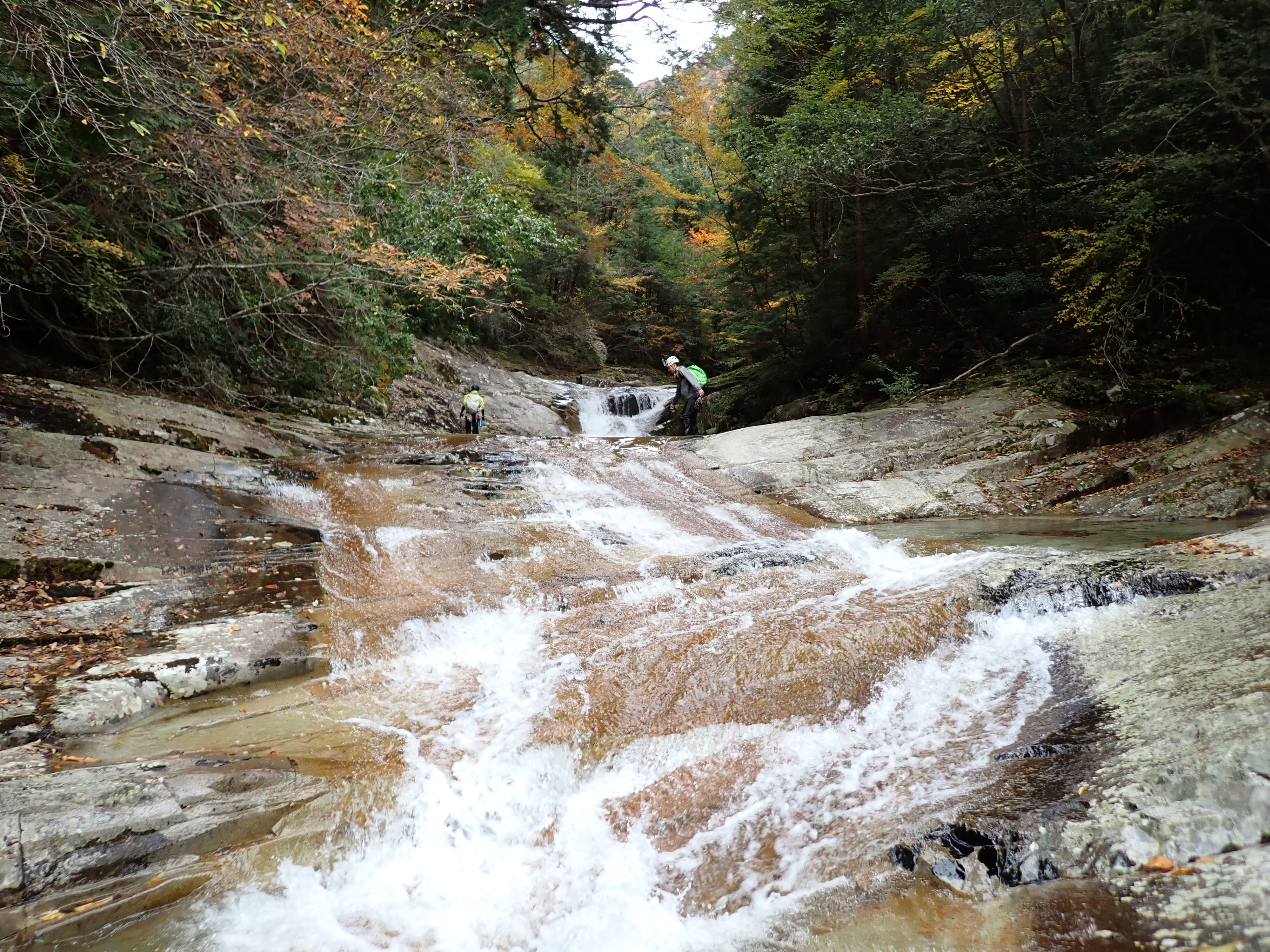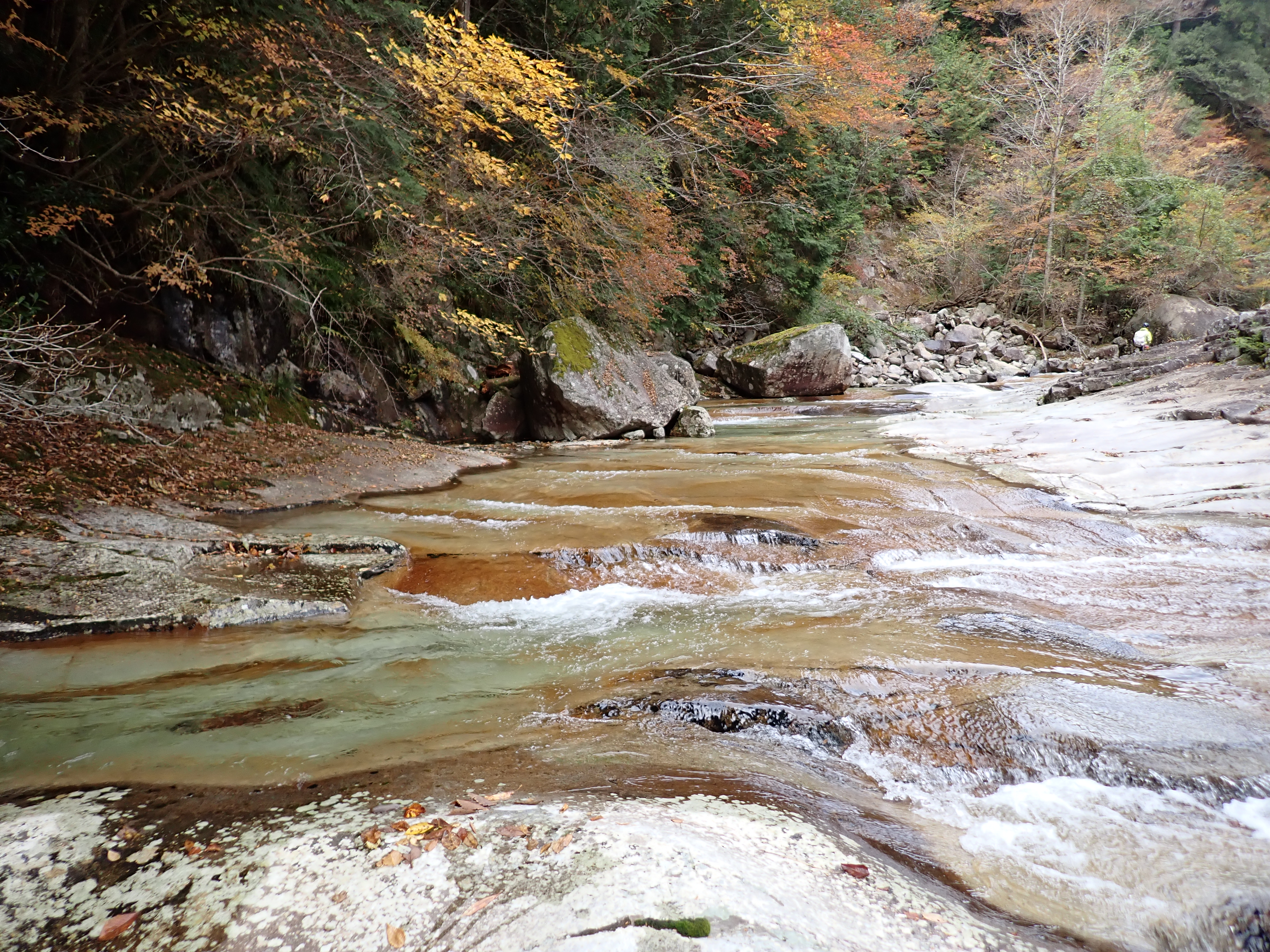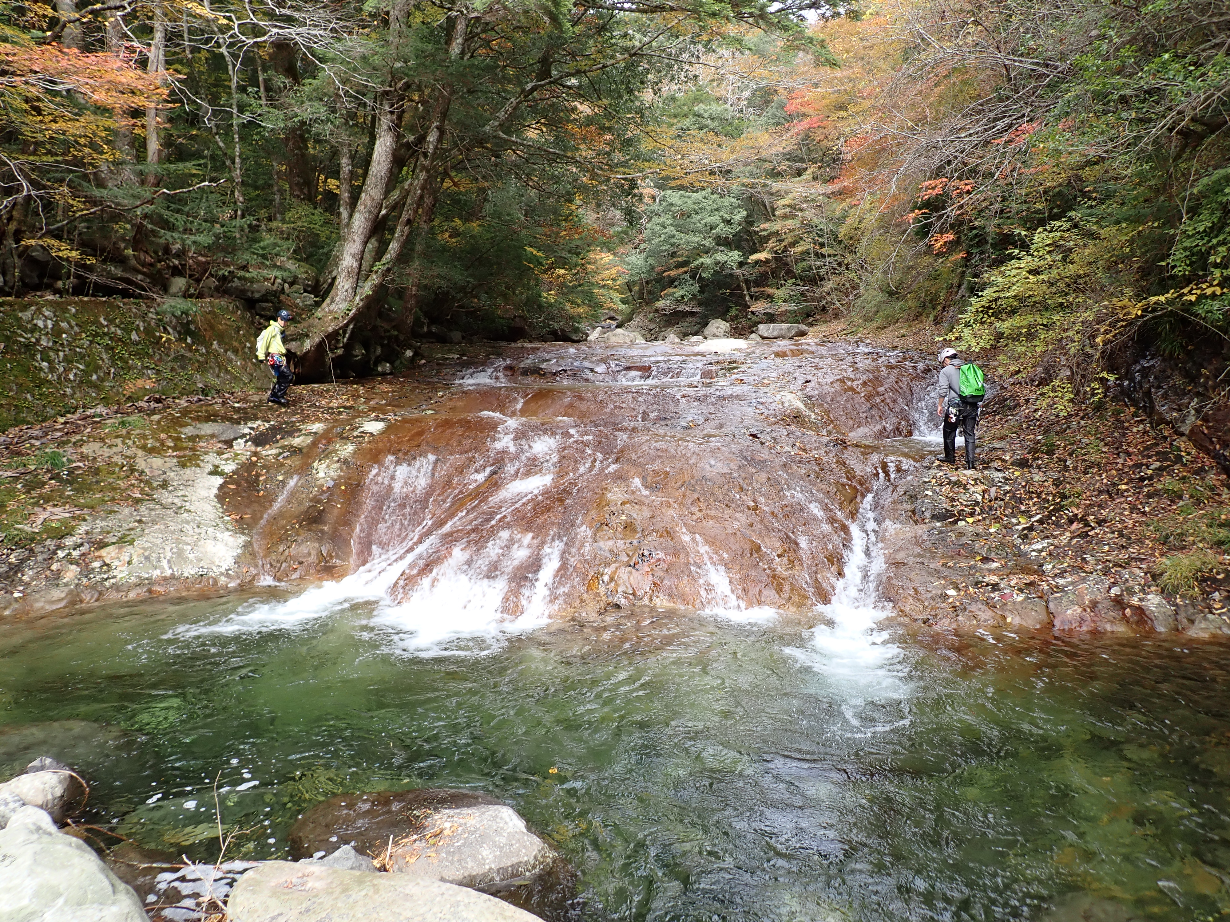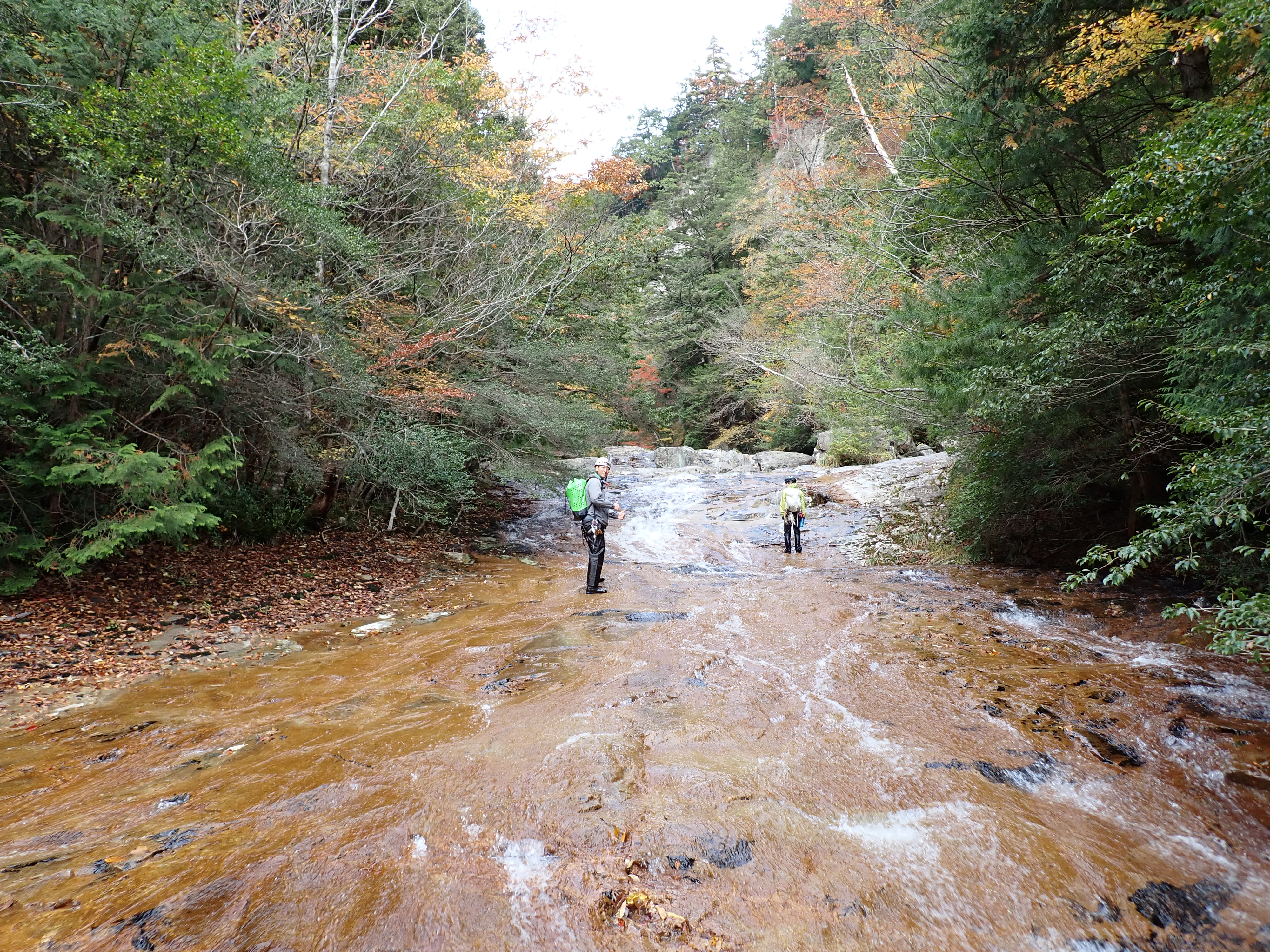 右岸から入る支流(恐らく槇谷?)を越えると綺麗な茶色のナメが出てくる。