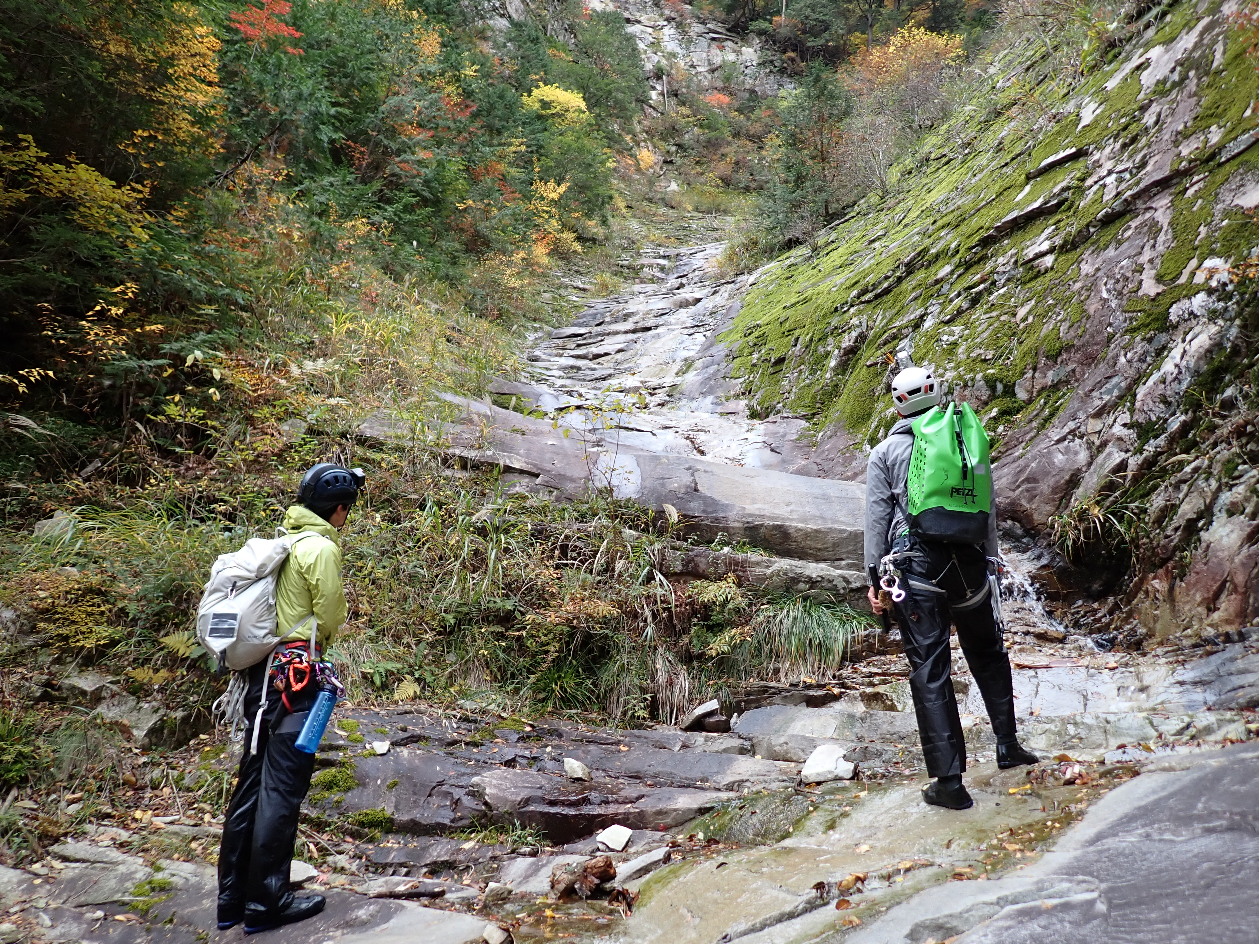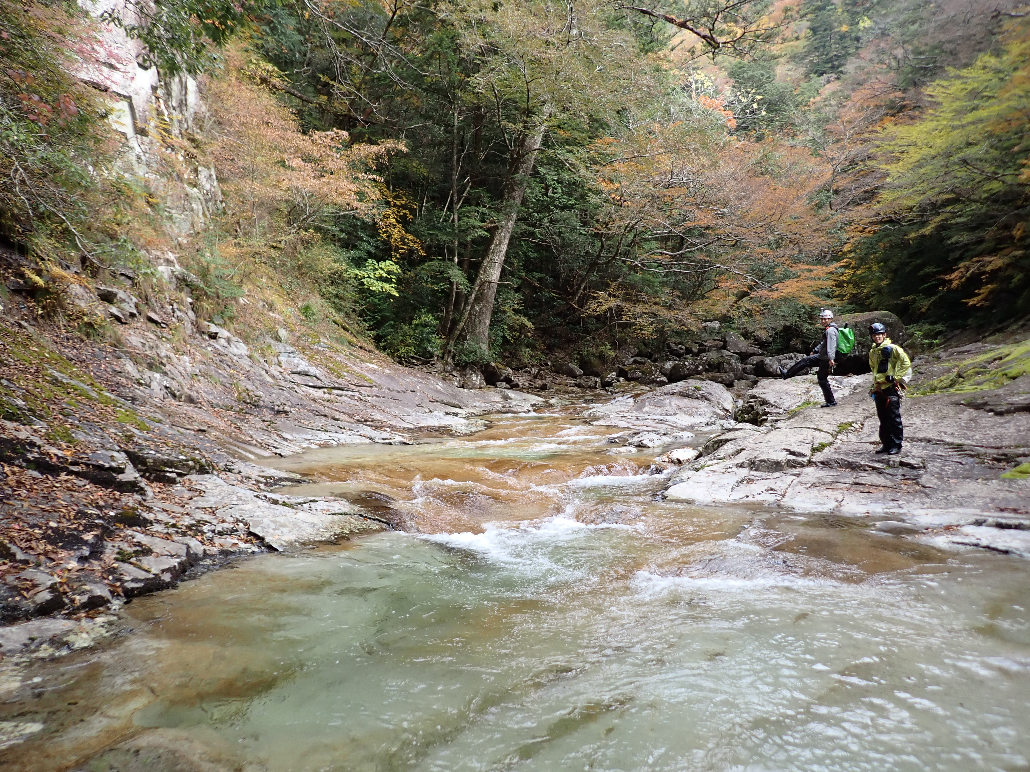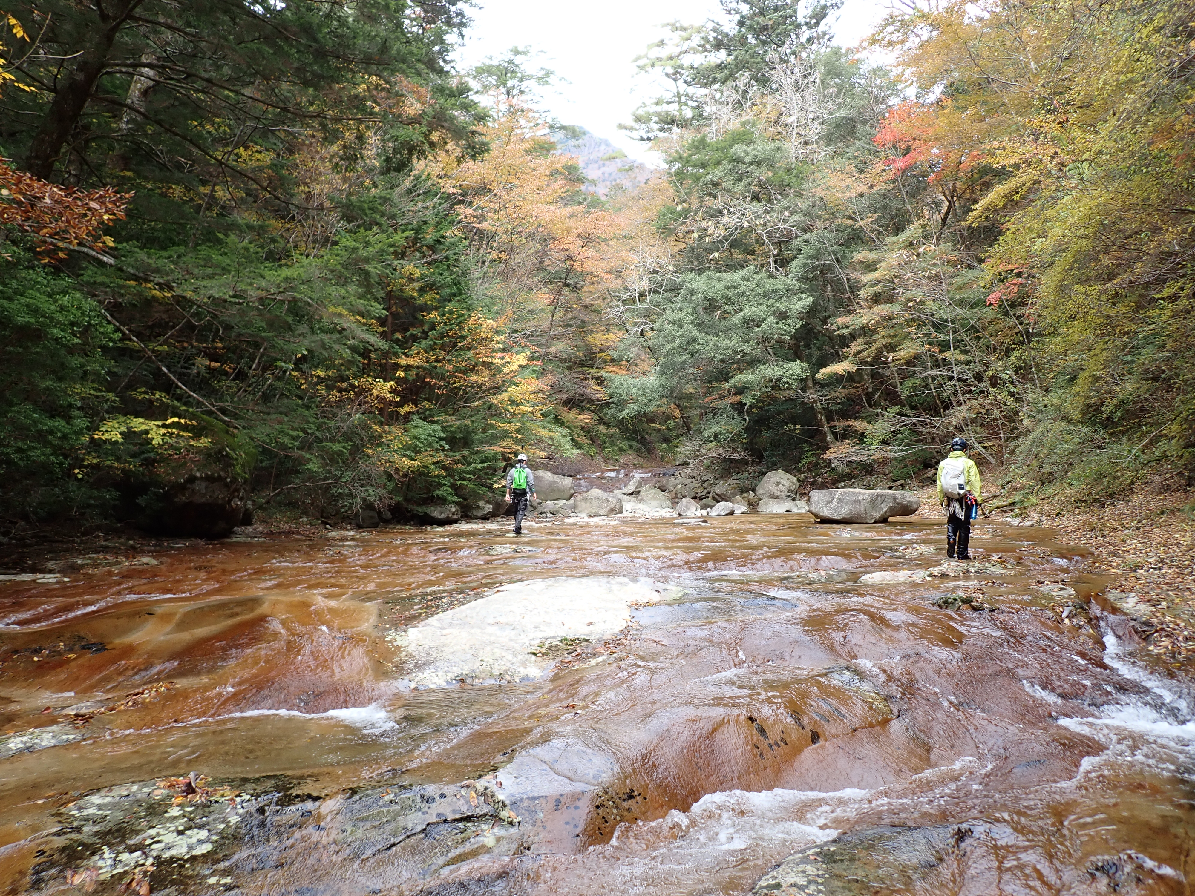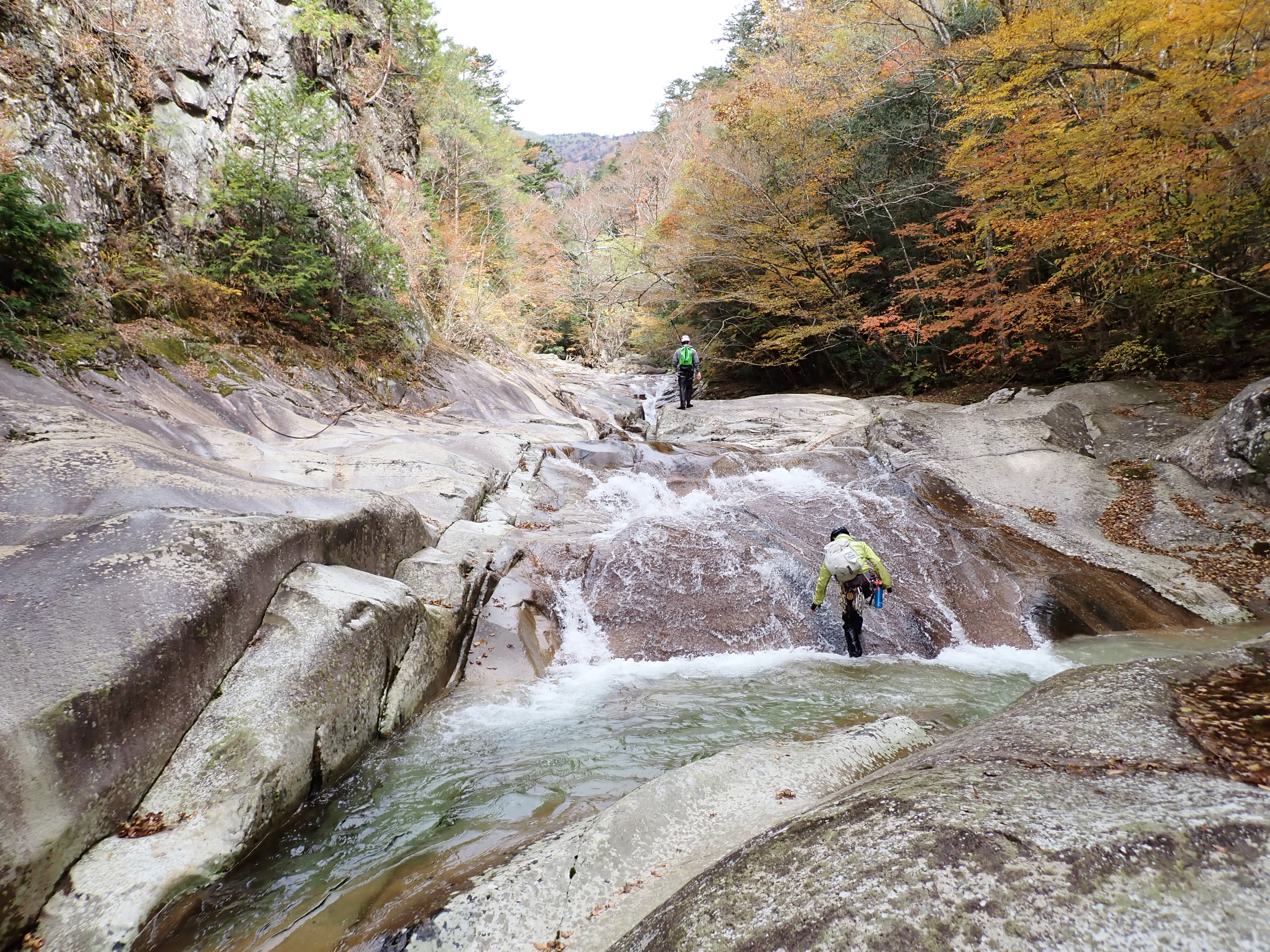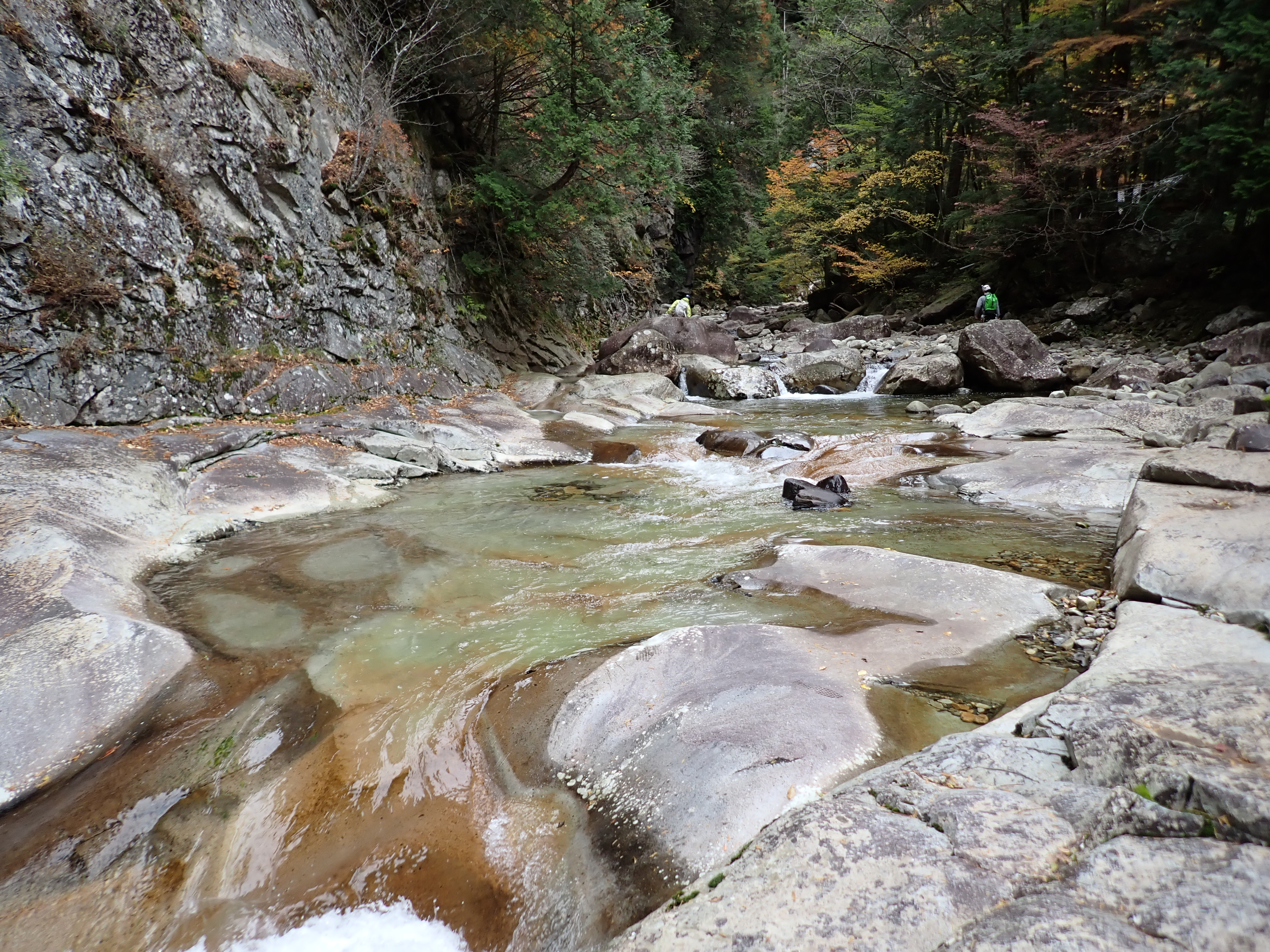 右岸から入る支流(恐らく槇谷?)を越えると綺麗な茶色のナメが出てくる。