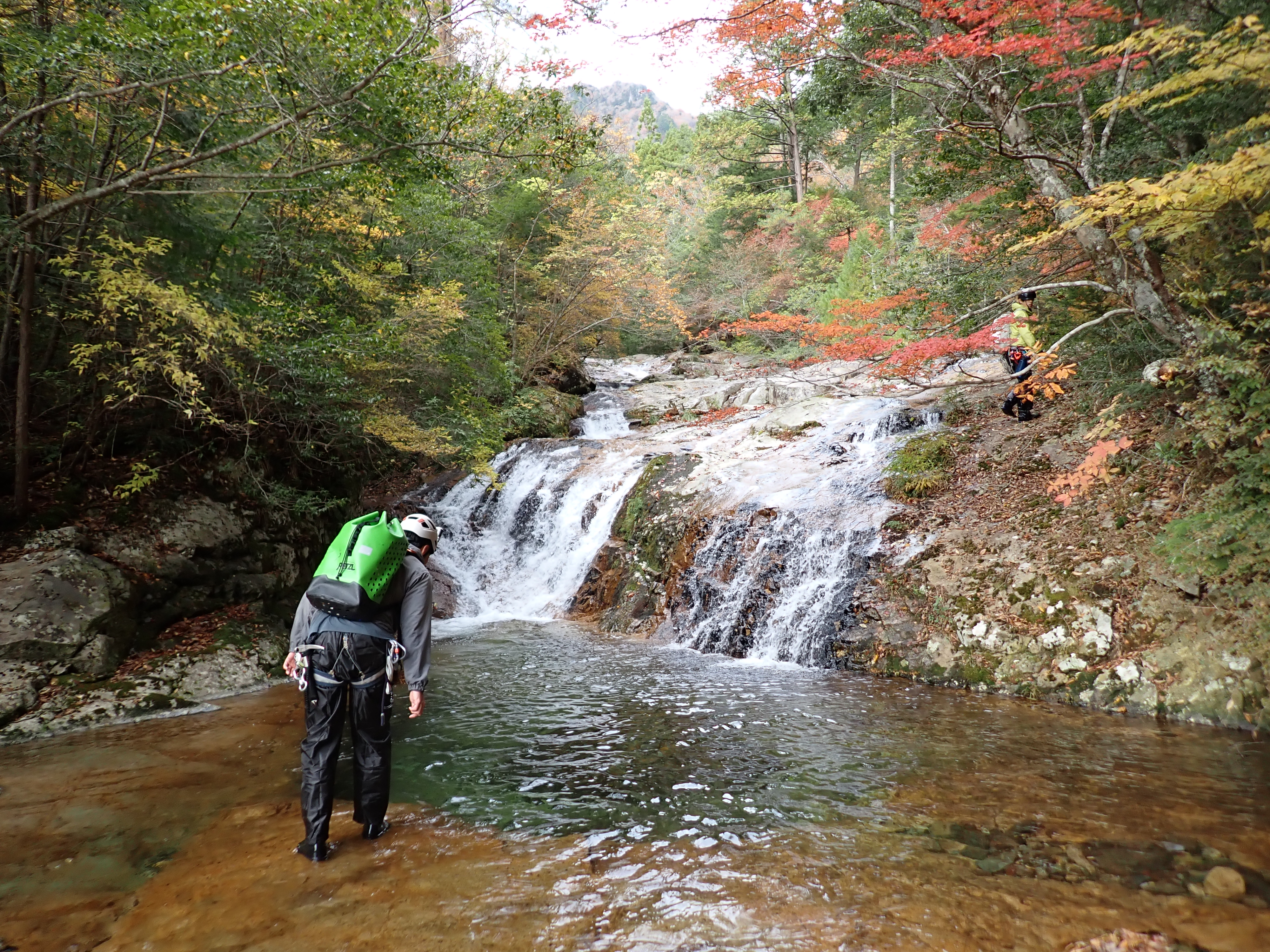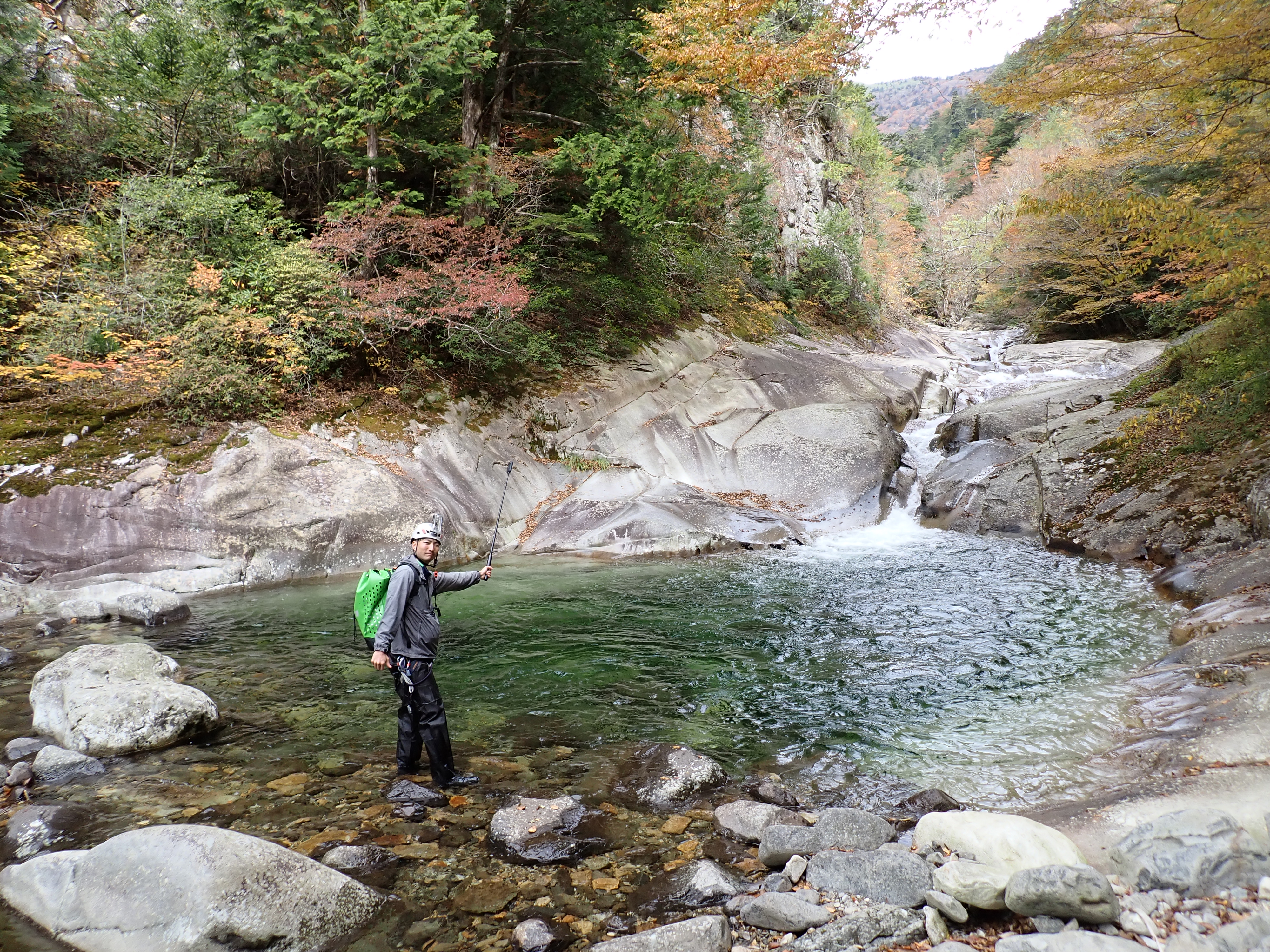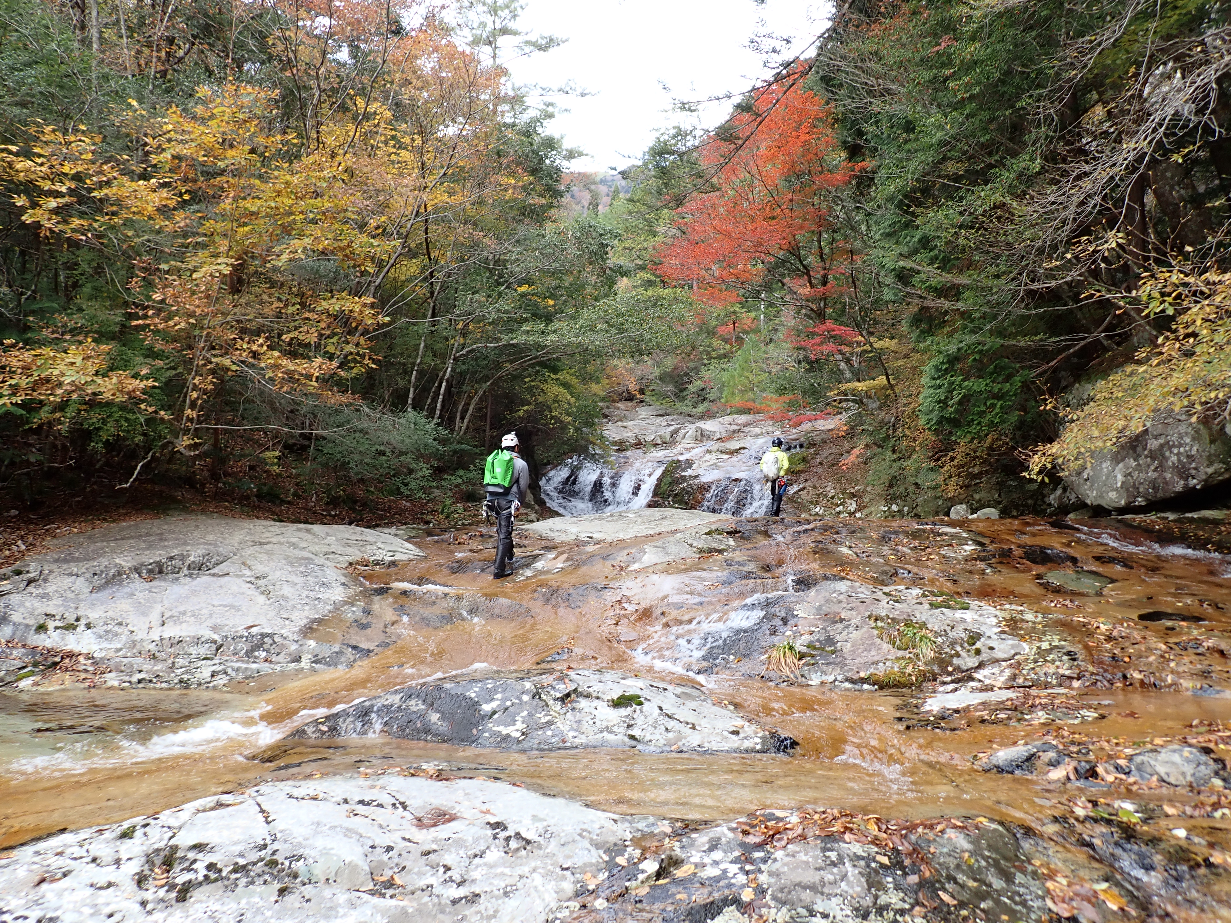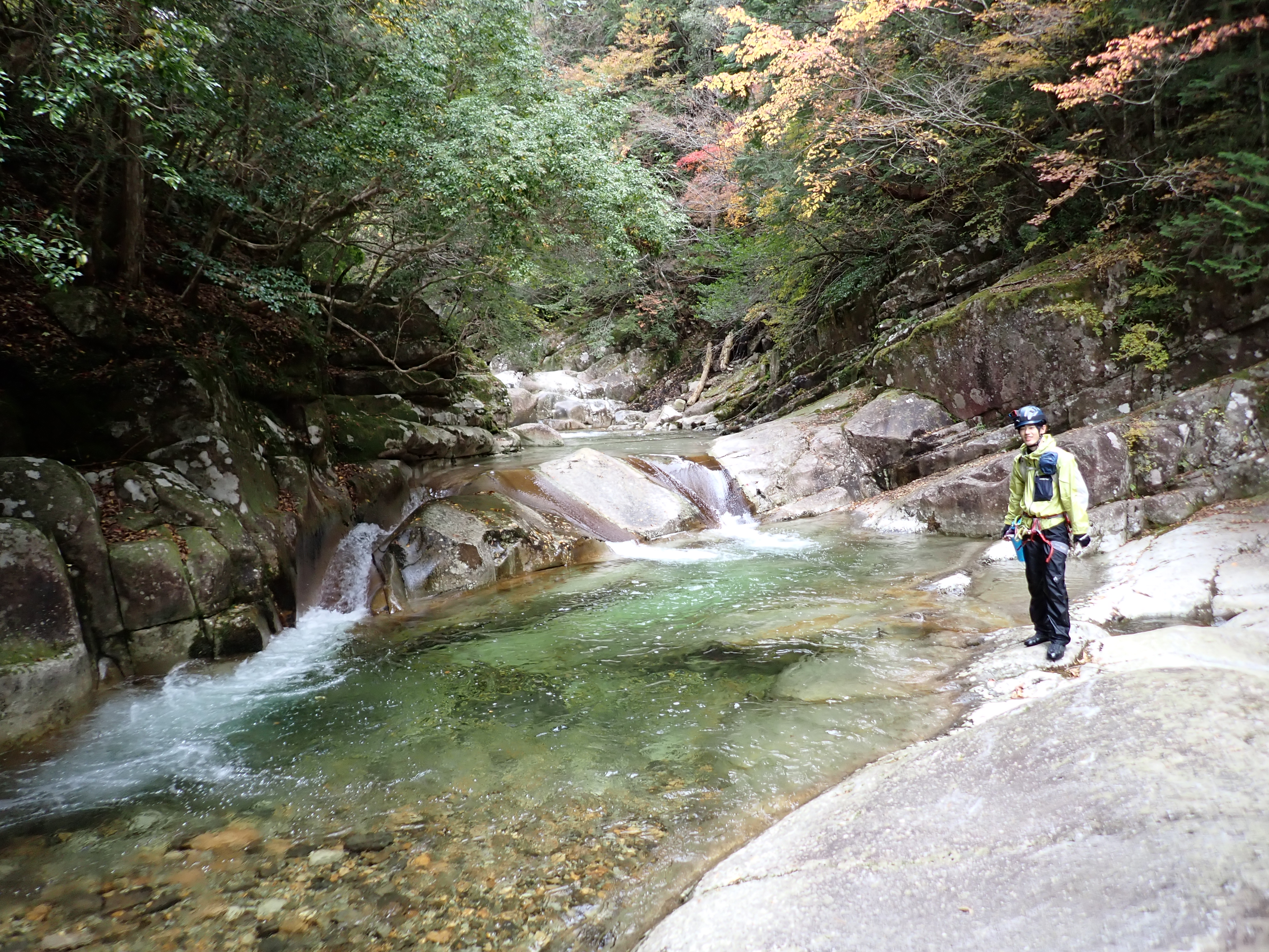 四国で田中彰氏の4日間に及ぶキャニオニング講習を終えて居残り沢登りを実施。メンバーは一緒に講習を受けていたハタダ氏と四国に呼び寄せたH山氏。天気も何とか持ちそうだし4日間、美渓を楽しむことにしよう。