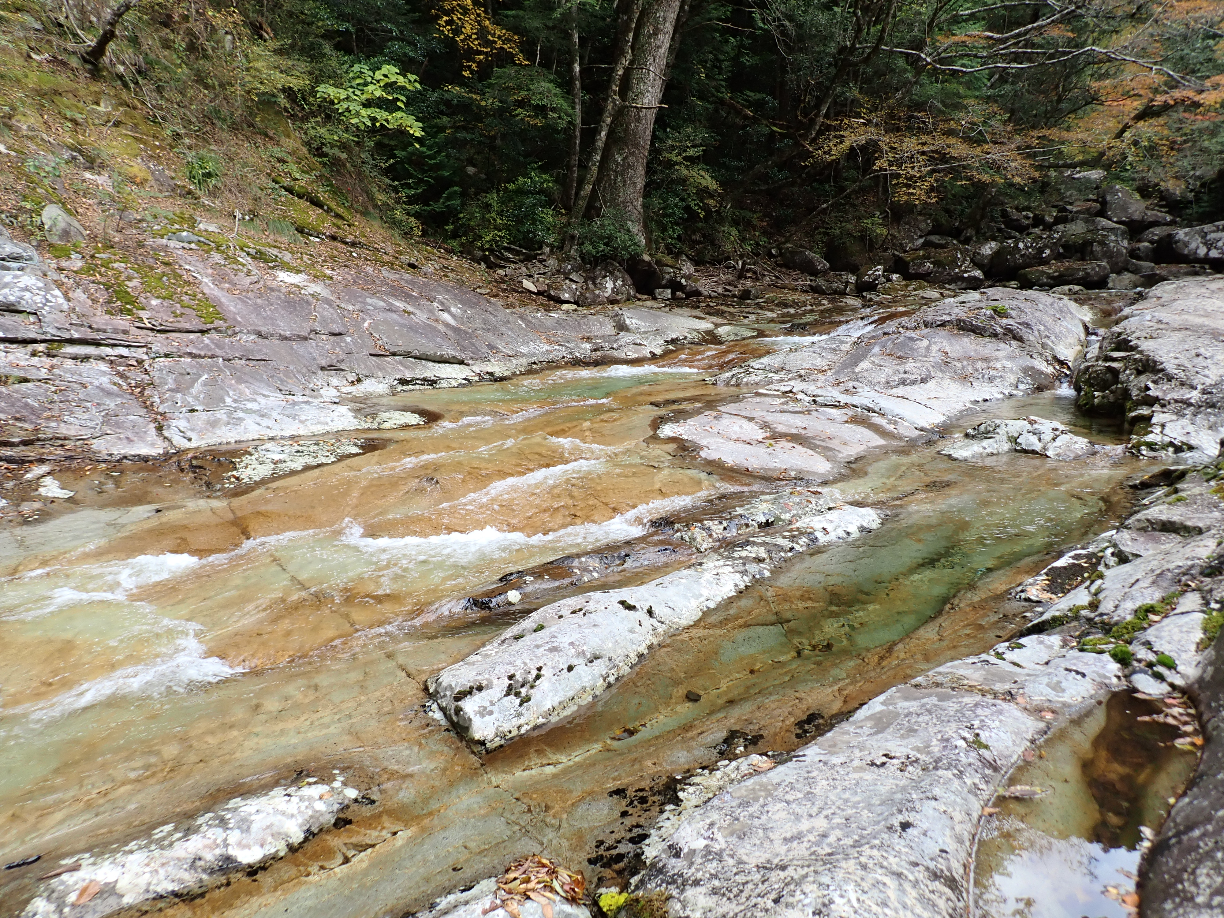 沢幅いっぱいに広がるナメ床。ここら辺一帯は四国で唯一の貴重な花崗岩ゾーンらしい。
