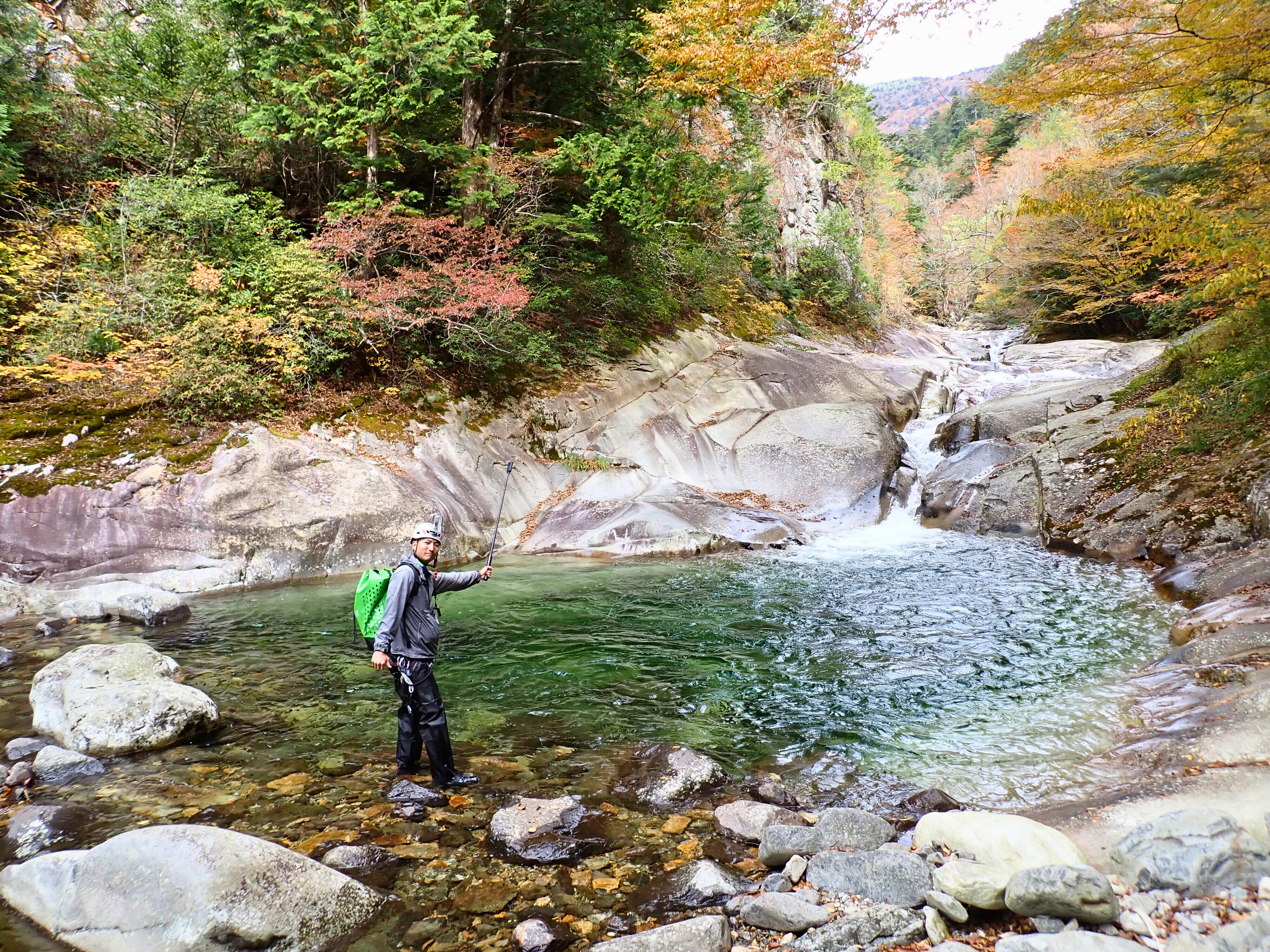 松山市でH山氏をピックアップして鉄砲石川に移動。遅めのスタートでキャンプ場ら辺から入渓。